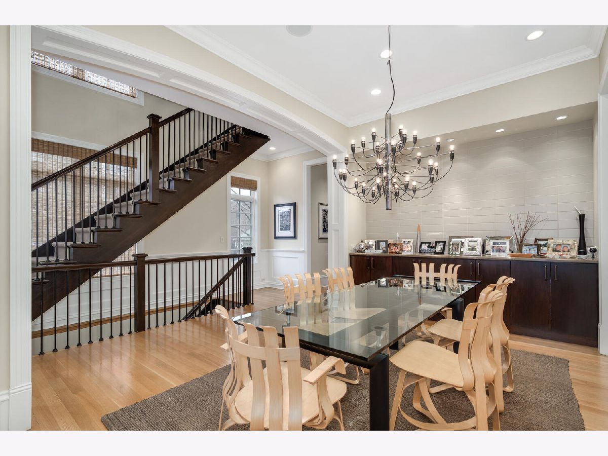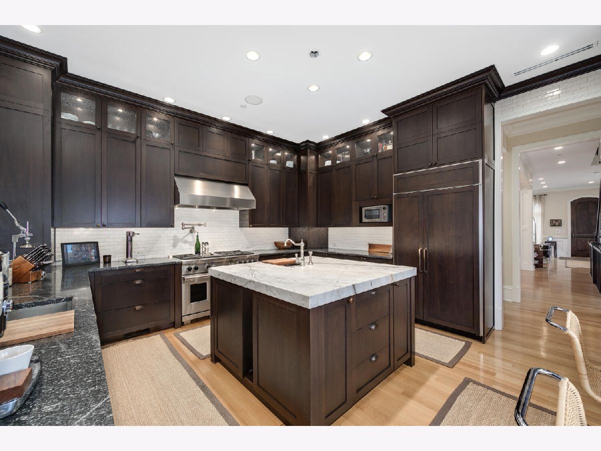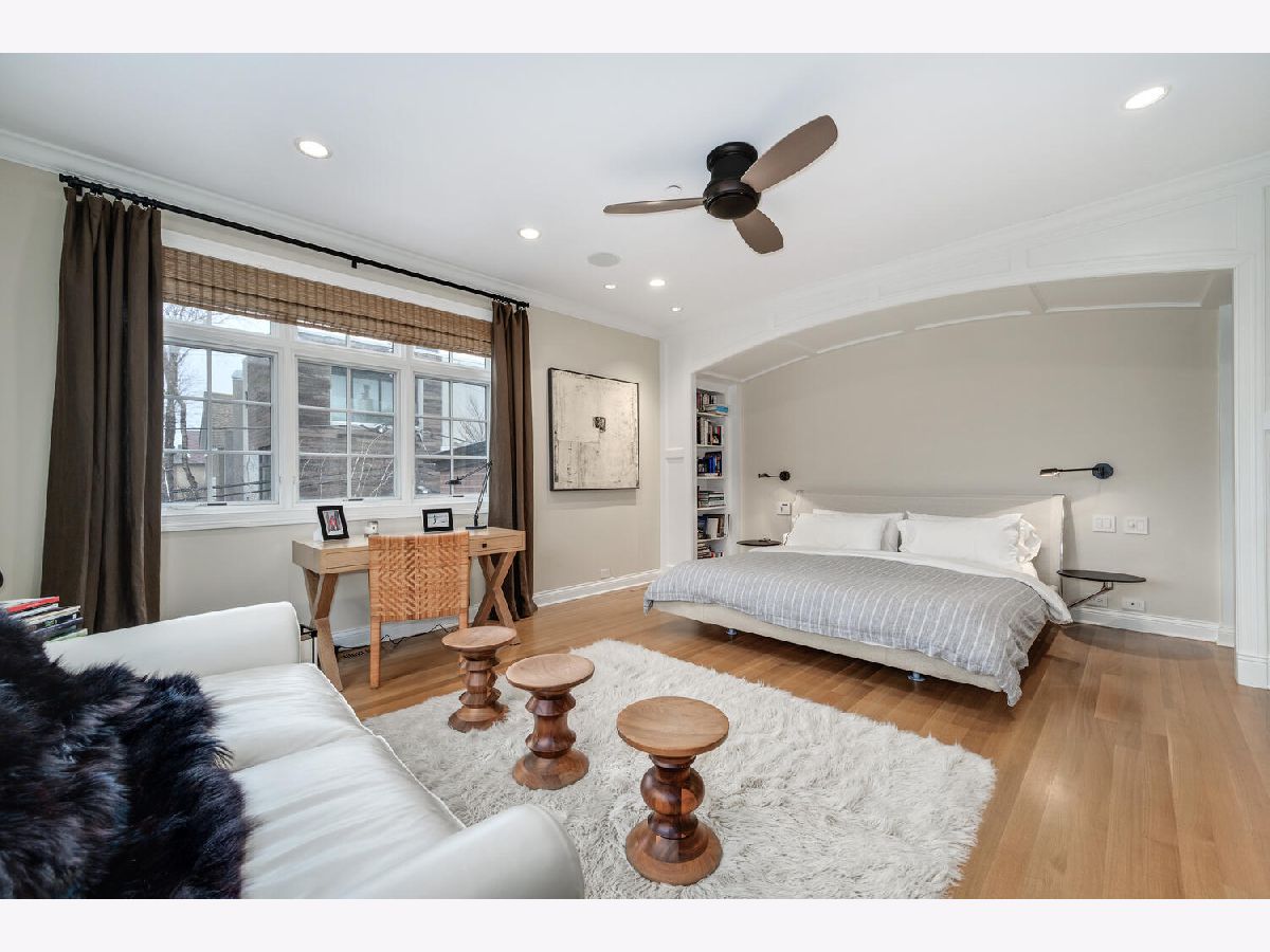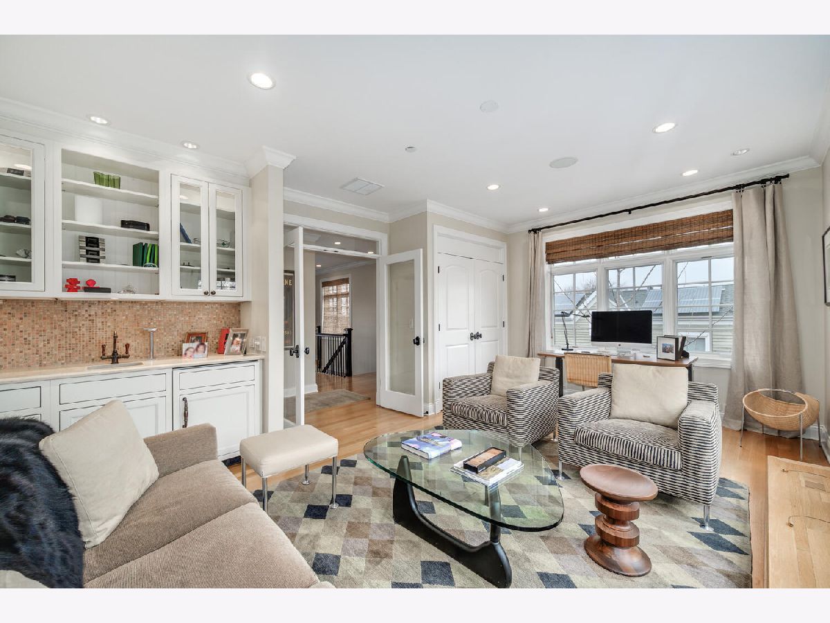 Incredibly stylish, Double RL vibe in this sun-drenched, park-facing home on a corner lot! Upon entry, you are greeted with exquisite details throughout. The corner lot allows for two sides of windows. The tall ceilings, beautiful moldings, and woodwork add to the grandeur of this immaculate home. Large west-facing windows bathe the main living space in natural light. The front living room features a stately fireplace with a limestone surround. A spacious formal dining space opens into the living room and offers ample space for a large table as well as a built-in buffet for easy storage and display. The kitchen is a chef's dream with an oversized island with prep sink, beautiful cabinetry and countertops, amazing storage, full sized wine fridge plus an additional beverage fridge. A perfectly hidden walk-in pantry is a thoughtful surprise. A charming breakfast nook with a built-in banquette and super hip floor-to-ceiling subway tile allows for the perfect spot to dine informally. Completely open to the kitchen is the huge greatroom with an additional fireplace and huge corner windows for sensational light. A rear staircase leads up to the garage roof deck, or down to the extra-large true mudroom, patio space, and rare attached garage. Three bedrooms are found on the second level of the home. The oversized primary has two fabulously built out walk-in closets and an oversized, spa-like bath with dual sinks, large shower, separate water closet, and amply storage. The two additional bedrooms on this level each of great closet space and ensuite baths. Bedroom level laundry completes this floor. A super sunny third level has the perfect office or den, opening onto a west facing terrace. Currently used as a media/entertaining room with a wet bar, the fourth bedroom also opens onto an east facing deck. A full bath completes this floor. The lower level is complete with an exercise or media room, comfortable guest suite, wine storage, and a stylish rec room with a wet bar. Bedroom level and lower level laundry make for convenient living and upper and lower level wet bars make entertaining a breeze! With Wrightwood Park as your front yard and an easy walk to restaurants and coffee shops, this home is perfectly situated in a fabulous Lincoln Park locale!