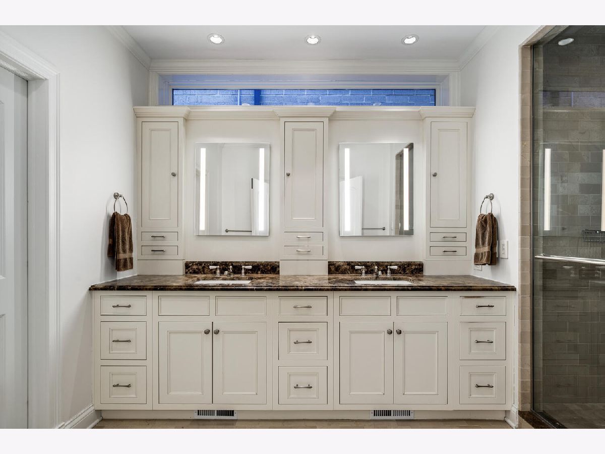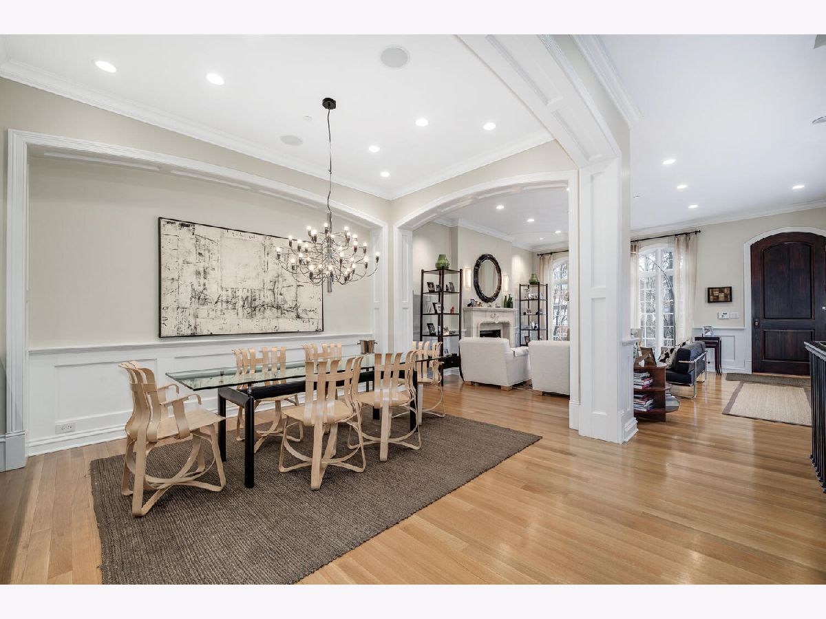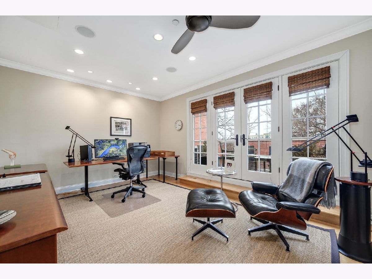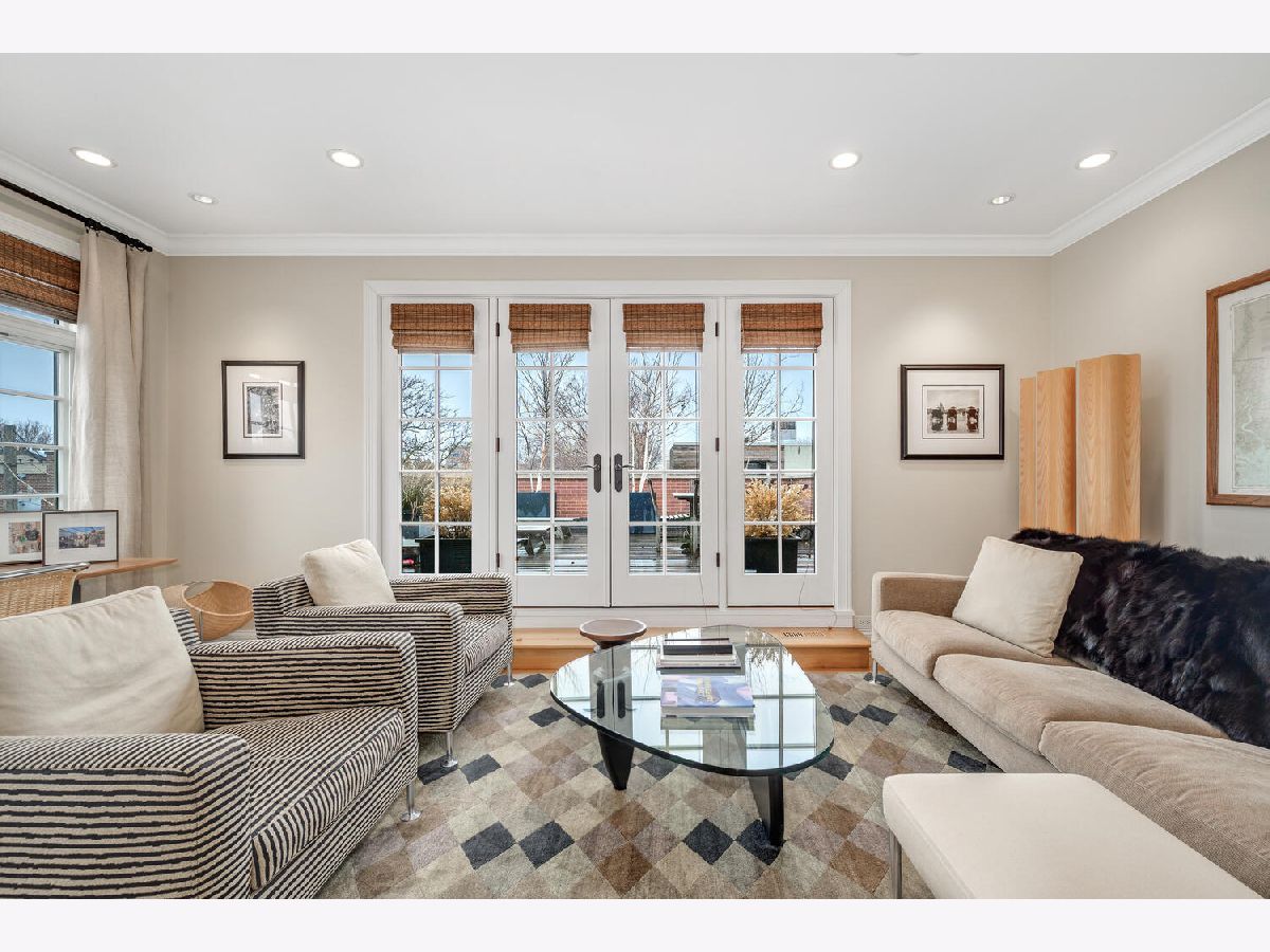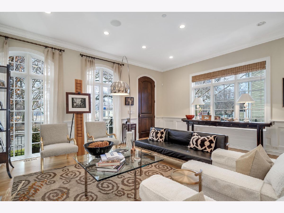 Incredibly stylish, Double RL vibe in this sun-drenched, park-facing home on a corner lot! Upon entry, you are greeted with exquisite details throughout. The corner lot allows for two sides of windows. The tall ceilings, beautiful moldings, and woodwork add to the grandeur of this immaculate home. Large west-facing windows bathe the main living space in natural light. The front living room features a stately fireplace with a limestone surround. A spacious formal dining space opens into the living room and offers ample space for a large table as well as a built-in buffet for easy storage and display. The kitchen is a chef's dream with an oversized island with prep sink, beautiful cabinetry and countertops, amazing storage, full sized wine fridge plus an additional beverage fridge. A perfectly hidden walk-in pantry is a thoughtful surprise. A charming breakfast nook with a built-in banquette and super hip floor-to-ceiling subway tile allows for the perfect spot to dine informally. Completely open to the kitchen is the huge greatroom with an additional fireplace and huge corner windows for sensational light. A rear staircase leads up to the garage roof deck, or down to the extra-large true mudroom, patio space, and rare attached garage. Three bedrooms are found on the second level of the home. The oversized primary has two fabulously built out walk-in closets and an oversized, spa-like bath with dual sinks, large shower, separate water closet, and amply storage. The two additional bedrooms on this level each of great closet space and ensuite baths. Bedroom level laundry completes this floor. A super sunny third level has the perfect office or den, opening onto a west facing terrace. Currently used as a media/entertaining room with a wet bar, the fourth bedroom also opens onto an east facing deck. A full bath completes this floor. The lower level is complete with an exercise or media room, comfortable guest suite, wine storage, and a stylish rec room with a wet bar. Bedroom level and lower level laundry make for convenient living and upper and lower level wet bars make entertaining a breeze! With Wrightwood Park as your front yard and an easy walk to restaurants and coffee shops, this home is perfectly situated in a fabulous Lincoln Park locale!