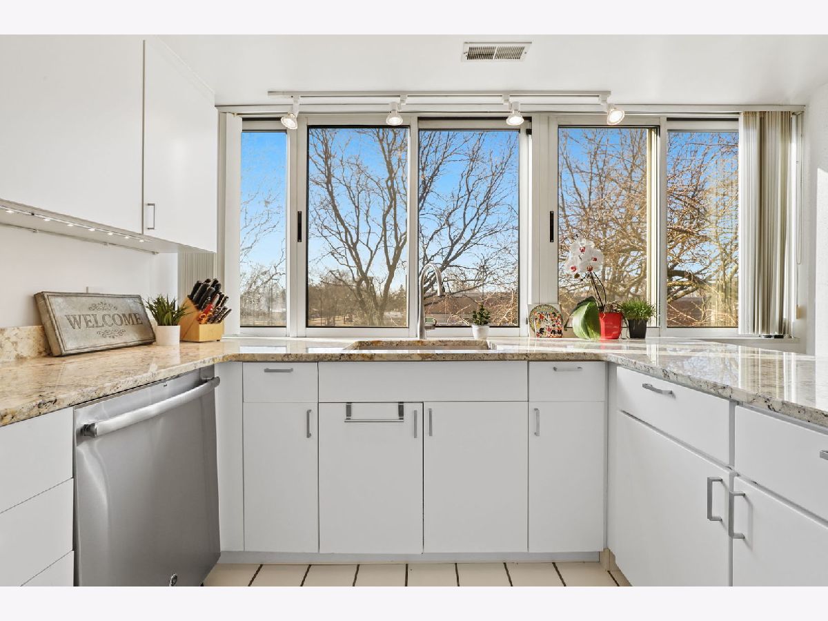 Welcome to this stunning 2-bedroom 2 bathroom condo, located in the highly desirable Southwest corner, offering an abundance of natural light throughout with floor-to-ceiling windows. The open-concept layout is perfect for entertaining, featuring a spacious dining area, a modern kitchen with a large island and stainless steel appliances, and a living room that leads out to a private balcony-ideal for grilling or enjoying the summer breeze.This unit is the preferred tier in the building, with a sizable second bedroom, ample storage space, and a primary suite complete with a massive walk-in closet and an attached bathroom. Additional highlights include in-unit stackable laundry, large foyer, a second full bathroom, and the convenience of an attached heated garage parking spot and storage included in the price. The building offers fantastic amenities, including an exercise room, indoor pool, and a serene pond perfect for relaxation. The location couldn't be better, with easy access to Old Orchard, golf courses, grocery stores, shopping, and dining options. Don't miss out on this bright and beautifully maintained condo.