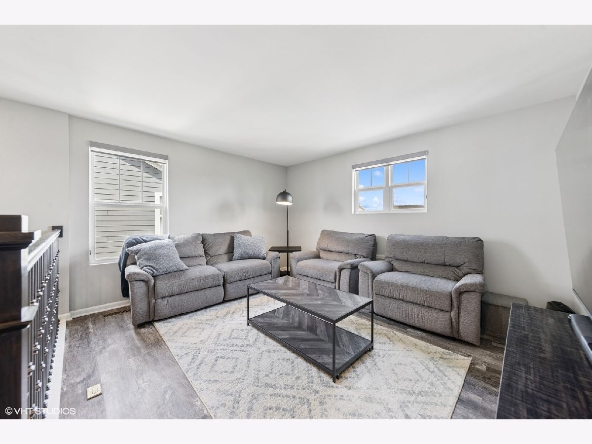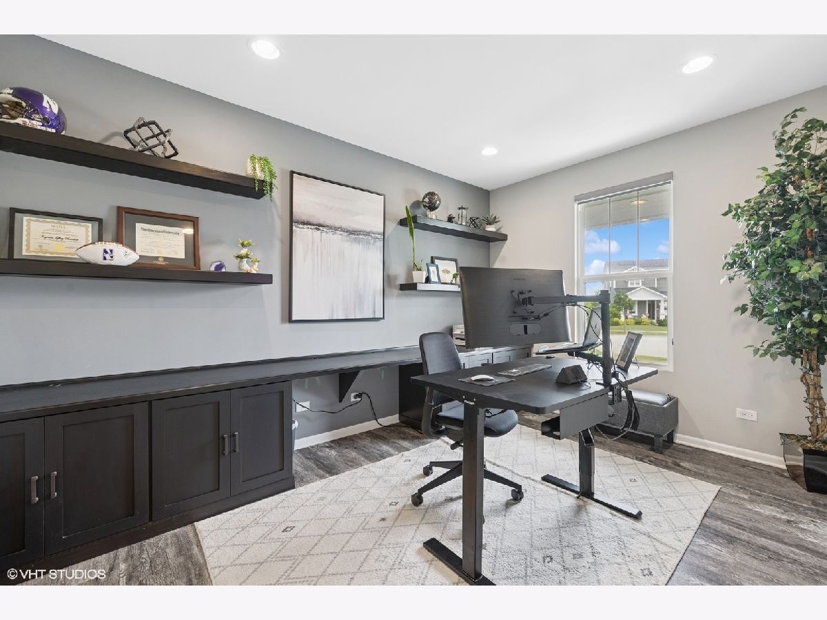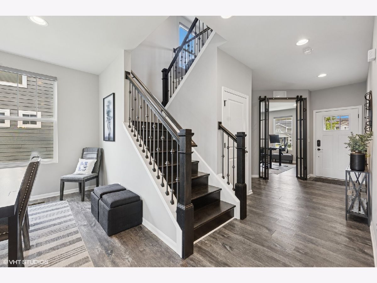 Nestled on an extra-wide lot at the end of a quiet cul-de-sac, this stunning 3 bed/ 3.5 bath home seamlessly blends modern luxury with suburban convenience. Built in 2020 by Pulte Homes, this home features a bright and open floorplan with a spacious, open living and dining room. The gourmet kitchen is a chef's dream, with stainless steel appliances, white subway tile backsplash, high-end cabinetry, and generous counter space with a large island that is ideal for entertaining. A mudroom with built-in shelving adds everyday convenience and organization and the first floor also features a dedicated office with custom built-in shelving. Upstairs, discover three spacious bedrooms, a versatile loft that could convert into a fourth bedroom, and a convenient 2nd floor laundry room. The luxurious primary suite impresses with a spa-like bathroom featuring dual vanities, a custom walk-in shower, and a huge walk-in closet. Great storage is thoughtfully integrated throughout the home. The beautifully finished basement expands your living space with a custom wet bar and an additional bathroom. Enjoy outdoor living on the covered front and back patios overlooking a large backyard. Additional highlights include an attached two-car garage, solar panels to reduce energy costs. Located in the sought-after Hobson Hill neighborhood, this home feeds into top-rated schools including Meadowview Elementary, Thomas Jefferson Junior High, and the highly acclaimed Downers Grove North High School. Enjoy a prime location with easy access to the city, three nearby Metra stations, charming suburban downtowns, and beautiful forest preserves. A scenic path behind the neighborhood pond leads directly to Meadowview Elementary. Amazing home in an unbeatable location.
