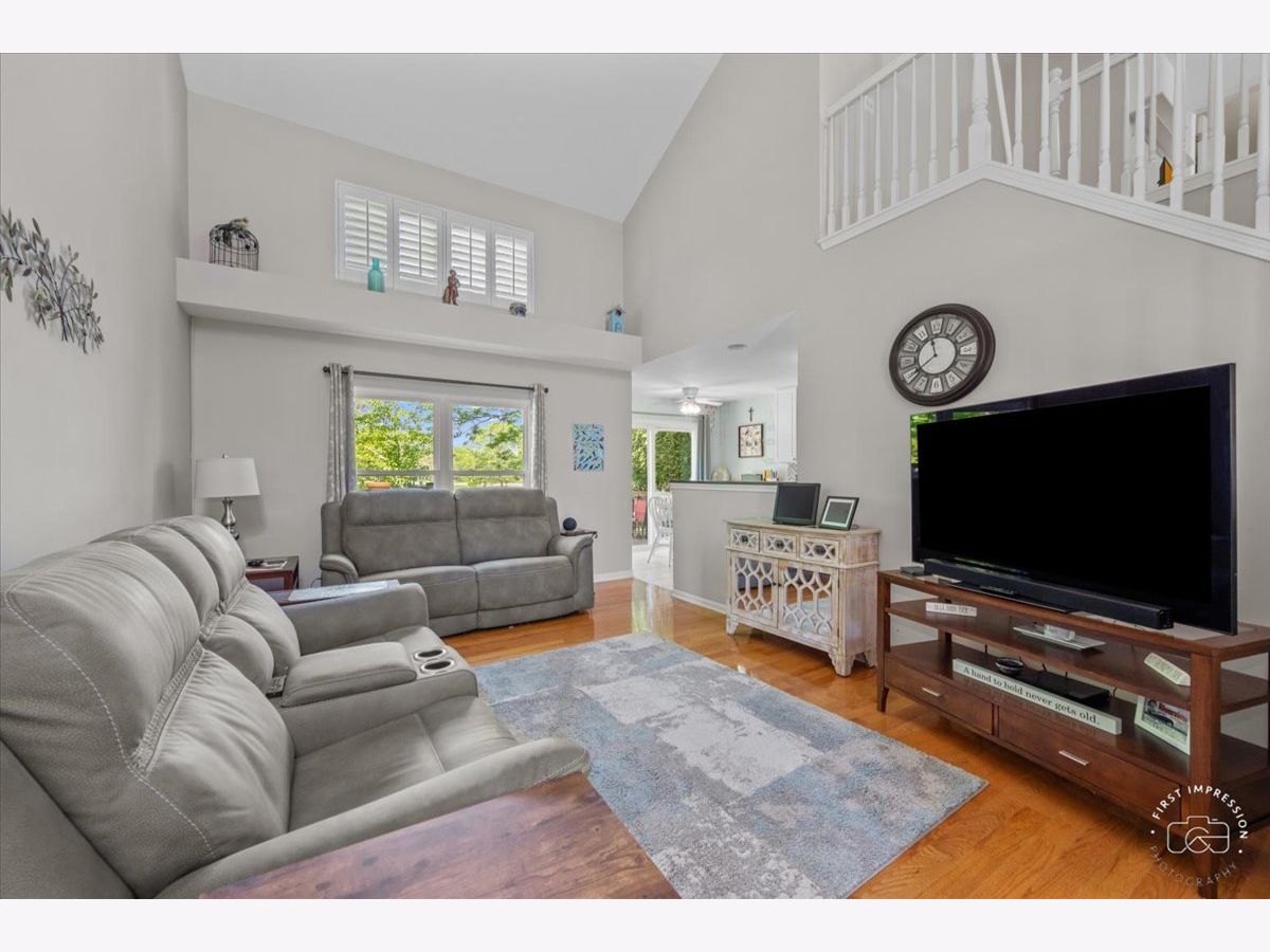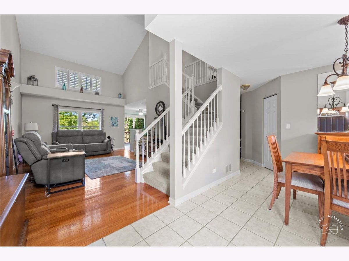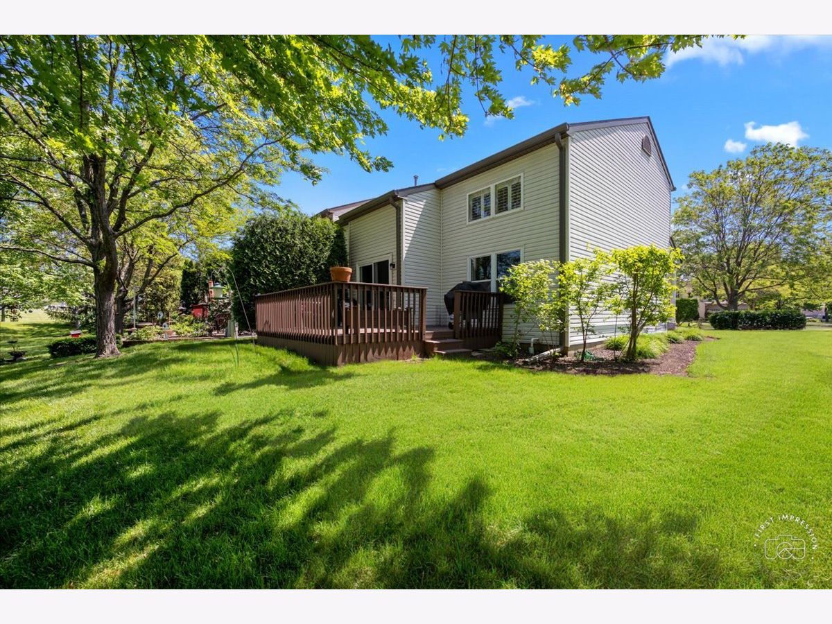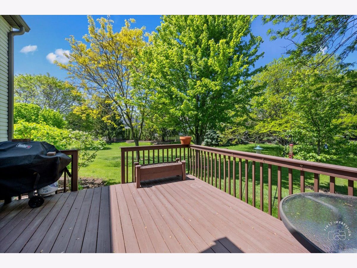 If you are looking for a FIRST FLOOR primary suite, private cu-de-sac location with fabulous views of mature trees, rolling green grass & panoramic vistas from your kitchen and large deck---THIS IS IT! Soaring two story ceilings, lots of natural sun and moonlight! Family room open to kitchen and adjacent dining room is great parties or everyday dining, Kitchen with stainless steel appliances (stove with air fryer 2023), eating area, and sliding glass doors to private deck! Primary bedroom features walk in closet and shared full bathroom with dual sinks and walk-in shower.. MAIN floor laundry! 2nd floor has a huge loft, perfect for a play area, work from home office space or media room. There are two bedrooms, full bath, and 13 x 08 storage room/ walk-in closet---perfect for ALL your needs. Full basement has finished large open recreation room and unfinished basement work area with sink. (Roof 2019...Furnace, A/C, and water heater 8 years old). Enjoy your privacy and seasonal views! Just minutes from shopping, restaurants, train, Delnor Hospital and health club with pool, parks, playgrounds, Peck Farm Park, and walking trails. One of the best locations for all your needs! Come and make memories in your new home!