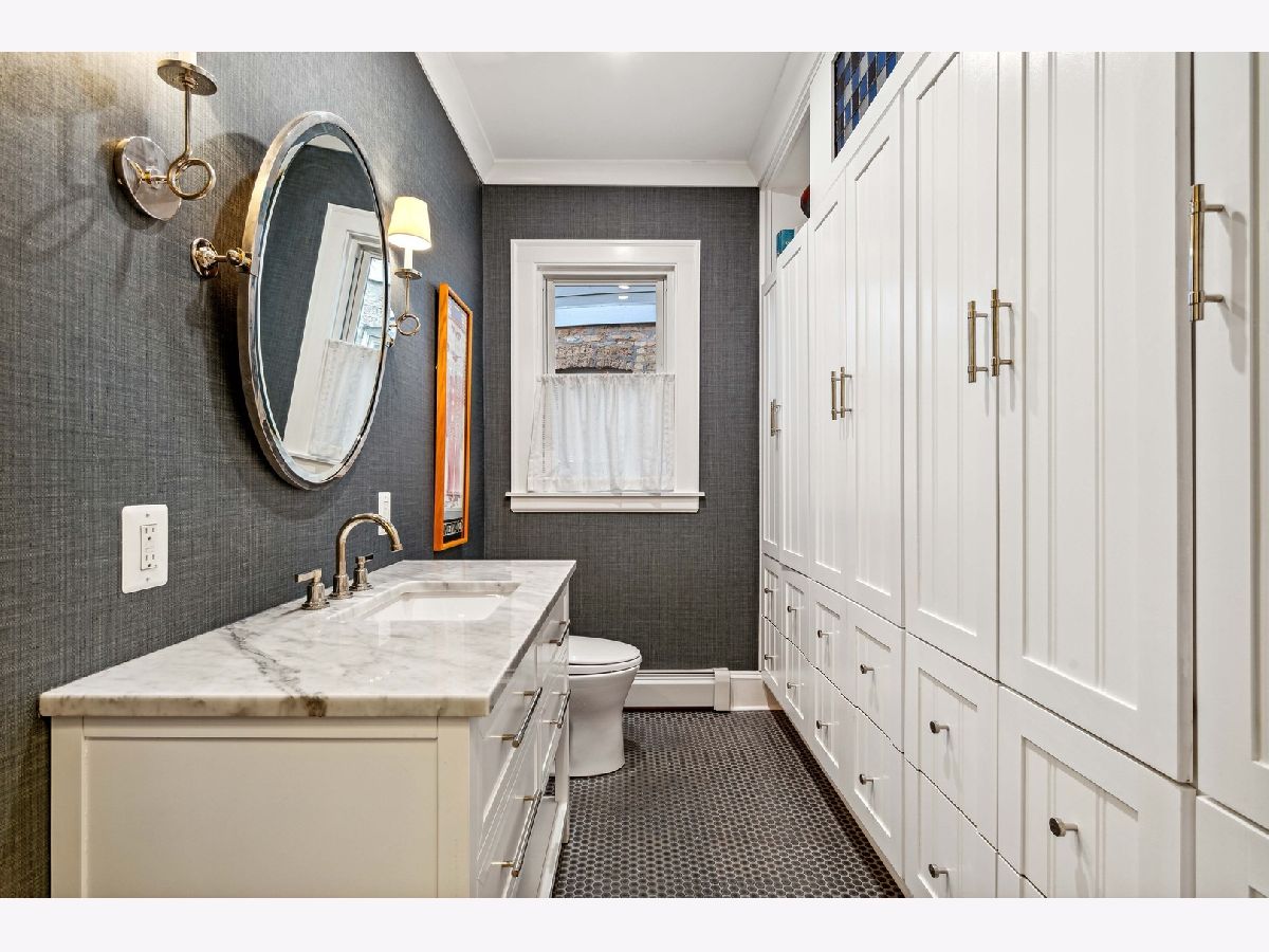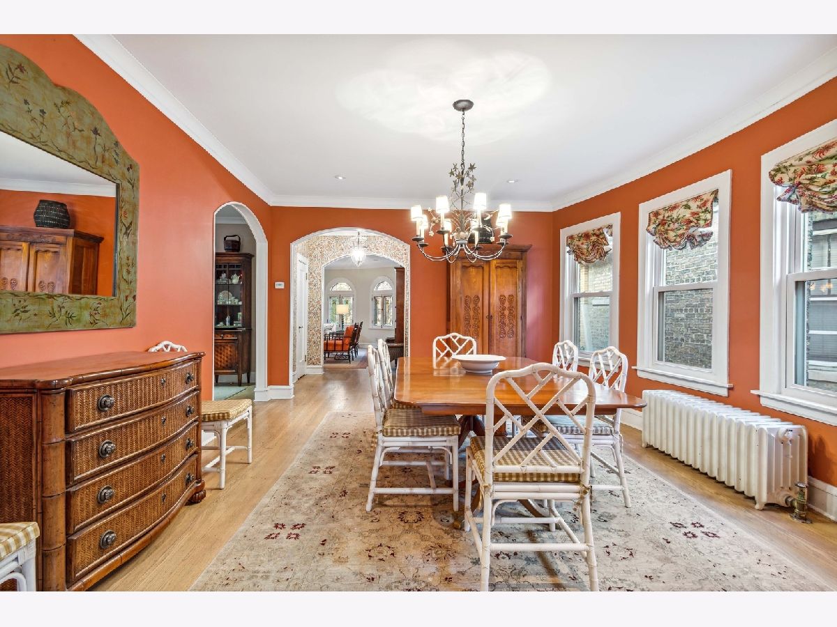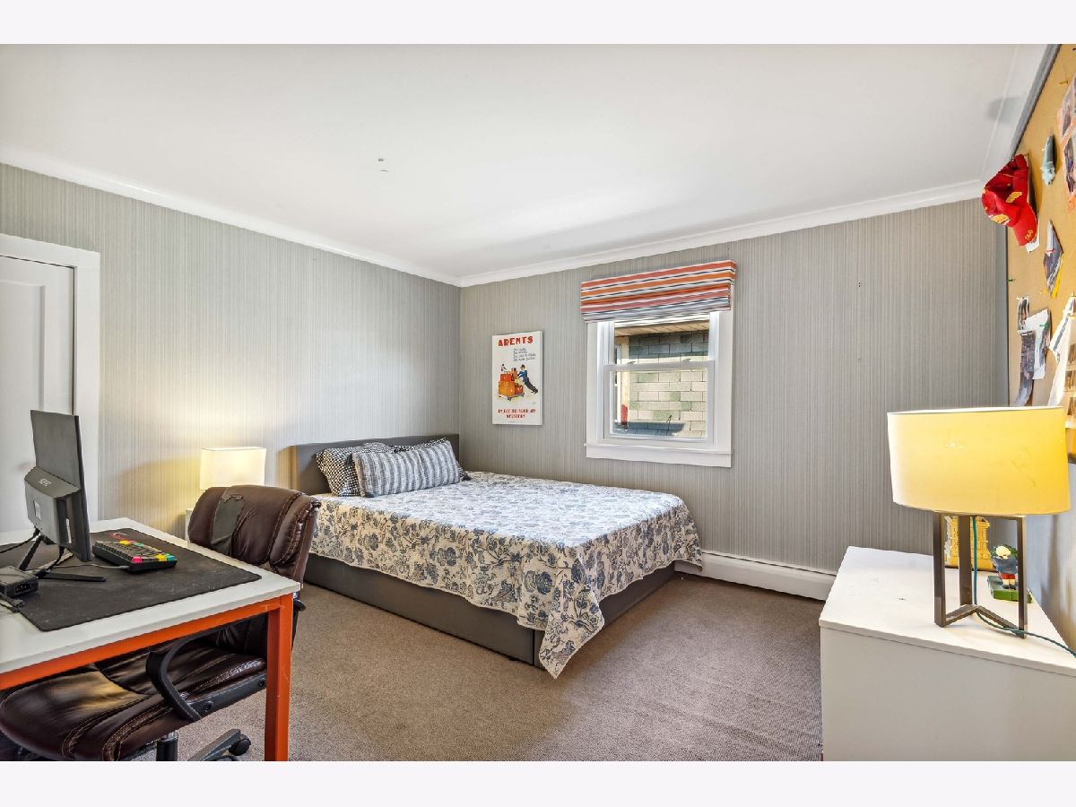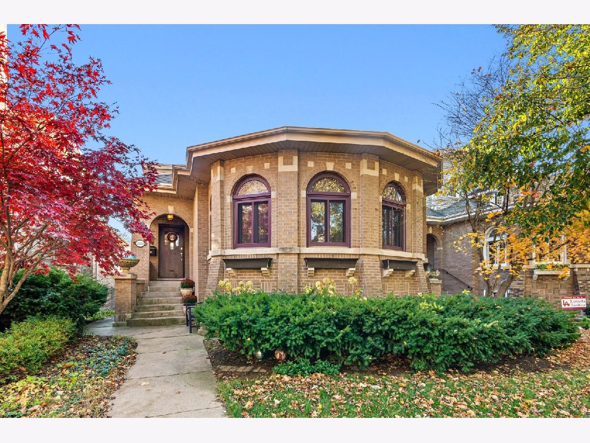 This stunning jumbo brick bungalow features 4 bedrooms, 2 1/2 bathrooms and has been renovated and improved to have 3-zoned heating, space pac and radiator heat. It's unique in that the primary bedroom is on the main floor and there are 3 big bedrooms on the top floor. The main floor features a welcoming foyer, custom classic wallpaper, the exquisite living room with restored art glass windows improved with thermopane storms and entry to the family room with custom built-in bookshelves. Hardwood floors, crown molding and inset lighting throughout. The dining room can host 14 and the guest bathroom is completely new from 2020. The primary suite has an open dressing area and ensuite bathroom. The kitchen has white custom cabinets, upscale appliances, a banquette dining area and a pantry. Off the back entry is a mudroom/drop zone and stairs to the backyard. The second floor is very special with 3 bedrooms (2 with wic) and a large, spacious bathroom, plus additional storage. The walk-out basement is partially finished with a laundry room and a family room with another small vintage bathroom. There is an open area for a rec room and 3 additional storage rooms. The backyard has easy to maintain brick pavers and is fully fenced with a 2 1/2 car brick garage. Located in Indian Boundary Park on one of Chicago's Historic Bungalow District streets.