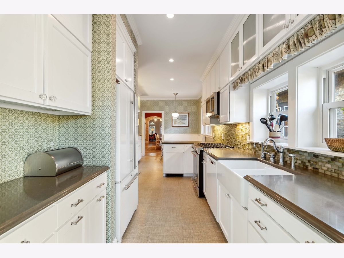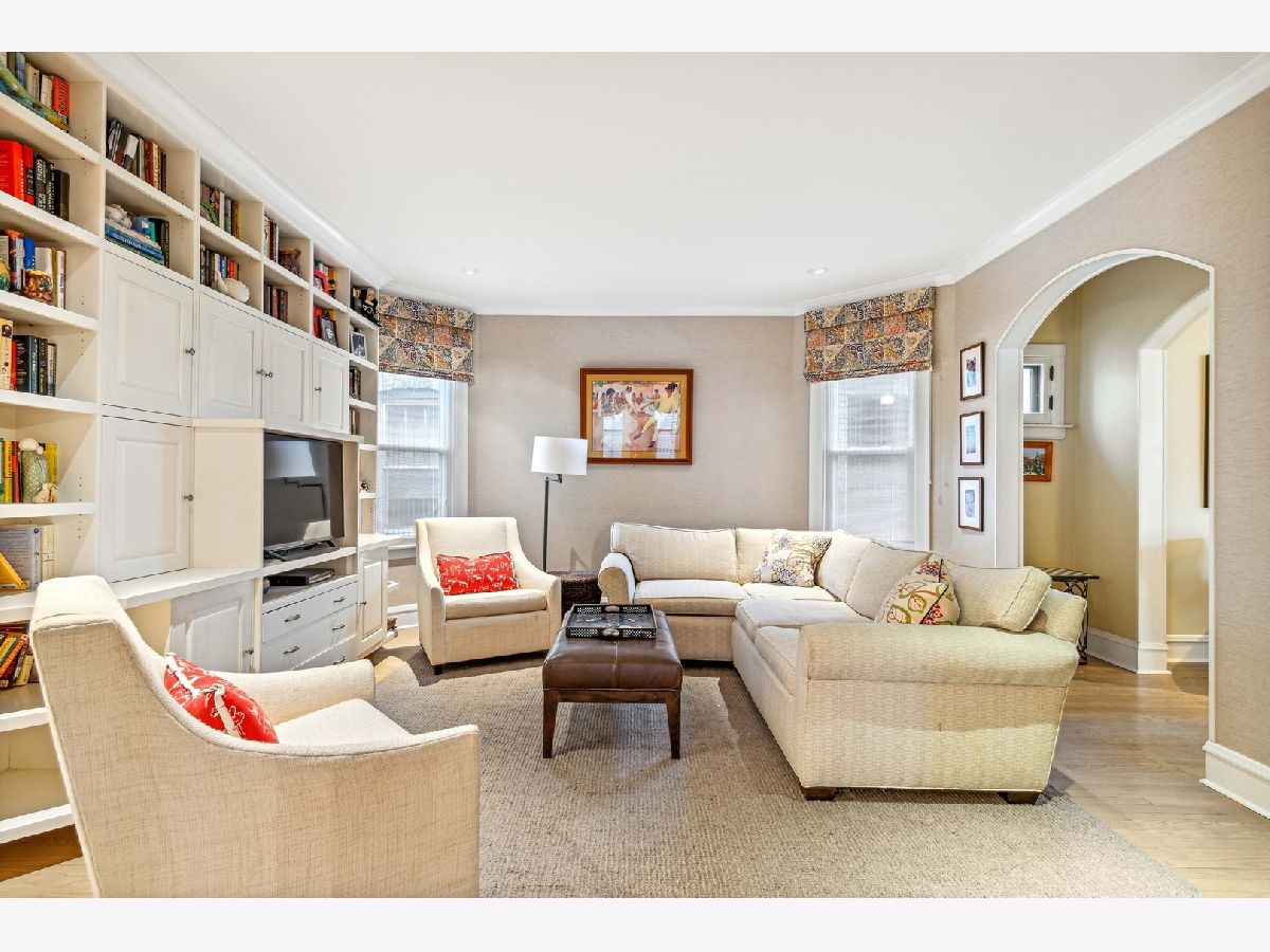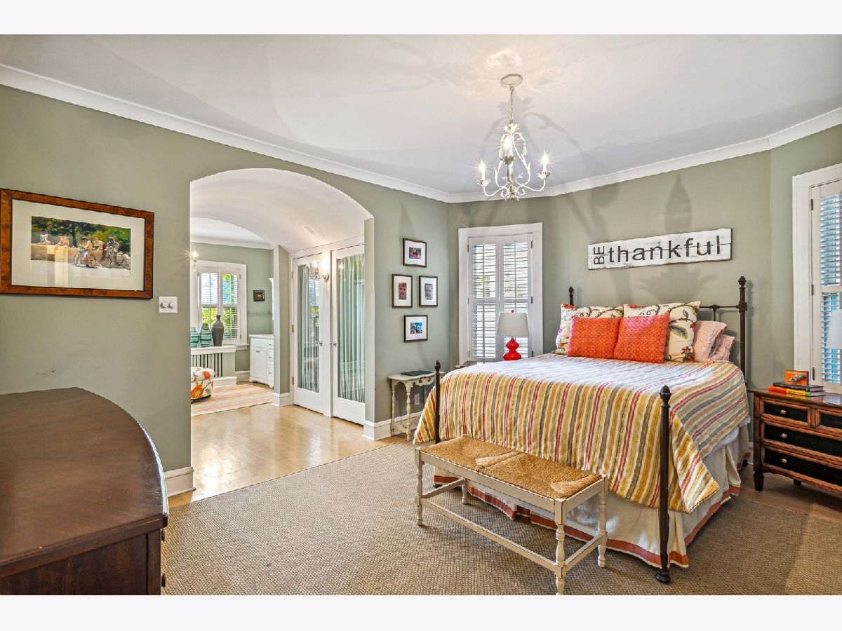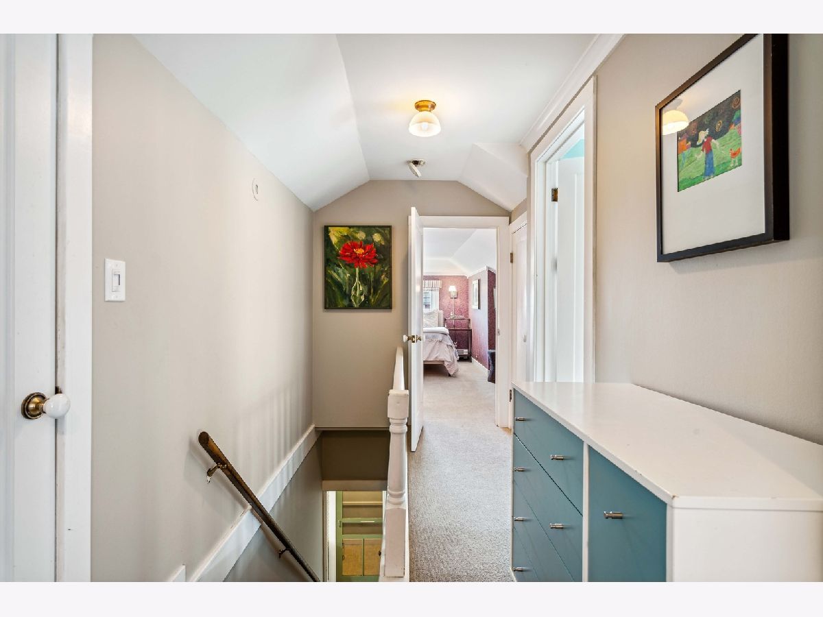 This stunning jumbo brick bungalow features 4 bedrooms, 2 1/2 bathrooms and has been renovated and improved to have 3-zoned heating, space pac and radiator heat. It's unique in that the primary bedroom is on the main floor and there are 3 big bedrooms on the top floor. The main floor features a welcoming foyer, custom classic wallpaper, the exquisite living room with restored art glass windows improved with thermopane storms and entry to the family room with custom built-in bookshelves. Hardwood floors, crown molding and inset lighting throughout. The dining room can host 14 and the guest bathroom is completely new from 2020. The primary suite has an open dressing area and ensuite bathroom. The kitchen has white custom cabinets, upscale appliances, a banquette dining area and a pantry. Off the back entry is a mudroom/drop zone and stairs to the backyard. The second floor is very special with 3 bedrooms (2 with wic) and a large, spacious bathroom, plus additional storage. The walk-out basement is partially finished with a laundry room and a family room with another small vintage bathroom. There is an open area for a rec room and 3 additional storage rooms. The backyard has easy to maintain brick pavers and is fully fenced with a 2 1/2 car brick garage. Located in Indian Boundary Park on one of Chicago's Historic Bungalow District streets.