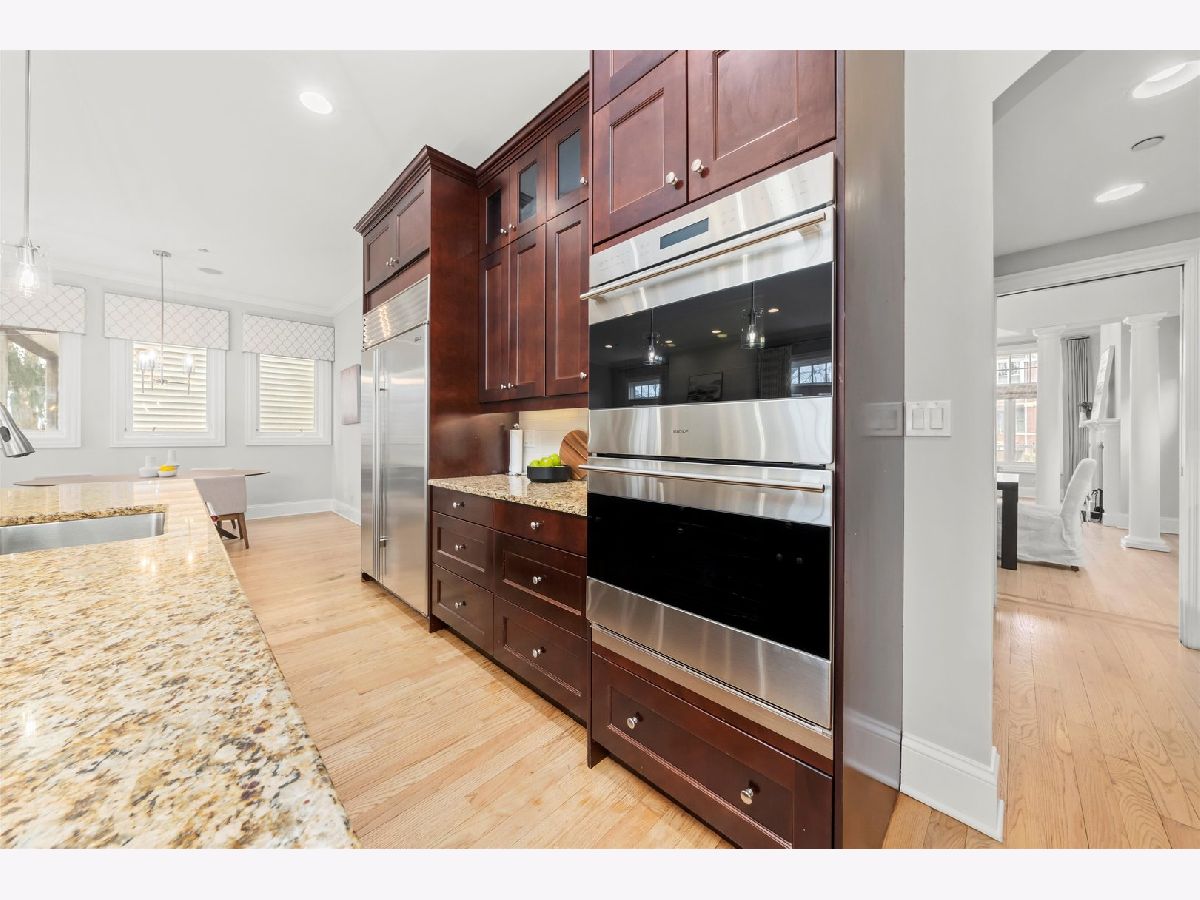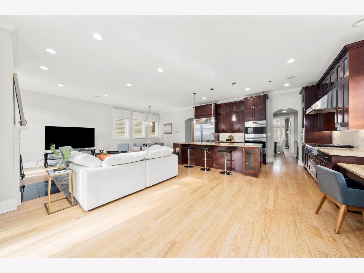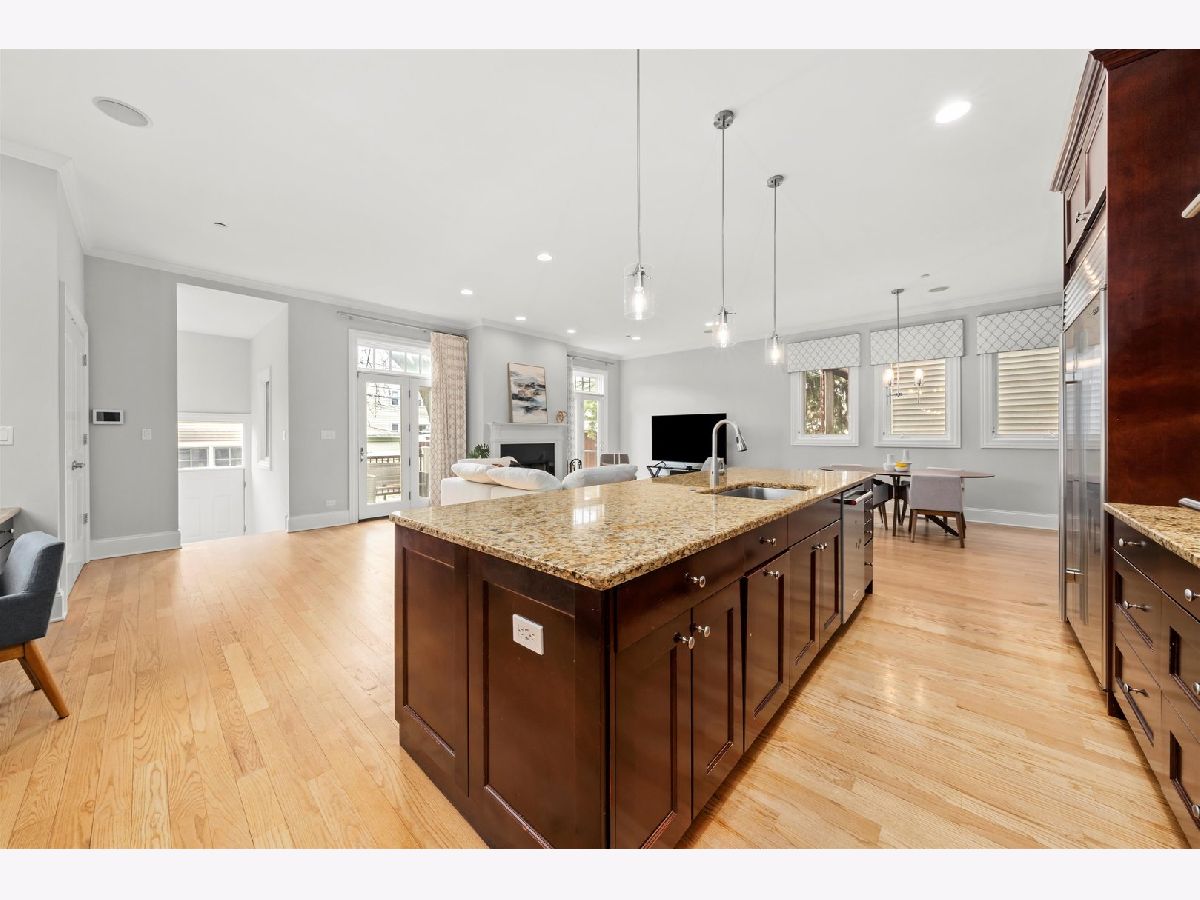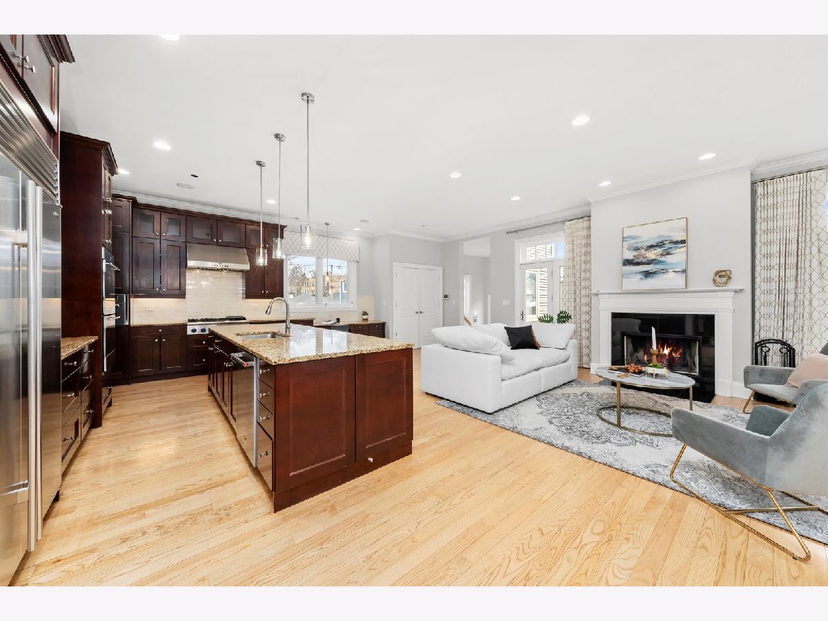 Step into this stunning 5,200 sq ft luxury home, thoughtfully designed for modern living, nestled on a 40' wide lot on a quiet and serene street. The main living area has 10" ceilings and a sun-drenched living room with a cozy fireplace that is perfect for entertaining and relaxing complete with french doors that lead to the front deck. The expansive dining area is seamlessly connected to the butler's pantry that leads into the chef's kitchen with custom solid cherry cabinetry and elegant granite countertops. Top-tier appliances: Subzero refrigerator, Thermador range and hood, double ovens, and an island with sink and breakfast bar. Enjoy casual meals in the breakfast area overlooking the deck and backyard. The home also features a spacious family room off the kitchen with a second fireplace and French doors that open to the rear deck, blending indoor and outdoor living. The main level den/office and half bath complete the main living area. The second level has 12" Ceilings, four bedrooms which include a luxurious primary bedroom that includes an ensuite bathroom with premium finishes, double sinks, separate steam shower with body sprays, soaking tub, a spacious walk-in closet and balcony complete the primary suite. The second level bedrooms are generous in size with one ensuite bedroom with walk in closet, the other two bedrooms share a full bath, and the second level is complete with laundry and skylight. The lower level has 9' ceilings and great versatile space which includes a large family room and recreation area, perfect for gatherings or a home theater that includes a wet bar with cherry cabinets, microwave, dishwasher, disposal and a refrigerator for added convenience. The lover level also has two additional bedrooms and a full bathroom, ideal for guests or a home office, and the laundry room complete with lower level. This luxury home also features a large backyard with large deck, ample green space, and an indoor sprinkler system. The spacious 2.5-car garage also provides additional abundant storage. This home is located 1/2 block from the river and close to Welles Park that is situated on a quiet, no-through-traffic street, offering peace and privacy while remaining close to neighborhood amenities. This home offers the perfect blend of luxury, comfort, and convenience. Don't miss the chance to live in this dream property!