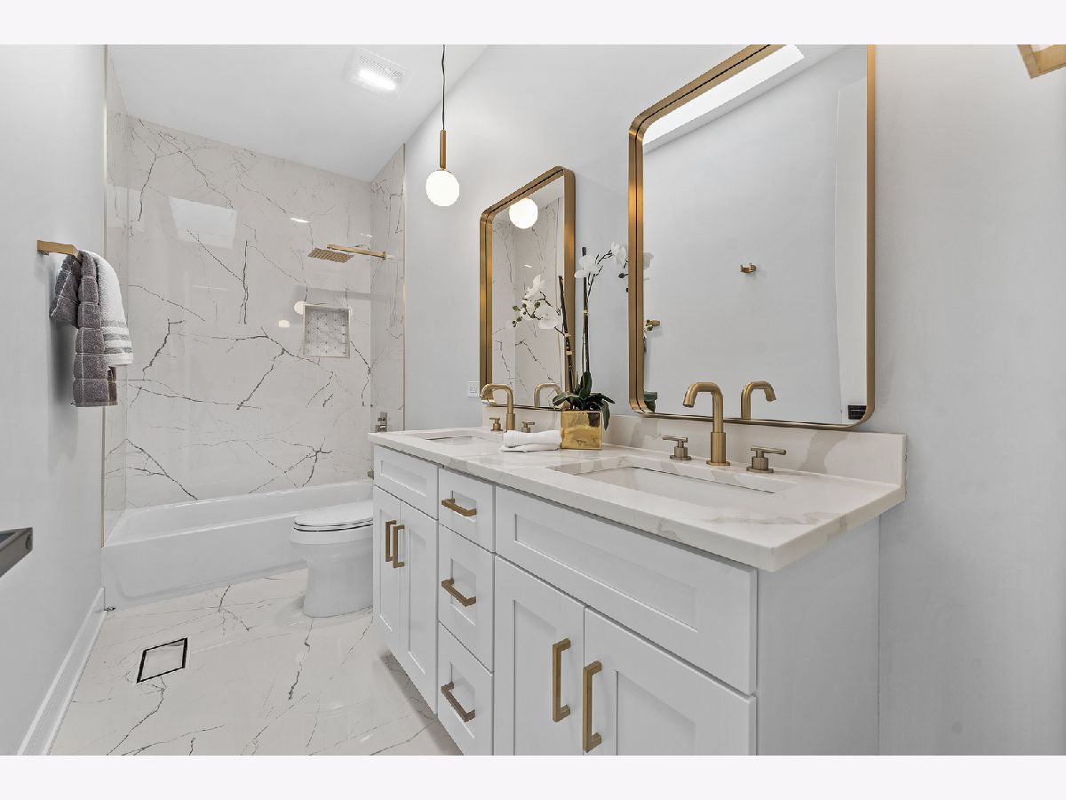 Experience sophisticated, urban living in this stunning, classic Greystone home in Logan Square! This 5 bedroom, 3.5 bath with 2.5-car garage is fully rehabbed and extraordinarily designed in every detail. Polished oak hardwood flooring, designer grade light fixtures, quartz countertops, custom cabinetry and skylights throughout. Walk into the home and get ready to be stunned by the striking and transitional finishes shining from the incredible natural sunlight through the dramatic skylight. The open-concept floor plan offers tremendous living space with a gas fireplace, a dining area, powder room, plus a wine cellar and a butler's pantry. The kitchen features a gorgeous, 8 ft. double-sided kitchen island with Waterfall Quartz countertops, high-end, paneled appliances and generous pantry space. Sleek, glass railing brings you upstairs to 3 bedrooms and 2 baths plus laundry (second laundry is located in basement.) The impressive skylights bathe the primary suite with natural sunlight and the primary bath offers a double vanity, separate shower, free standing tub and heated tile flooring, all finished with quartz tops and pristine fixtures. Lower level is complete with an additional living room space with a wet bar, a spacious fourth bedroom and a multi-purposeful fifth room. There is also a third full bathroom and second laundry room. This truly is a designer residence in a historic Greystone in a central location. It is steps away from restaurants, shops, nightlife, the CTA Blue Line, Expressway and all that Logan Square has to offer!