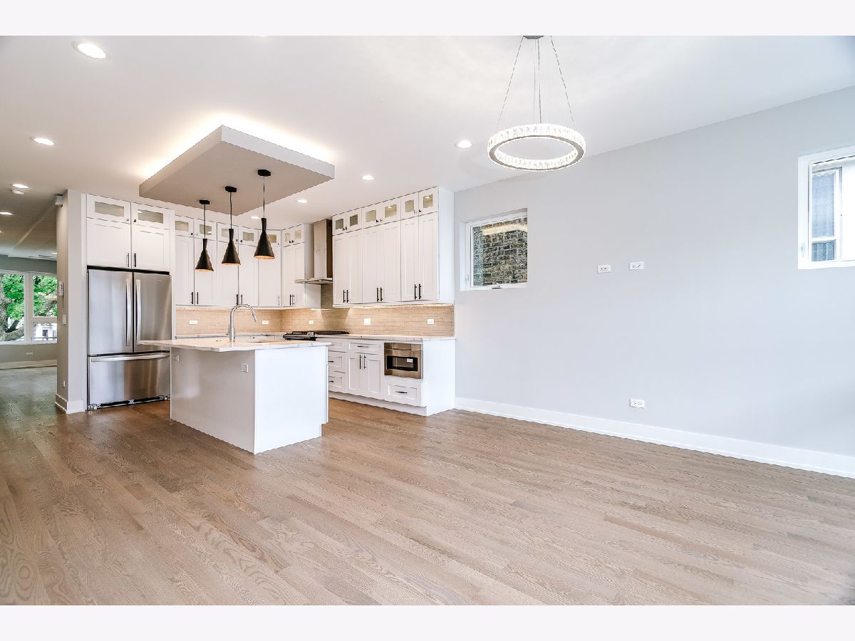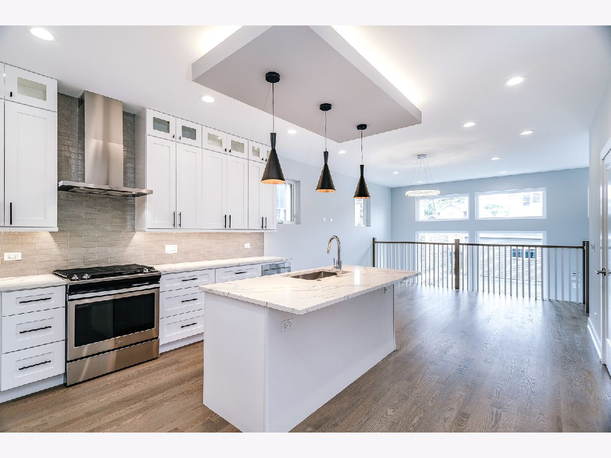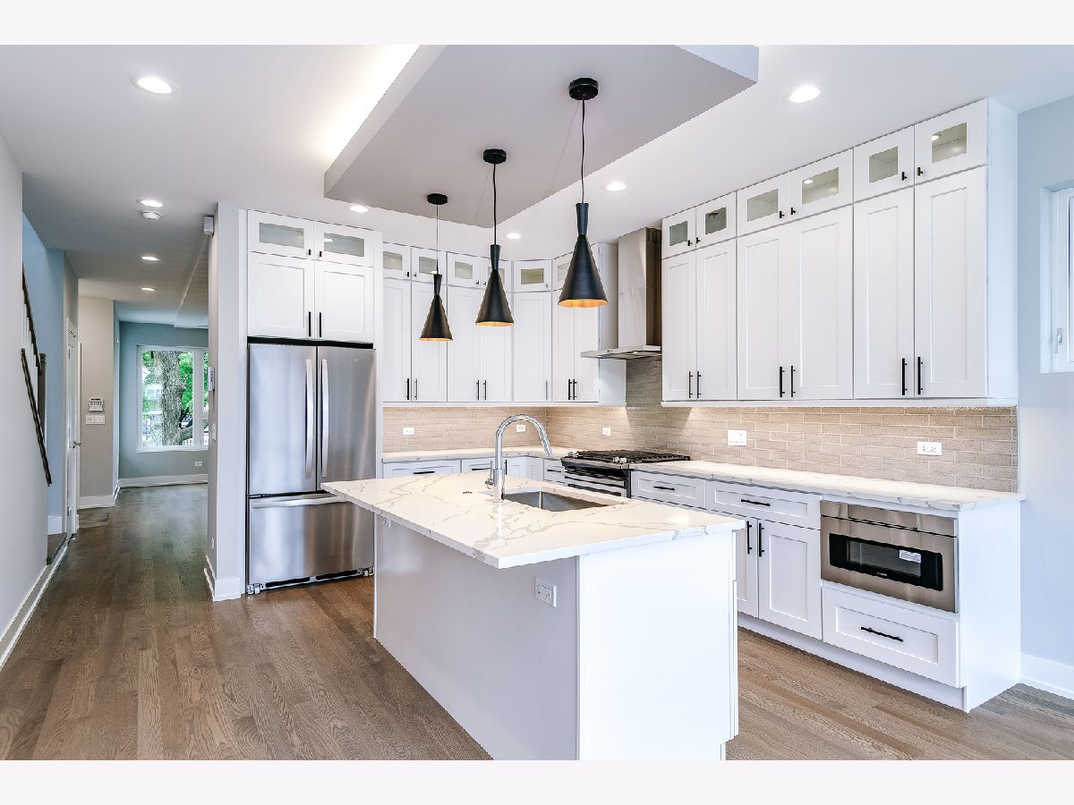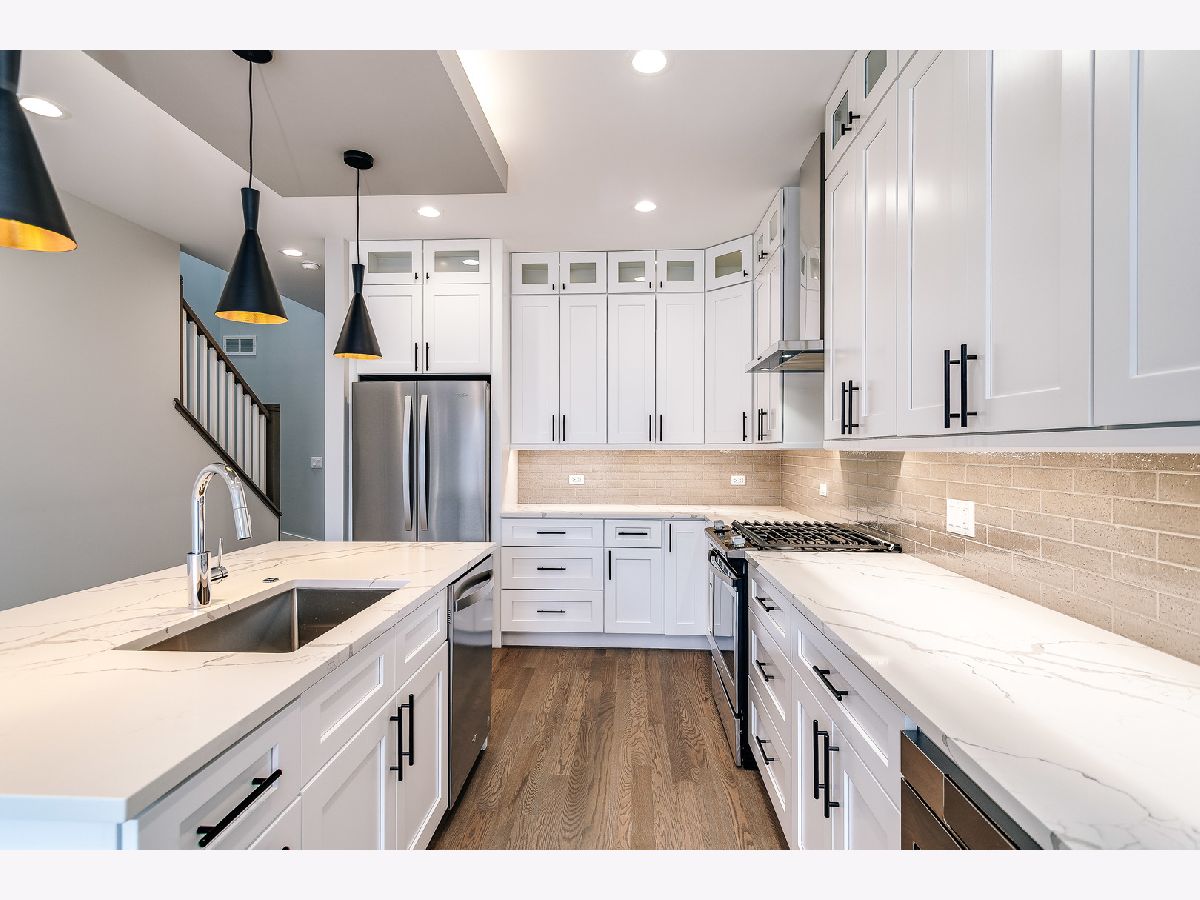 Contemporary new construction Logan Square SFH by top developer. Bright and spacious combined living/dining with gas fireplace. Chef's kitchen with stainless Whirlpool appliances, soft close shaker cabinetry with transoms and under counter lighting, quartz countertops, island with bar seating, and pantry. Adjoining family room with oversized windows and exit to rear yard. Sunny master suite features custom ceiling detail, two large closets and spa like bath with frameless glass shower, designer tile, and dual vanities with quartz countertops. Two additional bedrooms, full guest bath with tub, linen closet, and dual vanities, and laundry with Whirlpool washer/dryer and sink on upper level. Finished lower level with nice ceiling heights and great natural light. Large rec room with wet bar and wine fridge, 4th bedroom, full bath, and laundry room with 2nd hookup. Wiring for sound + skylights! Enclosed yard with security intercom. Rear stamped concrete patio with gas hook-up, and detached 2-car garage. Great location in Logan Square! Easy access to neighborhood hot spots, public transportation, I90 and more.