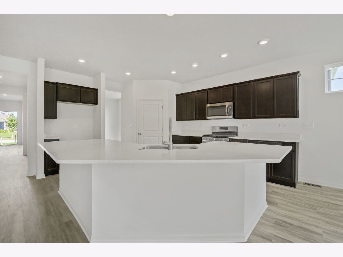 Stunning #brick accents, #large windows and #architectural shingles set the stage for this stunning #ranch home. Placed on nearly a 1/4 acre, with both a fully sodded and landscaped yard, this single-story home is ready for you to move right in! You'll love all the not so standard #premium features this #Kimball home offers. Entering the #bright and #spacious foyer while being greeted by upgraded finishes is just the beginning! Let the #9' ceilings and #luxury vinyl plank flooring lead the way! The spacious #open concept kitchen makes entertaining a breeze; featuring a cooks' dream kitchen equipped with timeless warm colored #Aristrocraft cabinetry, a #corner pantry, #crown molding, #quartz countertops and a #large kitchen #island! Enjoy your meal in the breakfast area, #formal dining or on the #covered back porch! Two secondary bedrooms and a full bath accompany a large 13 X 18 retreat. The ensuite showcases a #comfort height #dual vanity, separate shower with #tiled surround, #soaker tub and huge 10 X 9 #walk-in closet! Sleep well knowing all #DR Horton homes in #Chicagoland offer #Smart home technology and a 1, 2, & 10 year #Home #Warranty. Come in and check out #Springbanks vast #walking and #biking trails, #202 schools, and the #Aquatic center-you'll be glad you did! Schedule your private showing today or stop in the model home office at 25306 W. Cerena Circle for more information.**photos are of another model home**