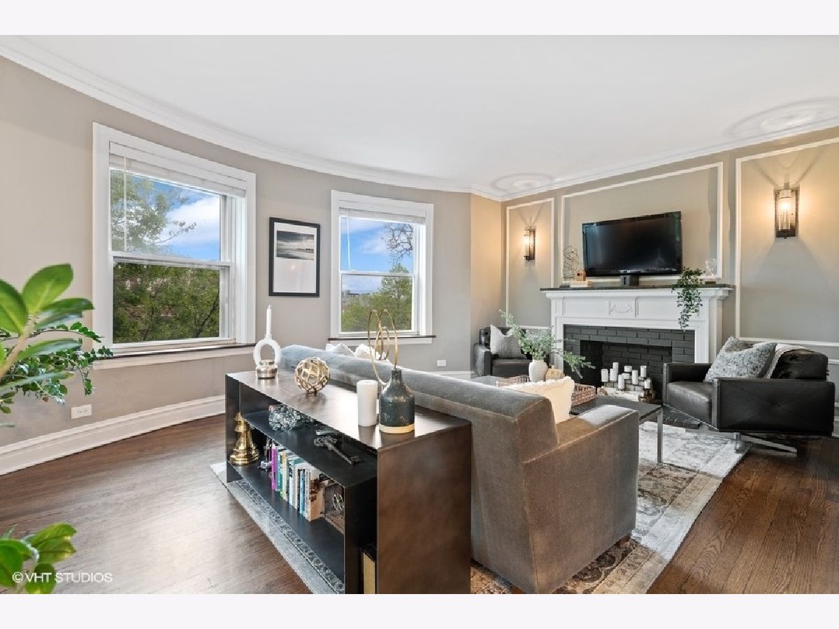 Unique opportunity to own a beautiful vintage condo in the heart of Logan Square. This east facing top floor residence offers impeccable character and views - the downtown skyline in the distance and beautiful treetops, Logan Square Park and Boulevard right outside your windows. The vintage layout is incredibly spacious and in contrast to many new construction units, this home has a sprawling living area lined with windows, vintage molding, wall sconces and a gas fireplace and is completely separate from the large formal dining room. In the kitchen, you will find tall cabinets with great storage, granite countertops and updated appliances. Both bedrooms easily accommodate king beds, have wonderful light and very big closets. The bathroom features marble hex floors, a new vanity with marble top and updated fixtures. Entirely move-in ready and completed with in-unit laundry and a large common rooftop deck just off your back door! Unbeatable location with the incredible Lula Cafe right outside your front door, the Logan Square farmers market across the park, Billy Sunday, Andros Taverna, Webster's Wine Bar, Reno, Longman and Eagle, Daisy's and a bunch more city hot spots minutes away.
