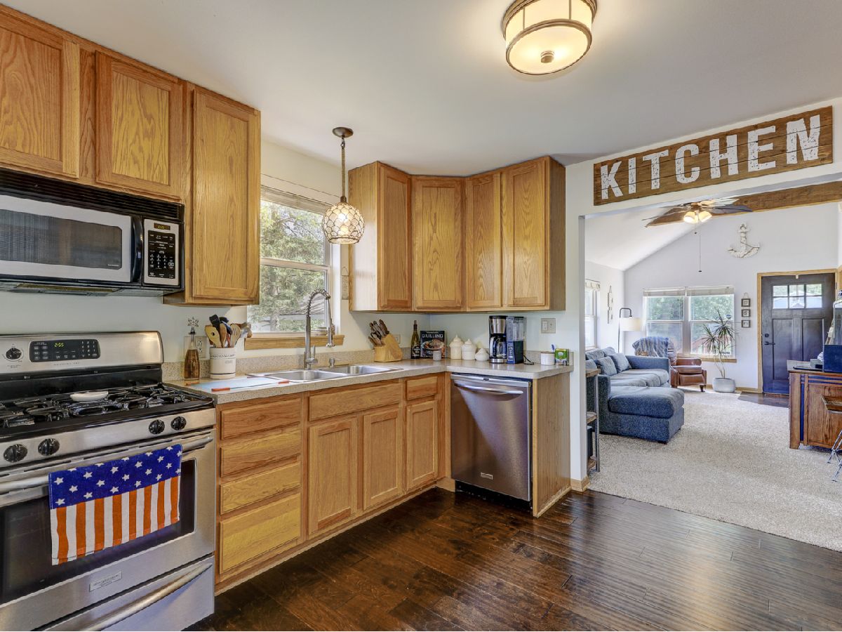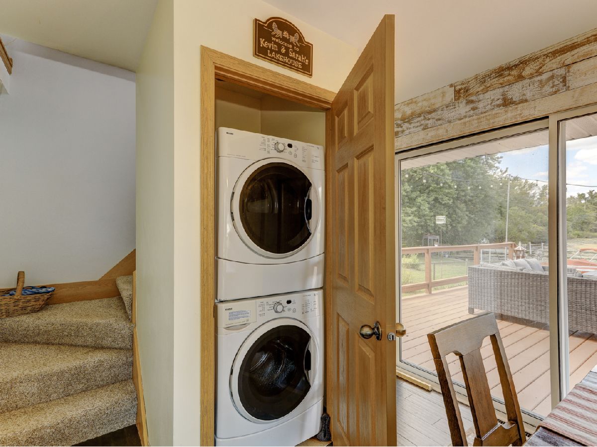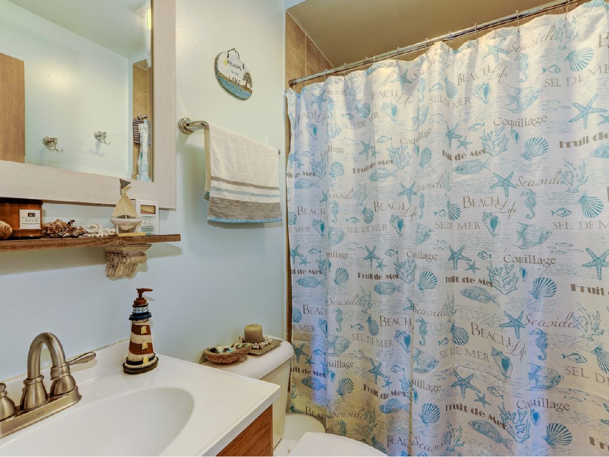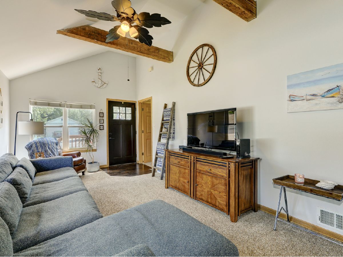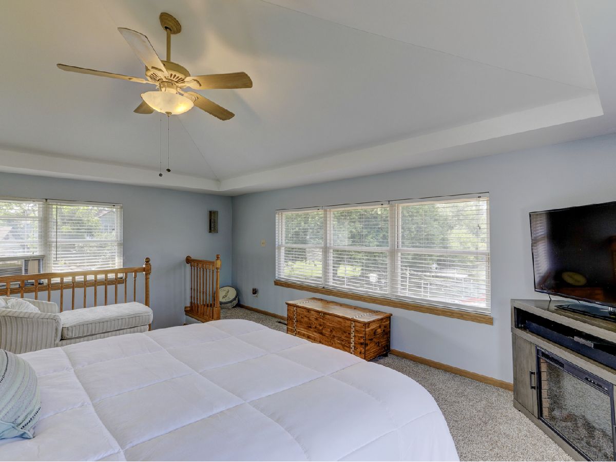 Amazing 2 story waterfront home with 3 bedrooms, 2 full baths, 2.5 car garage and full basement. Property sits on a double lot with 100 ft of frontage on wide channel that leads into Bluff Lake, Petite Lake and Fox Lake. Image waking up to the sound of nature sitting on your beautiful deck watching the fish jump out of the water, hearing the birds chirping and seeing the beautiful birds including the Pelicans in early Spring. Inside you will love the nice updates the home has to offer including hardwood floors in the kitchen with SS appliances, living room with volume ceiling and wood beams and large eating area. Main level includes 2 bedrooms and upstairs you will be amazed by the large master suite w/expansive windows overlooking the Lake with huge walk in closet and brand new updated master bathroom w/all new flooring, faucet, toilet, vanity and shower with nice lighting etc. Entertain guests on your 30 x 30 wrap around deck or in the gazebo. New features include new sump pump, new driveway (2020), new HVAC (2020), resealed deck (2021), new front porch (2021), new master bathroom (2022). Newer dock/boat pier, storage shed, fire pit and more. Move in ready and in time to enjoy the rest of the Summer.