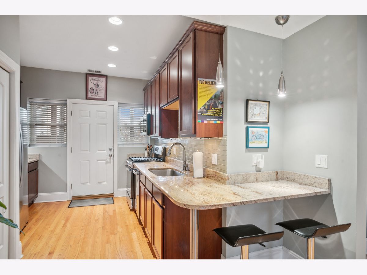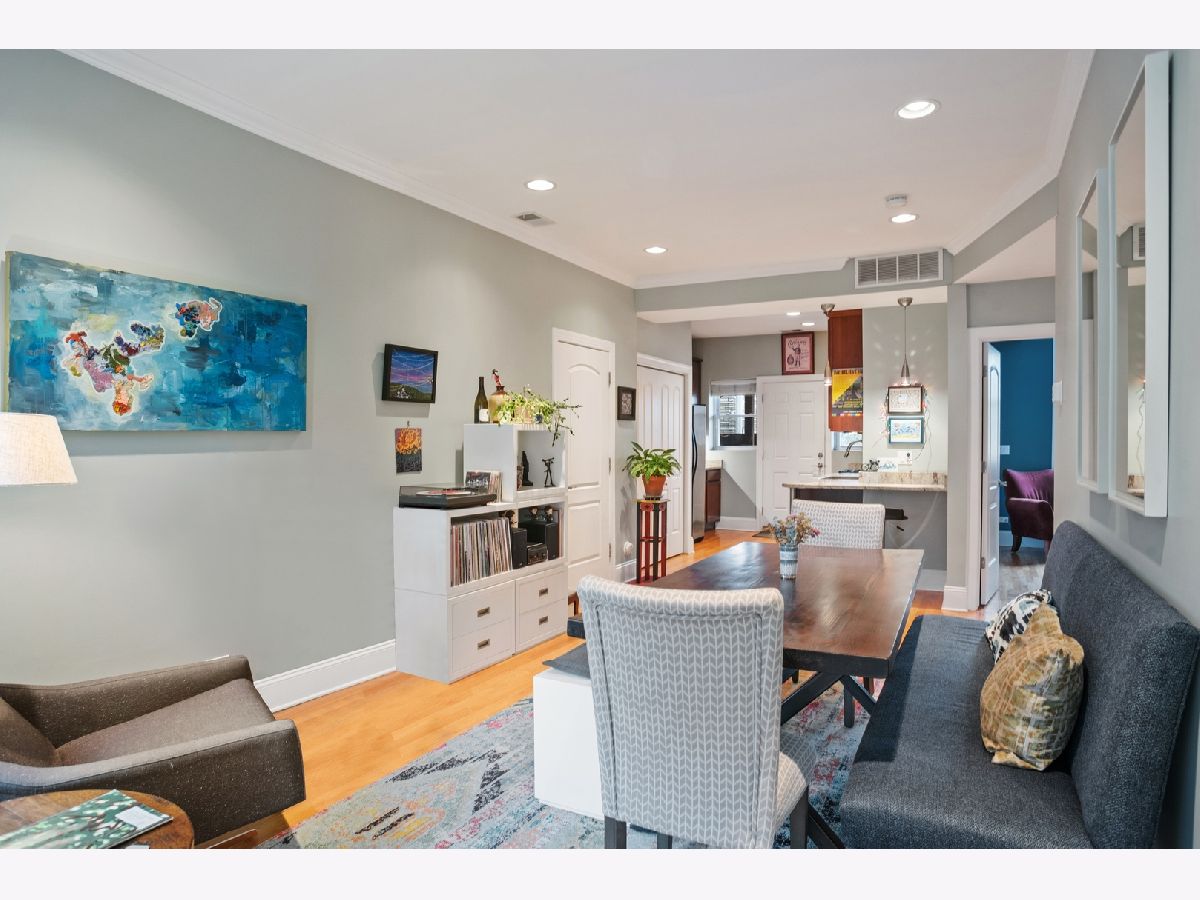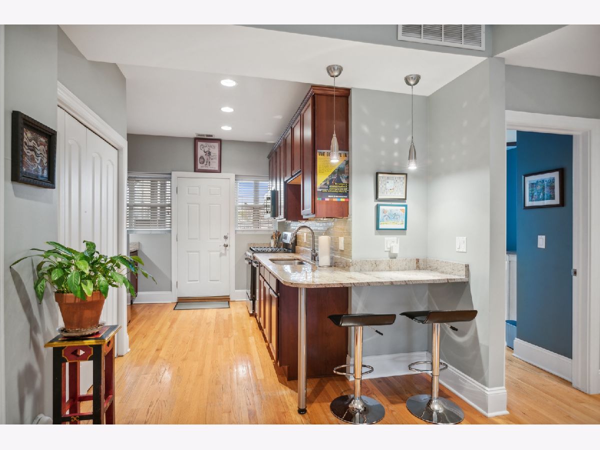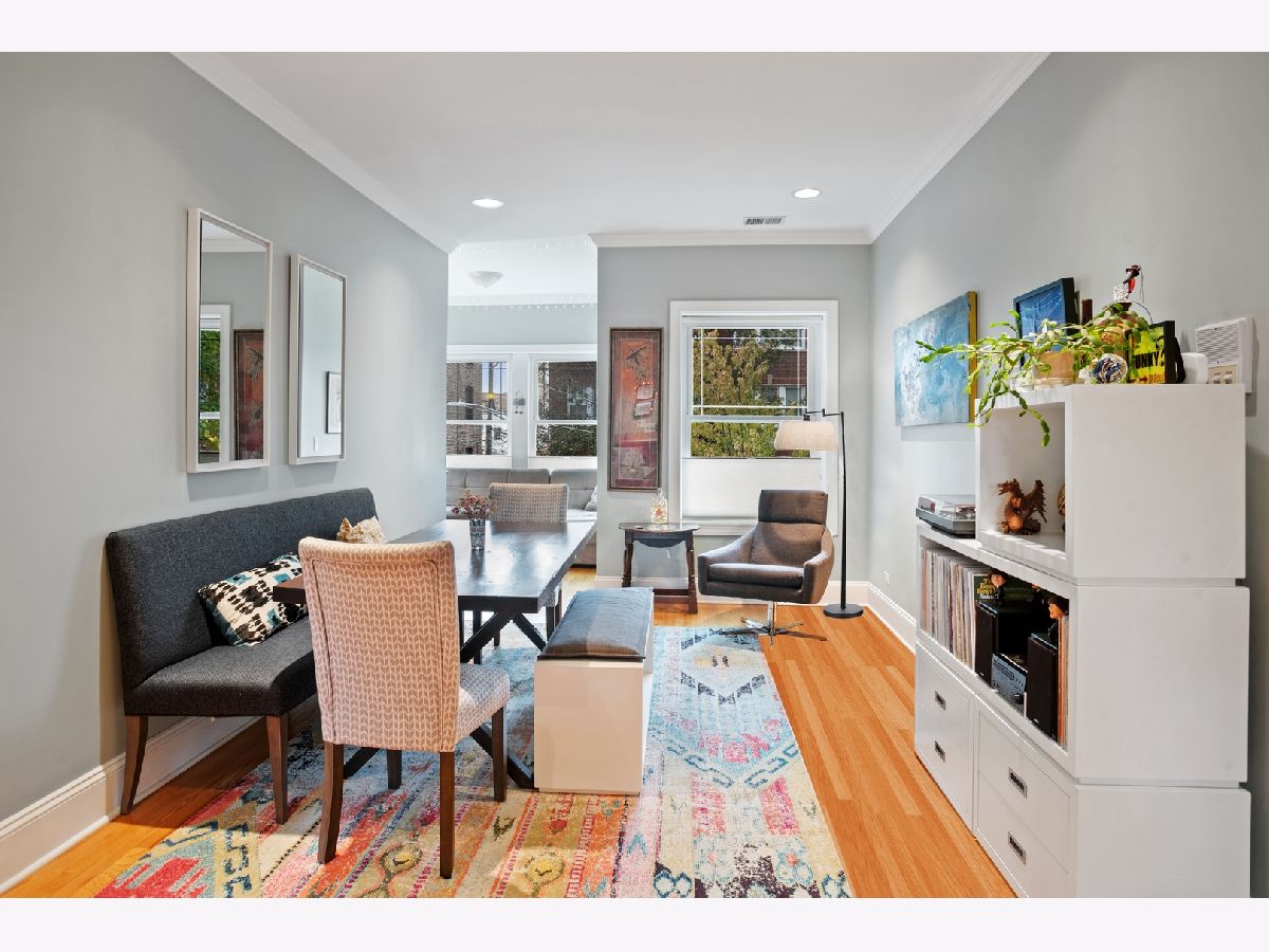 Lincoln Square sun filled adorable renovated corner (!) unit located on a tree lined street with views from every window. Located in Waters Elementary School district! Flexible floorplan (see pics w alternatives) Perfect for entertaining. Well appointed with hardwood flooring, spacious kitchen with cherry cabinets, granite counters, tile backsplash, new stainless steel appliances & a cute nook w room for 2 stools. Sizable deck off the kitchen. Nice sized bedrooms. This home also has a sunroom perfect for a dining room table....or a sectional and used as a den.....or great space for an office. In unit laundry, central air and heat plus additional storage in the basement are just a few added perks. Easy street parking or possible rental near by. Walk to the River, Horner Park, Wells Park, the brown line stop, all things Lincoln Square including the library, health club and Old Town School of Folk Music.