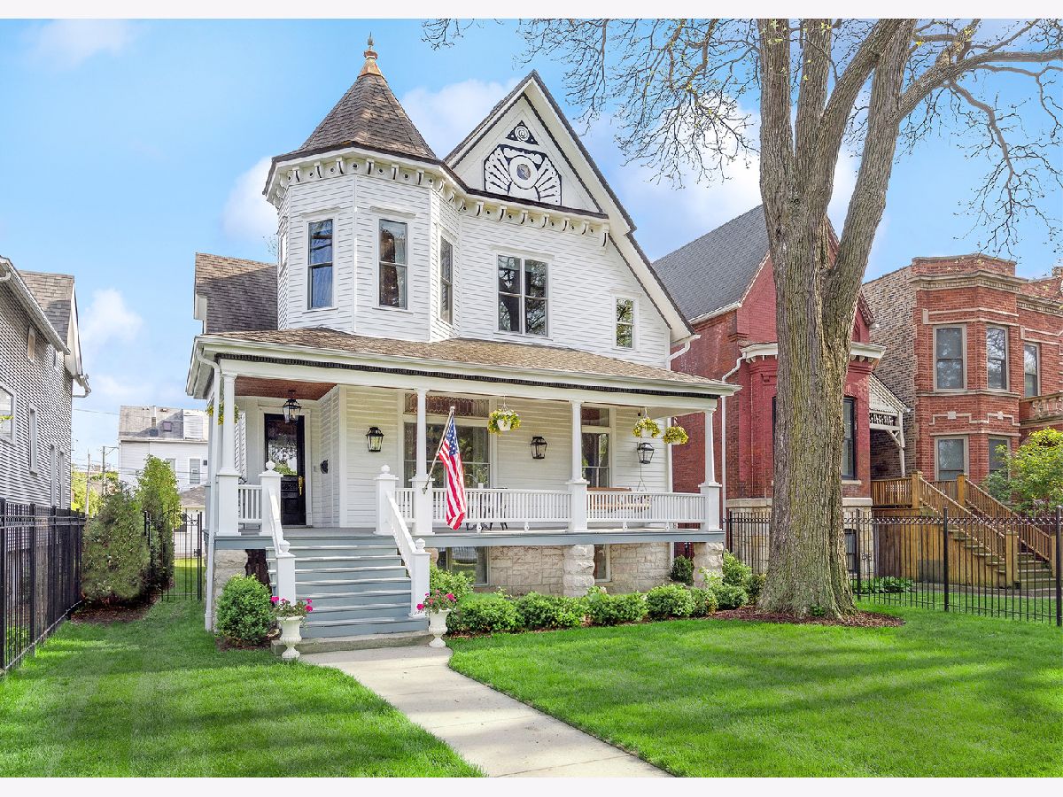 Beautiful renovation on a double and deep 48 X 166 lot on historic Logan Boulevard. Originally built in 1885 and carefully restored over a two-year period, this gated home sits on one of the largest lots of historic 'Mansion Row', only steps from St. John Berchman's School in the heart of Logan Square. Designed with soaring 10 ft ceilings and built for entertaining, the main level features a beautiful gourmet kitchen with red vein calacatta marble countertops, Wolf and Subzero appliances and Rohl fixtures. Walk out onto the rear deck with built-in Sonos speakers for indoor/outdoor entertaining through sliding glass doors to the fully fenced backyard. Outdoor grill center includes Green Egg smoker and Kitchen-Aid grill. The deck overlooks hydrangeas, evergreens, rose bushes and seven freshly-planted Chanticleer pear trees for summer privacy. Lower level features a guest bedroom, full bathroom, recreation area, mudroom, radiant heat, flood-control systems and ample storage options. Second level features three bedrooms including a primary suite with a large walk-in closet that was originally a fourth upper level bedroom, creating one luxurious primary suite today. Additional features include White Oak chevron flooring, Sonos in all living areas and primary suite, 10-inch crown molding, solid-core doors, Cedar and James Hardie siding. Opportunity to add additional square footage by finishing attic. Easy street parking for guests. Logan Boulevard is home to one of the city's largest and most beautiful Farmer's Markets, open Sundays in summer. Amazing restaurants and entertainment nearby in an A+ location. A rare find on a magnificent lot in the heart of the city. Broker owned.
