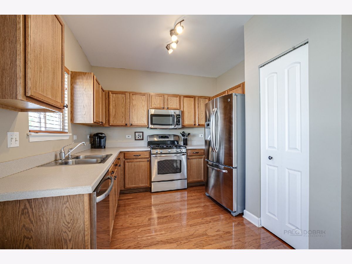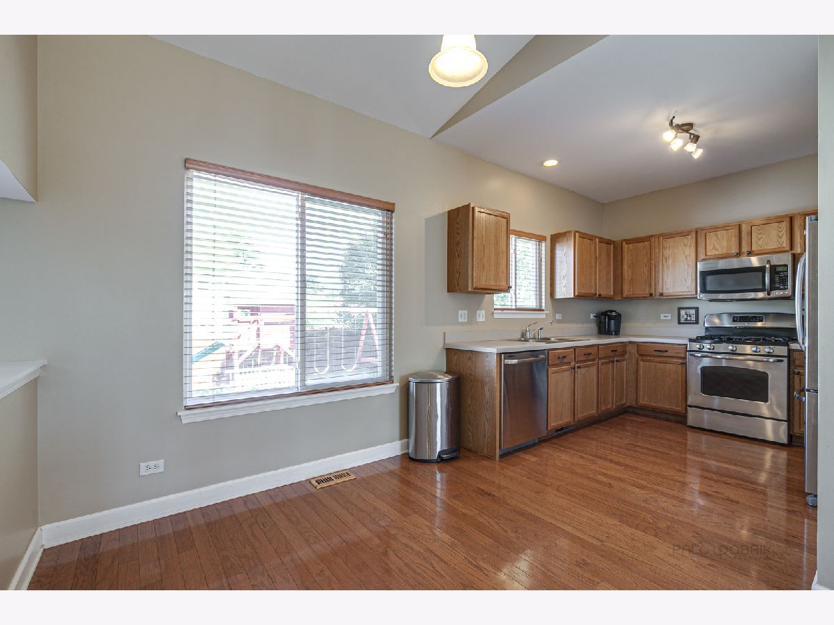Bright Tri-Level home featuring 4 Bedrooms & 2.5 Bathrooms with partially finished basement in Prairie Pointe! ~ Vaulted ceilings in the Living & Dining Rooms ~ Kitchen with Oak cabinets, GE stainless steel appliances, pantry and sunny eating area opens to the spacious Family Room with sliding doors and lots of natural light ~ 1st floor Den/4th Bedroom with "built-in desk" is tucked away and can be used as an office, playroom or even an "e-learning" room! ~ Large Master Suite offers walk-in closet and private full bath with soaking tub with subway tile surround, separate shower, and dual sinks! ~ 2 more spacious bedrooms on the 2nd floor & full hall bath ~ Large, freshly stained fenced backyard with concrete patio on a nice corner lot! ~ Plenty of storage area ~ 1st floor laundry ~ Basement is ready for your finishing ideas ~ Newer updates include: Feldco Windows (2016), Steel Front Door (2018), Roof (April 2017), Furnace (November 2019), Washer/Dryer (2018) ~ Wonderful location in nice subdivision close to shopping, transportation & schools ~ Forest preserve and trails close by ~ Move right in and enjoy this well-maintained and move-in ready Home.