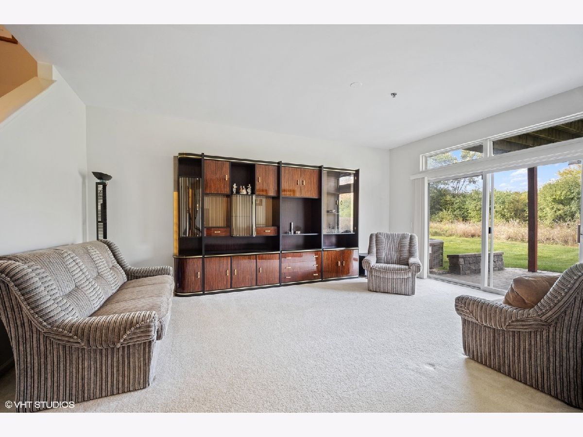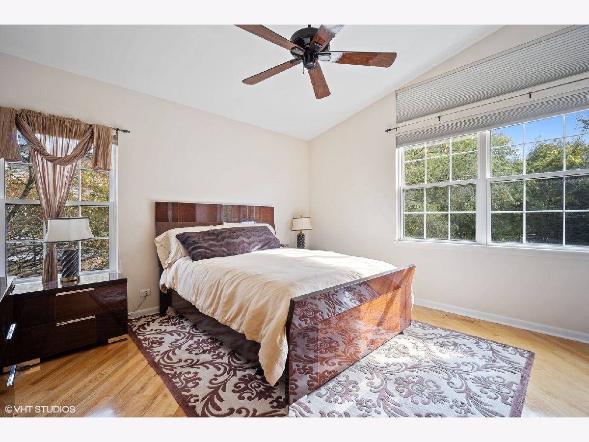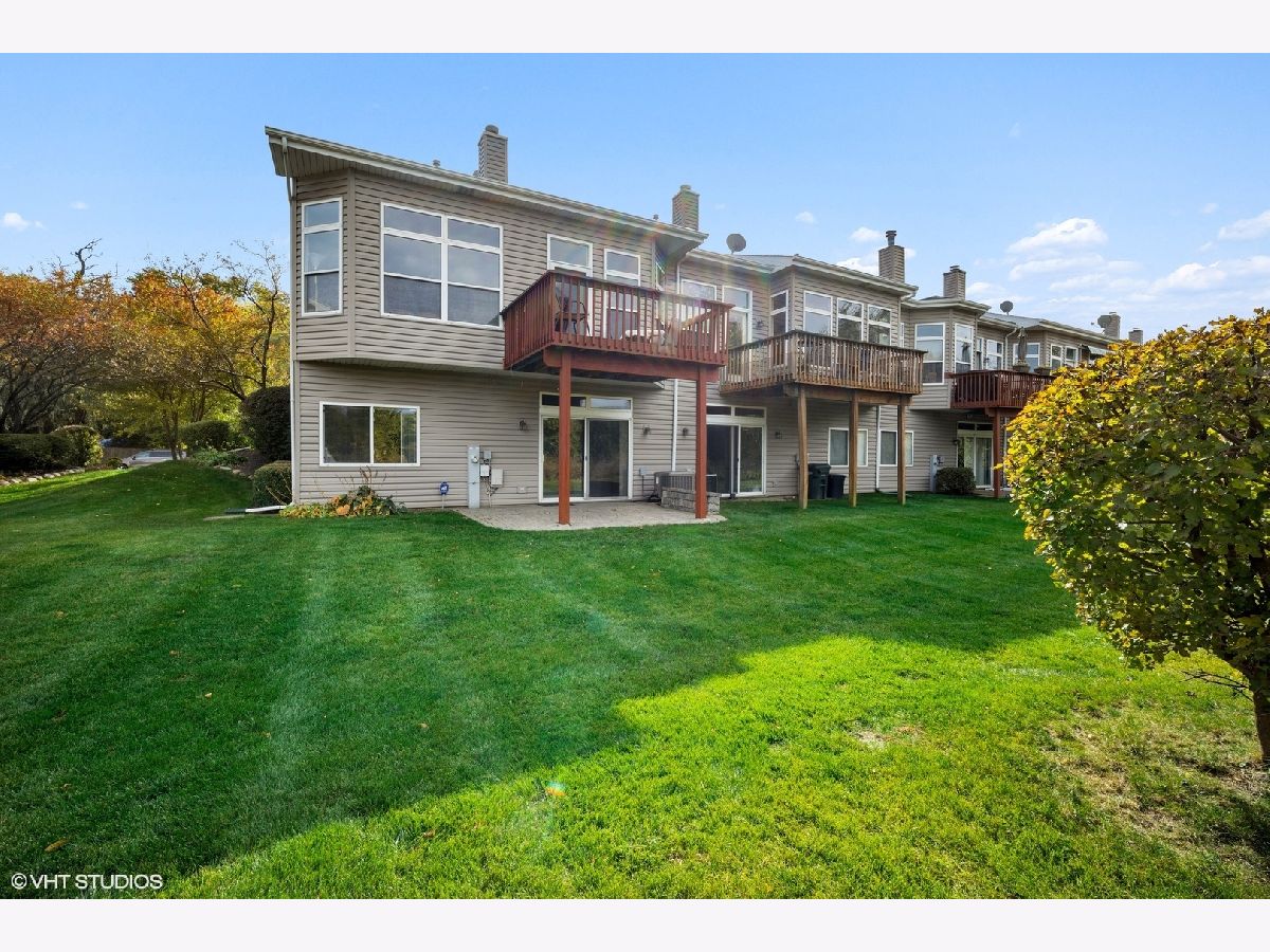 Spacious, sunny end-unit townhome nestled along a stunning forest preserve backdrop. The main floor boasts hardwood flooring, recessed lighting, soaring vaulted ceilings, dramatic curved archways and a fireplace as the centerpiece of a circular flowing floorplan. Highlights include the bright and airy living room, separate dining room and kitchen featuring stainless appliances, granite counters and plentiful cabinet space, with eating area that opens to the deck overlooking the woods. It is only a few steps up to a full bath and bedroom, plus the primary bedroom suite, featuring skylit bath with double sinks and walk-in closet. Both second floor bedrooms feature hardwood flooring. The ground floor family room and convenient bedroom with full bath overlook a lovely paver patio and the delightful natural scenery. Laundry room and attached 2-car garage with expansive storage and entry to ground floor of unit. Perfect location near shopping, dining and transportation.