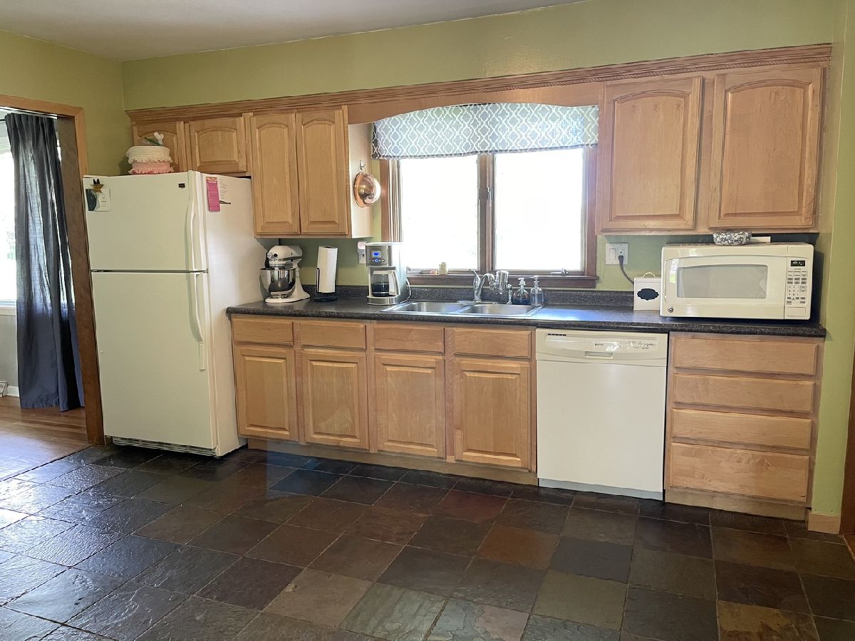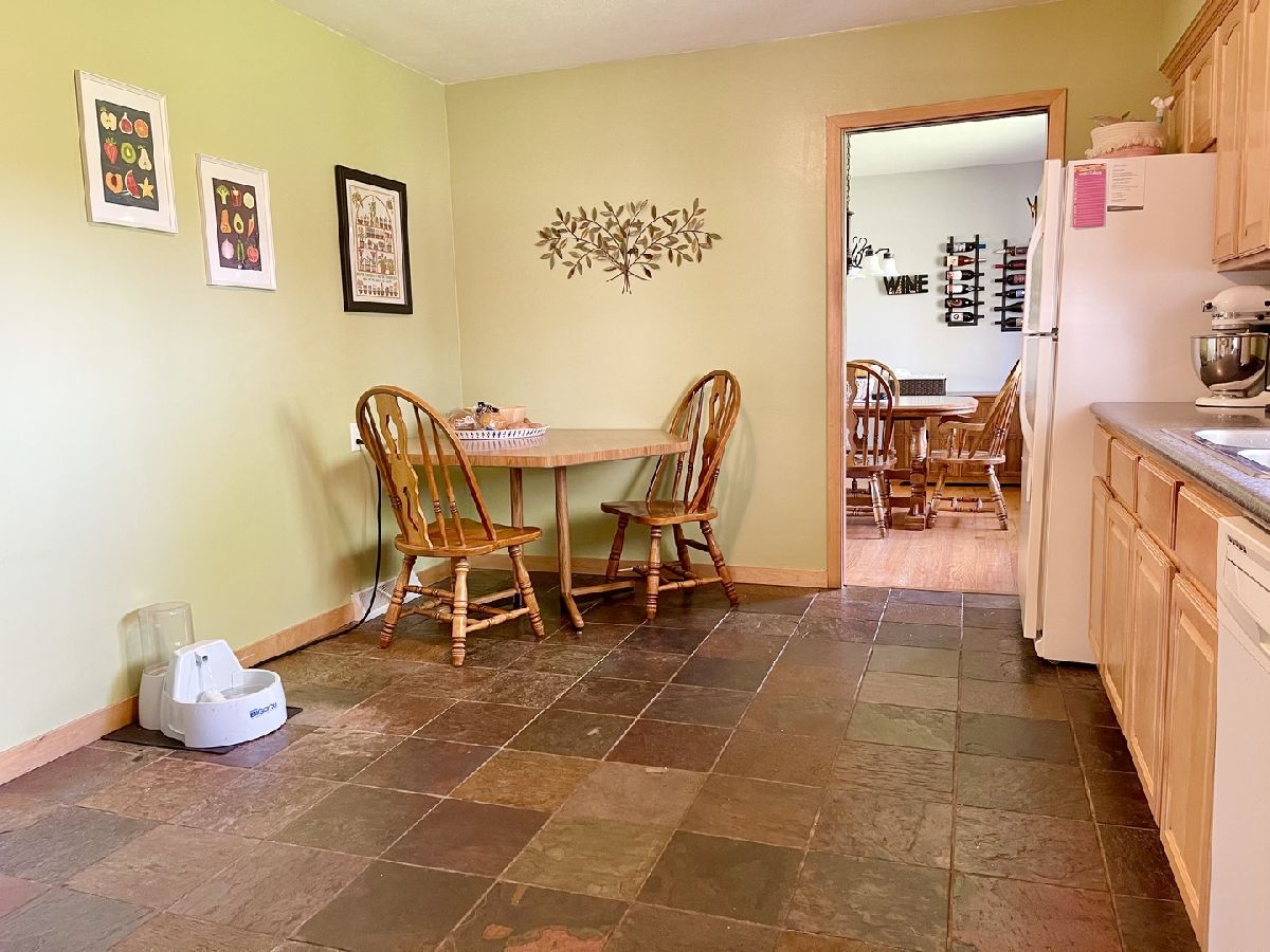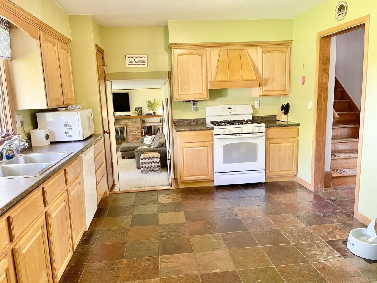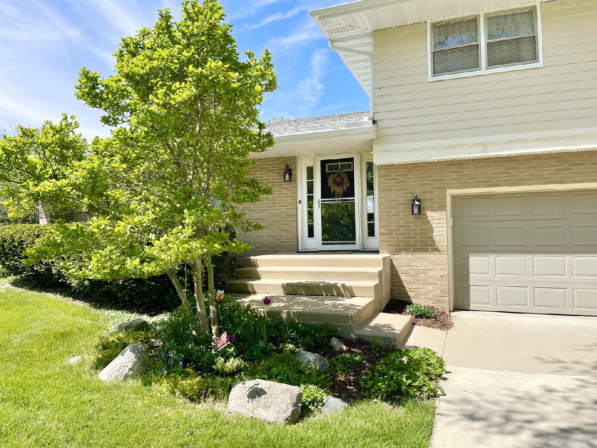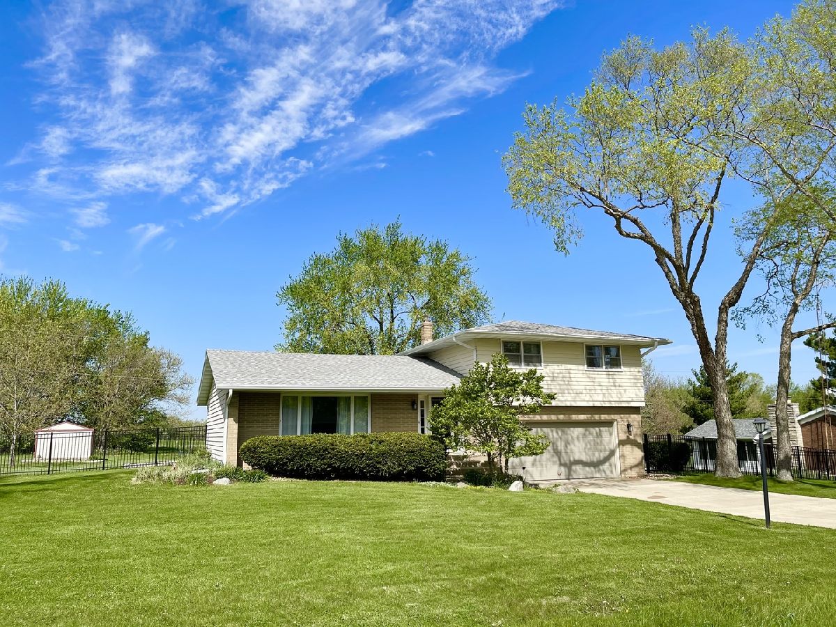 Established Lynnwood subdivision, 4-bedroom, 1.5-bath tri-level home with 2 car attached garage. Main level eat-in kitchen plus separate dining room and living room. Hardwood and slate flooring. Lower level offers family room with wood burning fireplace and access to patio and large fenced yard. Additional stamped patio off garage. Partially finished basement provides extra living space with recreation room, bonus area and laundry room with double sink. 2018 updates include roof, soffit, fascia, gutter guards, furnace, sump pump, washer and water heater. Fence 2016. 2 mounted TV's and appliances included. Oglesby school system.