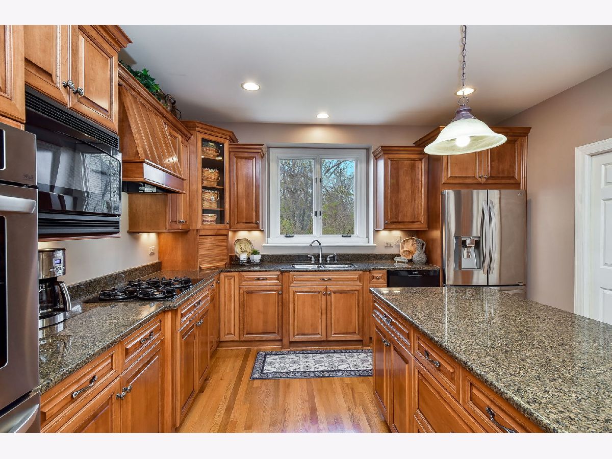 This one is truly special, love where you live! Exceptional Ginger Woods home situated on a rare half-acre cul-de-sac lot. Loads of privacy with wooded views across the rear of this lot which is the largest in the subdivision! 6000 square feet of finished living space throughout this totally custom original owner home. Enter to a 2-story foyer that features gleaming hardwood floors, stairwell with iron balusters and views straight back to the spectacular 2-story family room with its raised brick hearth gas fireplace. All granite gourmet kitchen features custom cabinetry, LG double ovens, cooktop with custom vent hood, a 12-foot-long island with breakfast bar seating, and more. Kitchen dining area has an amazing wall of windows that looks out to the gorgeous lot! Impressive open concept living between the family room and kitchen that makes this home ideal for entertaining. Utility room between the garage and kitchen with separated locker areas, utility sink, additional cabinetry, and spacious storage closet. Main level office offers a high-quality wall of built-ins, double door entry, double ceiling inset, can lighting and ceiling fan. Formal dining room with custom ceiling detail has direct access to a butler's pantry with wet bar, wine rack, and loads of storage. Sought after main level bedroom is an ideal guest or in-law suite with direct access to its own full bath. Also featured on the main level is a centrally located powder room. The spacious master suite on the upper level has a tray ceiling, dual walk-in closets, expansive attached bath with separate shower, whirlpool tub, dual vanities and seating area, and separate toilet closet. As you walk the upper-level hallway, enjoy fabulous views down the family room from the curved balcony. The laundry room is also ideally located on the second floor. Two more additional upper-level bedrooms with walk-in closets and Jack and Jill bath that offers separated private vanities off each bedroom. Dual staircases one in the front and the rear of the home. English lookout basement is perfectly finished with a game room area, custom granite wet bar with wine rack, refrigerator and microwave, recreation area with television viewing, and a large storage room! 5th bedroom is currently being used as a workout room and has access to the full bath. When you walk out of the back sliding glass door to the 15X14 screened porch, you will be in awe of this striking setting! This backyard is a private oasis with all the impressive perennial plantings that surround. Enjoy sweeping views of the lot as you sit on the back deck or stamped concrete patio. Sensational landscape lighting showcases this one-of-a-kind lot. Home includes a 3-car side load garage, zoned sprinkler system covering the entire lawn and beds, newer kitchen appliances. New roof 2018 and one AC unit in 2020. Entire exterior painted, all windows painted, all decks stained, driveway sealed in 2020. Carpeting is 3 years old and new driveway poured 8 years ago. Impressive upgrades and finishes throughout...there is so much to this home you simply must see it! This one is the whole package!!