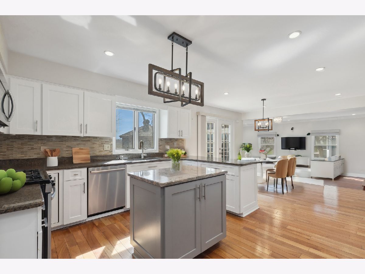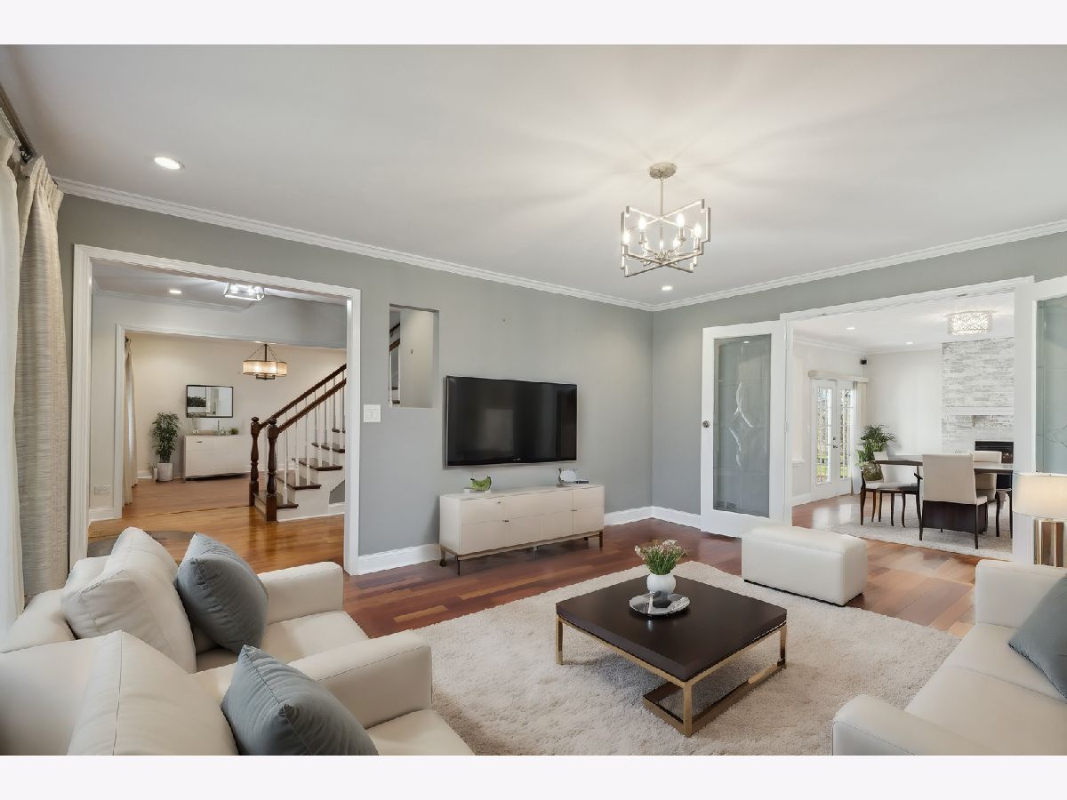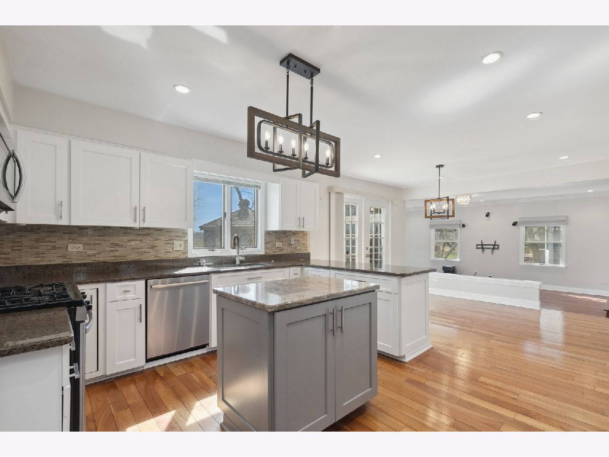 A turnkey property, Discover the allure and sophistication waiting for you on Adler Drive! Step inside to find the entire ground floor adorned with rich Brazilian cherry oak hardwood floors and tasteful, neutral-colored walls. The house features a formal dining area and a secluded living room upfront, complete with French doors that open to a cozy family room. The space is illuminated by generous windows and accentuated by a floor-to-ceiling brick fireplace. Culinary enthusiasts will delight in the gourmet kitchen, equipped with stainless steel appliances, a central island, granite countertops, and a dining area that offers direct access to a sunlit backyard. The ground floor also boasts a recently expanded and remodeled in-law suite with a full bathroom, providing a serene haven with stunning views of the surrounding greenery and natural beauty. The master bedroom is a statement of uniqueness with its high vaulted ceilings, exquisite cherry hardwood floors, dual vanities, a walk-in closet (WIC), and an adjoining full bathroom. The basement serves as the perfect entertainment hub, offering ample space for various activities. The backyard transforms into a private sanctuary with a brick paver patio and GAZEBO, overlooking a tranquil field. Located near the heart of Libertyville, this home is minutes away from restaurants, schools, the train station, Lake Minear Beach, and two major trails: the Des Plaines River Trail and the North Shore Bike Path. It's also within jogging or biking distance to multiple forest preserves, including Independence Grove and Old School Forest Preserves. There truly is no place like home! (Roof: 2023 Kitchen renovation 2020, Master bathroom renovation 2020. Upstairs bathroom: 2023,Furnace: 2023, Sump pump: 2024 ( backups system installed) Spotlights across the first floor:2018, Light fixtures: 2018, Stairs renovation : 2018, Garage door: 2023, Washer, Dryer: 2021, Dishwasher: 2022