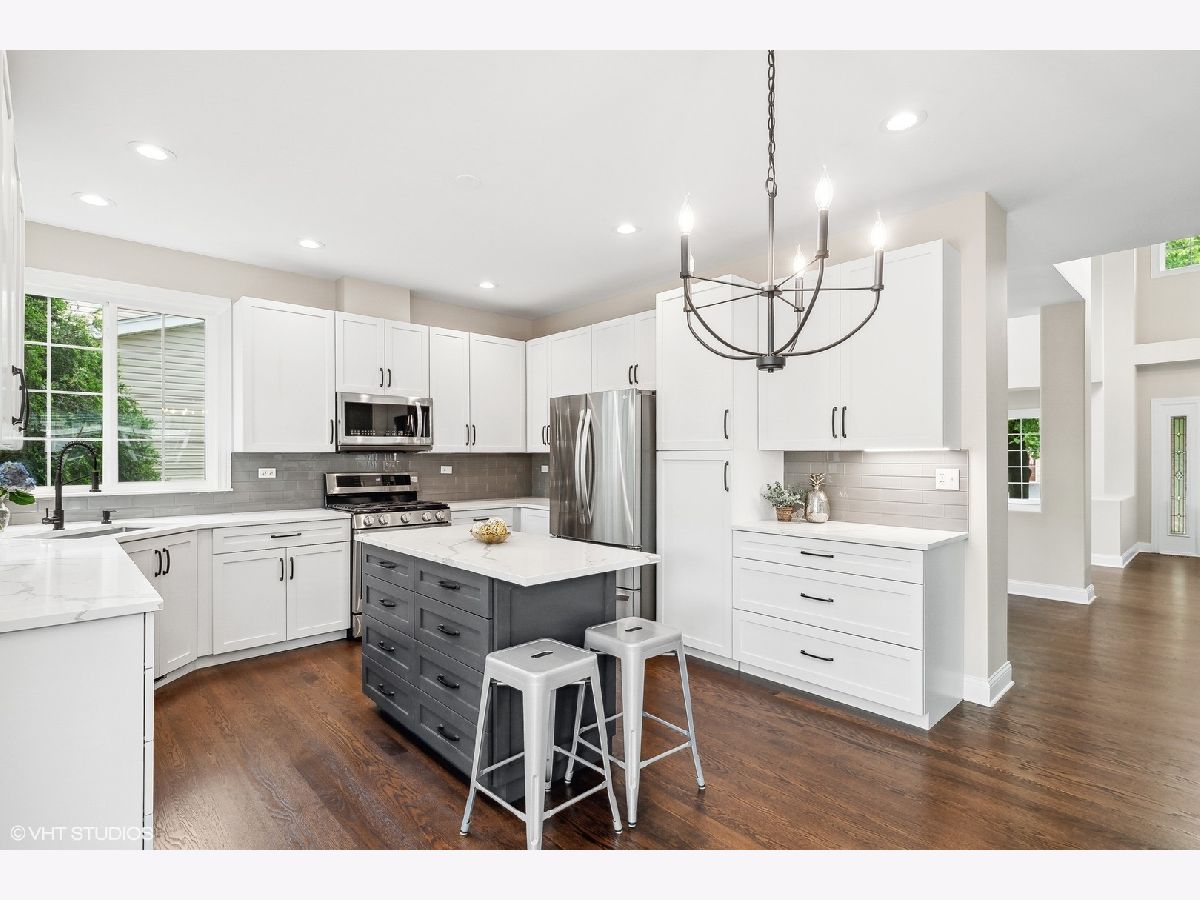HURRY... HURRY this one will go FAST. Just about everything is NEW NEW NEW...Freshly updated with CUSTOM white shaker kitchen cabinets with gray island, quartz counters, glass subway tile backsplash, black faucet & hardware, BRAND NEW SS kitchen appliances (stove has built-in air fryer), new recessed kitchen lighting, new CUSTOM powder bath vanity, mirror and toilet, NEW HARDWOOD FLOORS, new carpets, new vinyl flooring in baths & laundry, new interior paint and new lighting. This bright expanded Windsor model is oozing with pride of ownership in every detail. Original owners selected some special features when they built ... expanded family room, large laundry/mudroom, beautiful stained-glass transom window above sliders to patio, service door in garage, full basement that is roughed-in for future bathroom and sprinkler system. The open floor-plan boasts an expanded family room with wood burning stove (w/heat exchanger) which can be utilized in many different ways... an extension of the kitchen eating area, oversized family room or break it up into a family room+ den or office or playroom. Convenient 1st floor laundry/mudroom has lots of storage (note washer/dryer is not included). The highlight of the bedroom level is the primary bedroom suite with vaulted ceilings, two vanities, deep soaking tub, separate shower and TWO walk-in closets. The other 3 bedrooms are a generous size; one with direct access to the hall bath. Beautifully landscaped, partially fenced, large covered front porch, patio, sprinkler system (AS IS) and invisible fence (AS IS). The deep-pour full basement is a blank canvas to make it your own. Concord Grove is in the Hawthorn Elementary and Mundelein High School districts with private Carmel High School around the corner. Mundelein Park District's 10 acre Hanrahan Park is 1/2 away with walking/biking/fitness paths, tennis, fishing pond, ball fields and playground. There is truly NOTHING TO DO but move in and enjoy this home and community. Quick close is possible!!