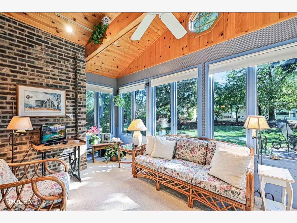 Welcome to this spacious 4-bedroom, 2.5-bath home located in the highly sought-after Huntington subdivision! Upon entry, gleaming hardwood floors and a bright foyer invite you in. The living room, with modern gray palette and crisp white trim, sets a welcoming tone. Host family gatherings in the formal dining room, perfect for special occasions. The large family room, with beamed ceilings and a cozy gas fireplace, offers a comfortable space to gather or relax. A versatile office / den can easily serve as a 5th bedroom, playroom, study, or bonus room. The kitchen boasts beautiful hardwood floors, ample counter space, and abundant cabinetry with thoughtful touches like two Lazy Susans and pull-out shelving, including in the massive pantry! Under-cabinet lighting and a large skylight keep the space bright and inviting. Enjoy your morning coffee or a good book in the four-season sunroom, which features a stunning wood ceiling, surround windows, and heater, making it a perfect retreat year-round. Step outside to the serene backyard, complete with a brick patio and lush landscaping, perfect for outdoor entertaining. The first-floor laundry/mudroom, located just off the garage, adds convenience to daily living. The garage stands out with sleek epoxy flooring and a versatile wall storage system, ideal for organizing tools, recreation items, and more! Upstairs, the primary bedroom features a spacious walk-in closet with organization system. The en-suite bathroom includes two separate sinks and shower. Three additional bedrooms are generously sized. Second full bath features an extra-deep jetted tub. The finished basement provides additional entertaining space with a wet bar and mini fridge, while the unfinished area offers ample storage, including a cedar closet. This home offers incredible value in one of Naperville's original subdivisions. Top-rated Naperville 203 schools, minutes to Downtown Naperville, and walking distance to parks and local amenities. Don't miss this opportunity to bring your design ideas and make this house your home!