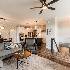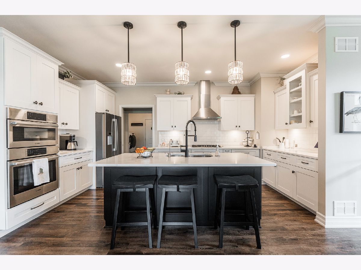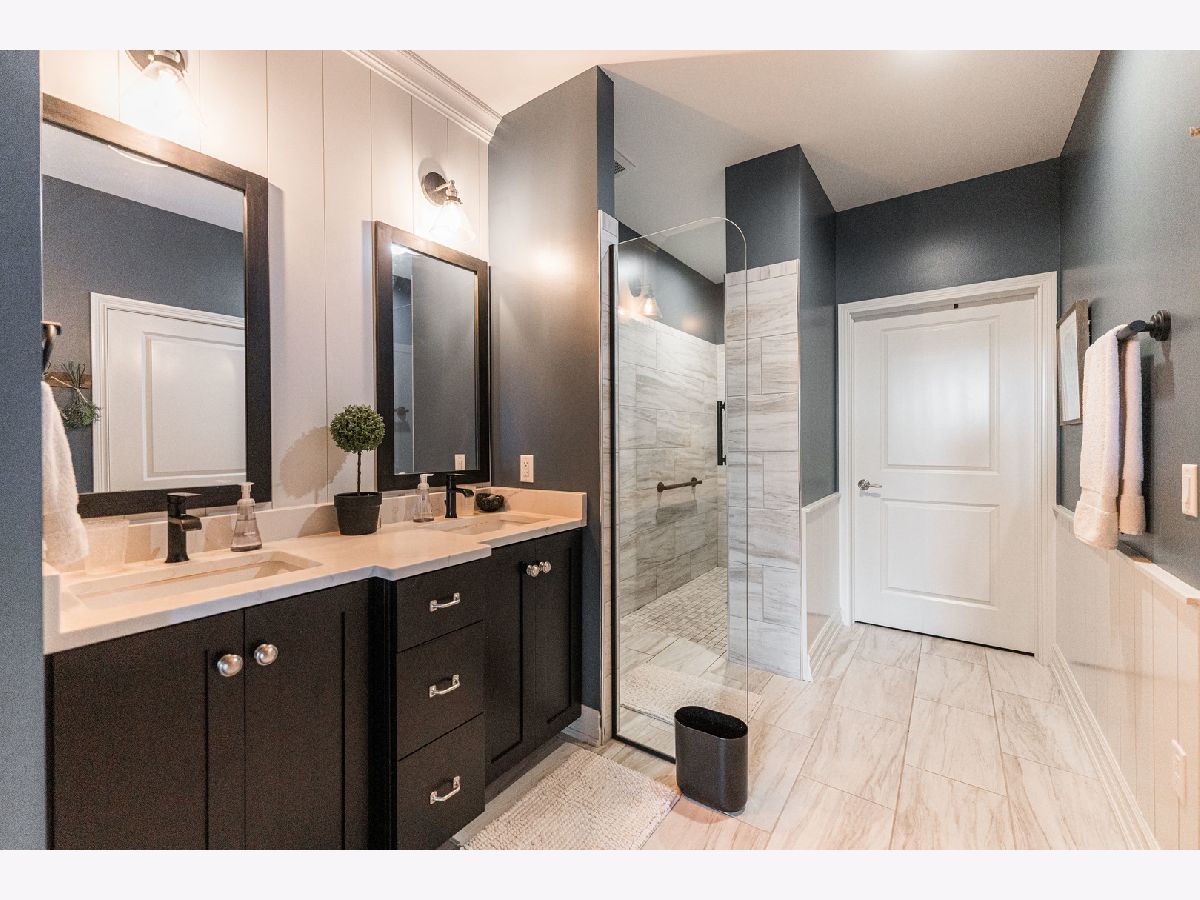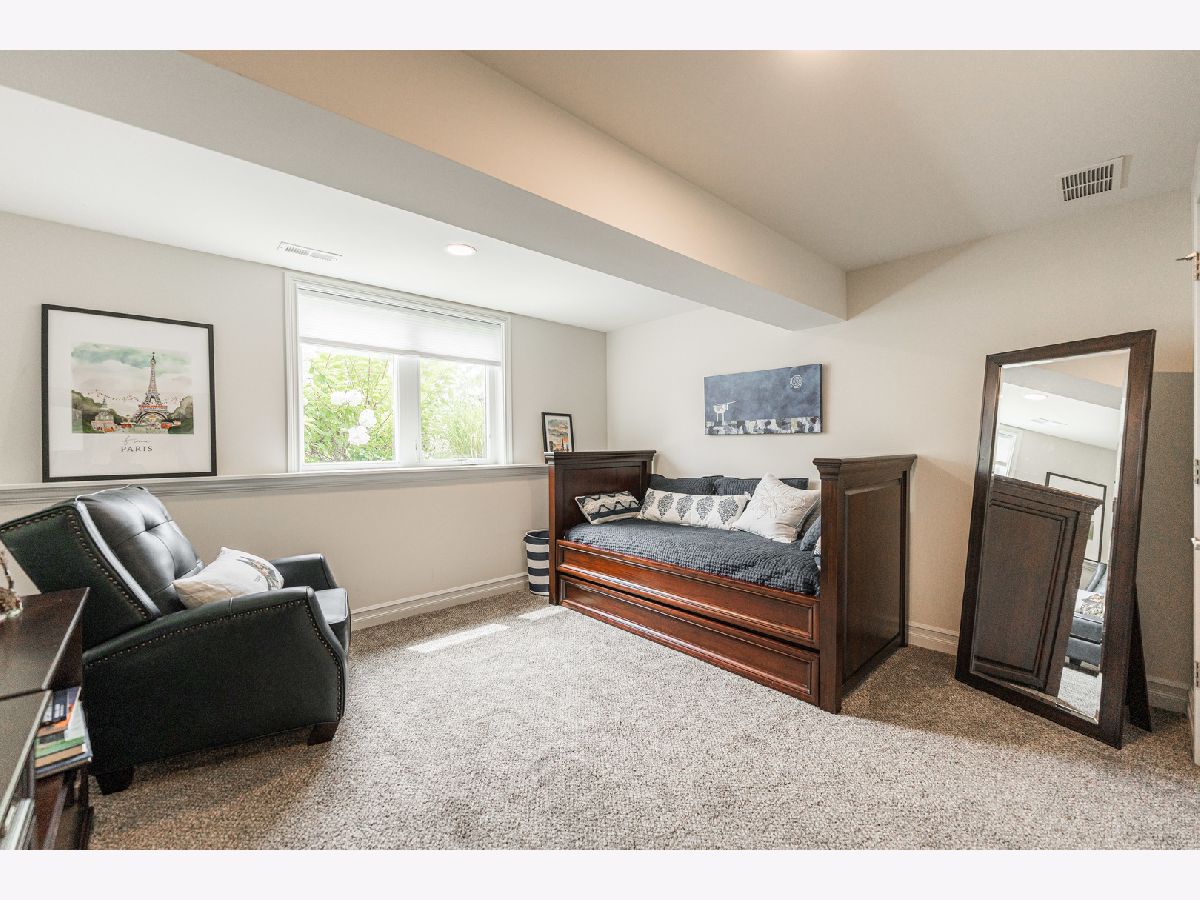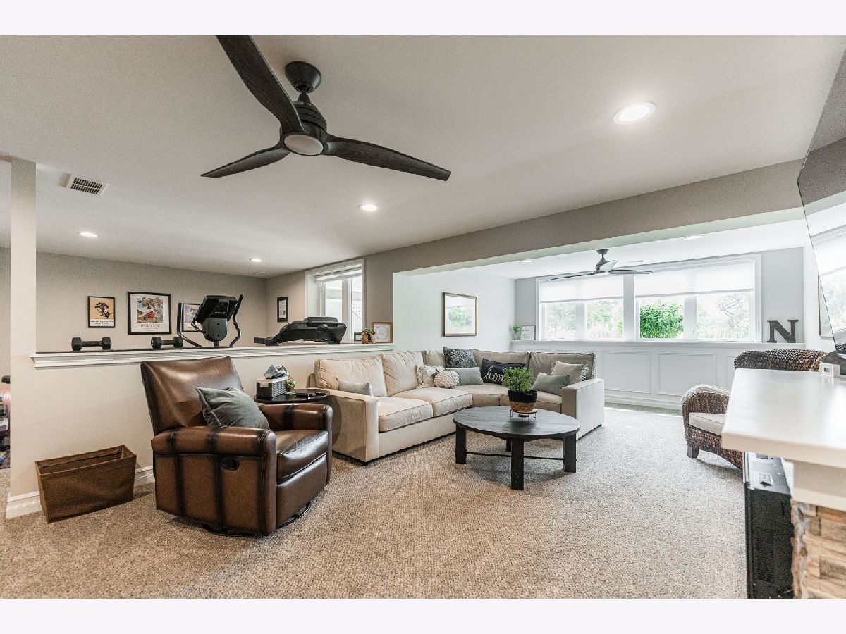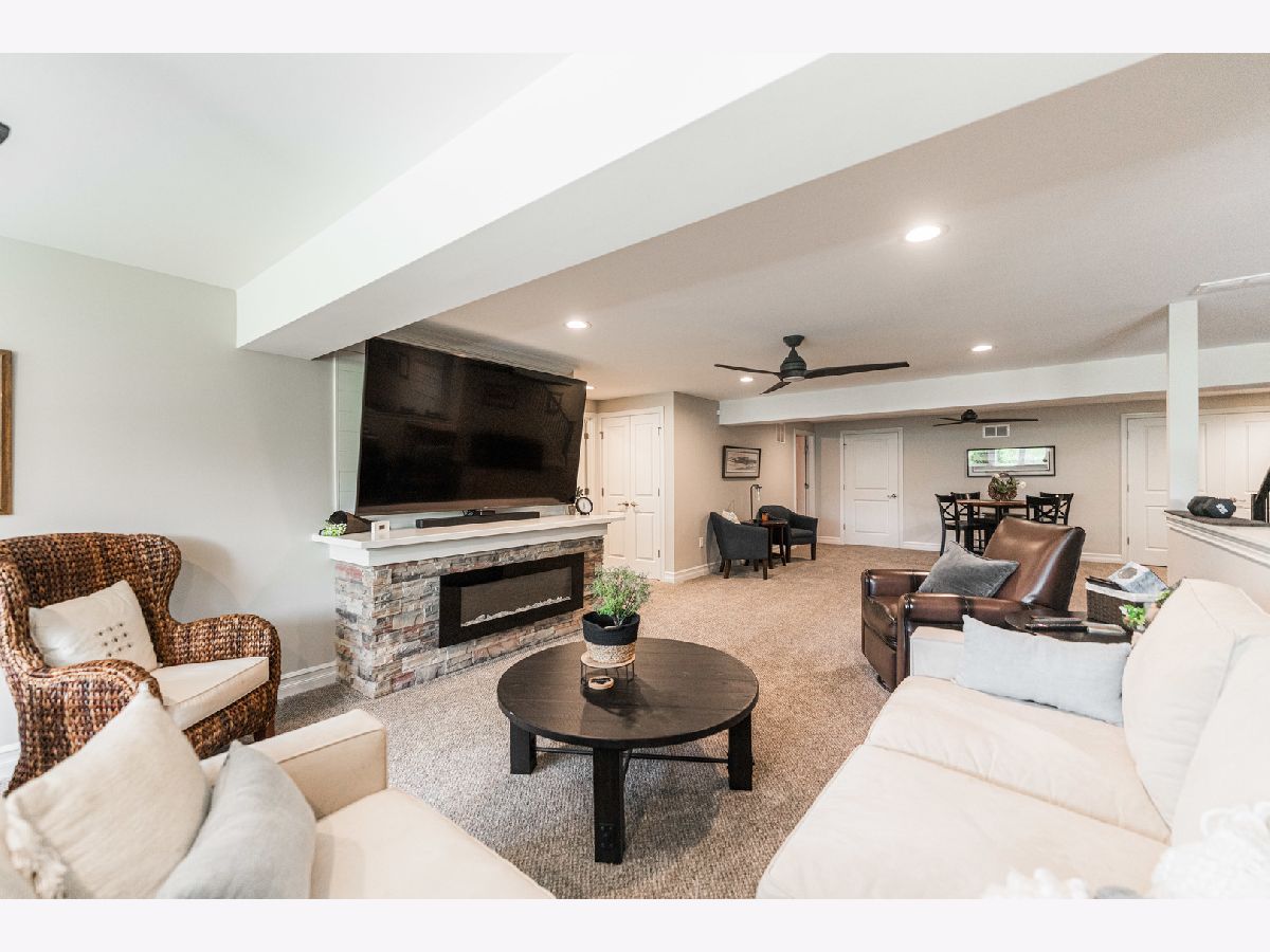 RARE OPPORTUNITY FOR A LOOKOUT BASEMENT WITH AN INCREDIBLE PARK VIEW! Beautiful south-facing home with a view overlooking Old Mill Park. Home backs up to mature trees, walking path, and the park. Enjoy morning coffee, sitting on the stone patio surrounded by nature and beautiful landscaping. This home was completed in 2021 and showcases high-end finishes such as Brakur Custom Cabinets in a white finish, quartz countertops, a corner fireplace in the living room, a lit tray ceiling in the main suite, Bosch appliances, LVP throughout the main living area, Pottery Barn light fixtures, and Pottery Barn room darkening drapes in main floor bedrooms. The home has a modern farm house feel with sleek matte black finishes that provide a great contrast to the white cabinets and trim. The finished, lookout basement features a great space for a home gym, a cozy living space with an electric fireplace, ample storage, an additional bedroom and full bathroom. Don't miss your chance to move into this premium location in the Old Mill Park 55+ Condo Community!