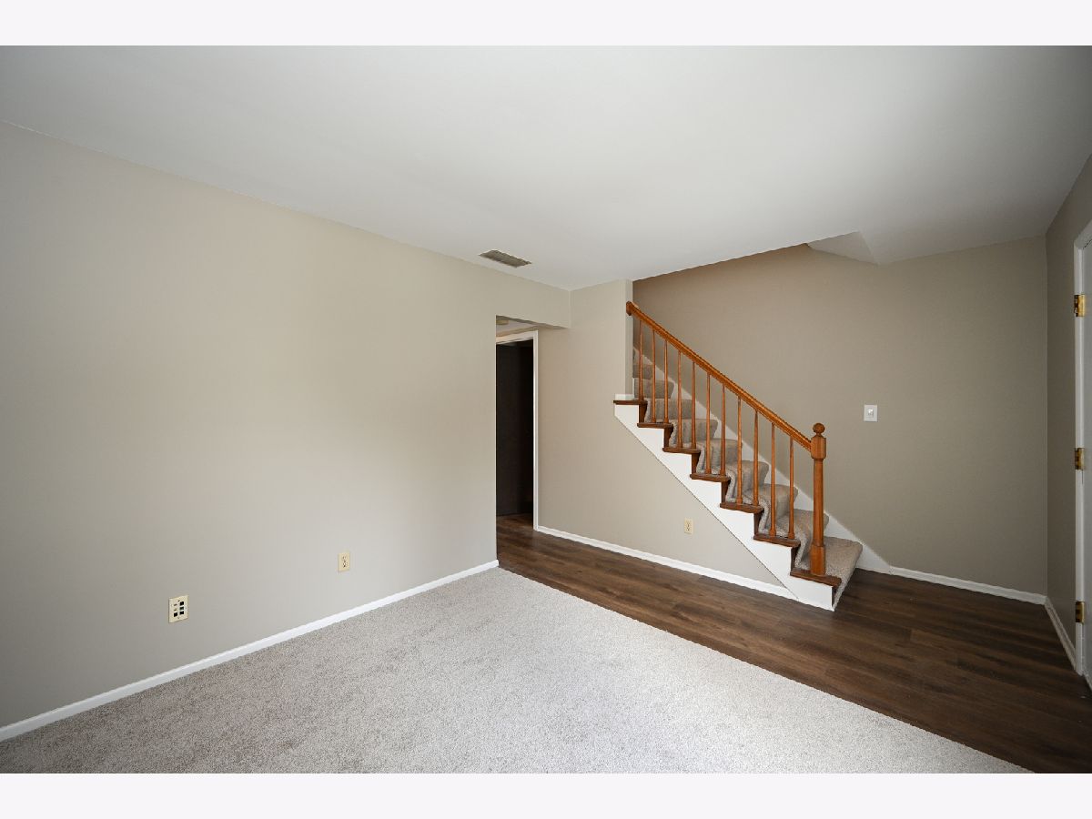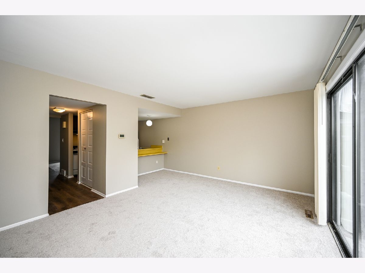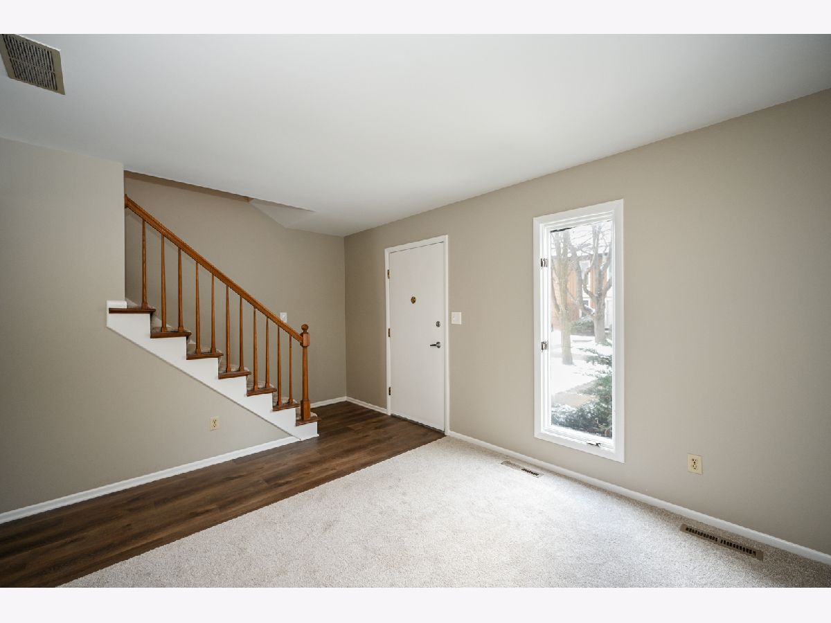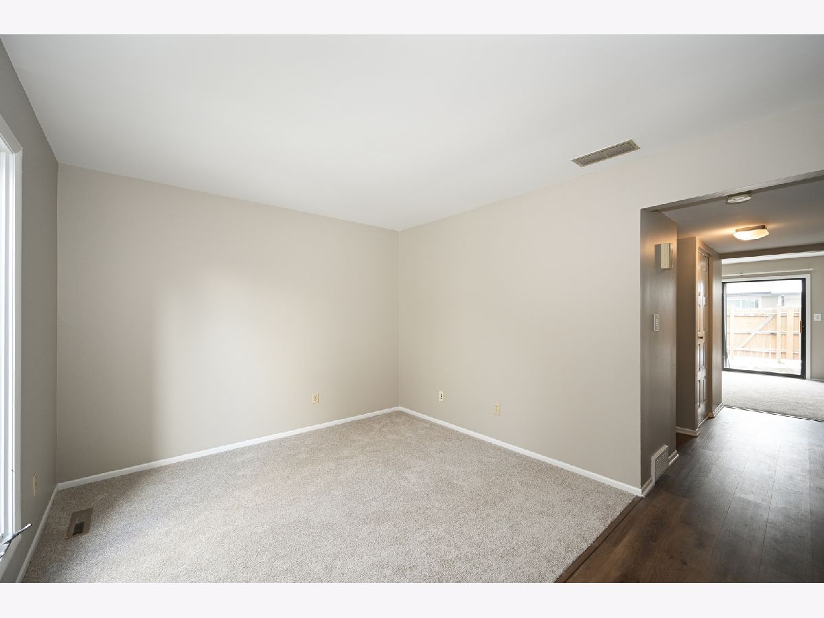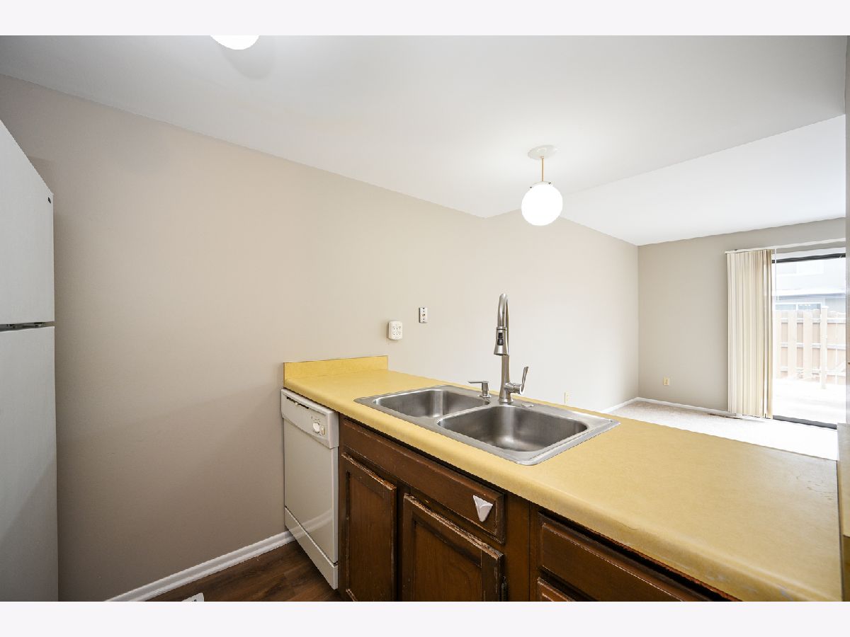 Refreshed Garden Quarter townhome. Freshly painted throughout with new carpet and luxury vinyl plank flooring. Newly installed furnace 12/2022. The first floor features 2 great living spaces and a kitchen with eat-in bar. The second floor offers 2 large bedrooms including the primary bedroom which has a separate door to the hall bath. Other features include 2nd floor laundry, unfinished basement, fenced yard/patio area and 2 assigned parking spaces. Basement could be finished for additional living space. Very conveniently located to town, near Wing Park, with shopping, restaurants, and everything downtown has to offer. Just a short drive away from I-90 and/or the Metra.