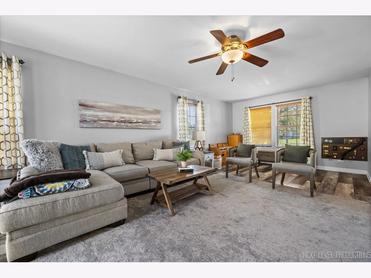 Charming farmhouse-style home in the heart of Ogden Falls boasts a full front porch elevation, inviting you to relax and enjoy the surroundings. Recently updated with a new stainless steel range, dishwasher, fridge, and microwave, the kitchen is both stylish and functional. Throughout the first floor, wide plank luxury vinyl flooring enhances both beauty and durability. The main floor powder room has been tastefully updated, and the home features two new commodes for added convenience. Ample shelving in the large pantry provides excellent storage solutions. This model includes a full basement, offering endless possibilities for customization, with a full bath rough-in already in place. Exterior maintenance is handled by the association, ensuring carefree living. Across the street, an open park-like common area adds to the charm. Conveniently located near shopping, restaurants, and with easy access to I88, this home offers both comfort and convenience.