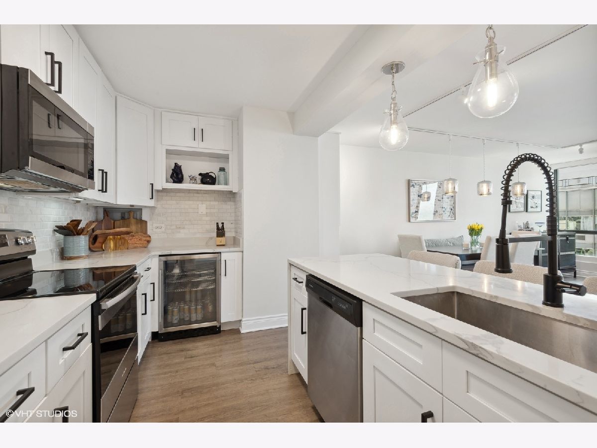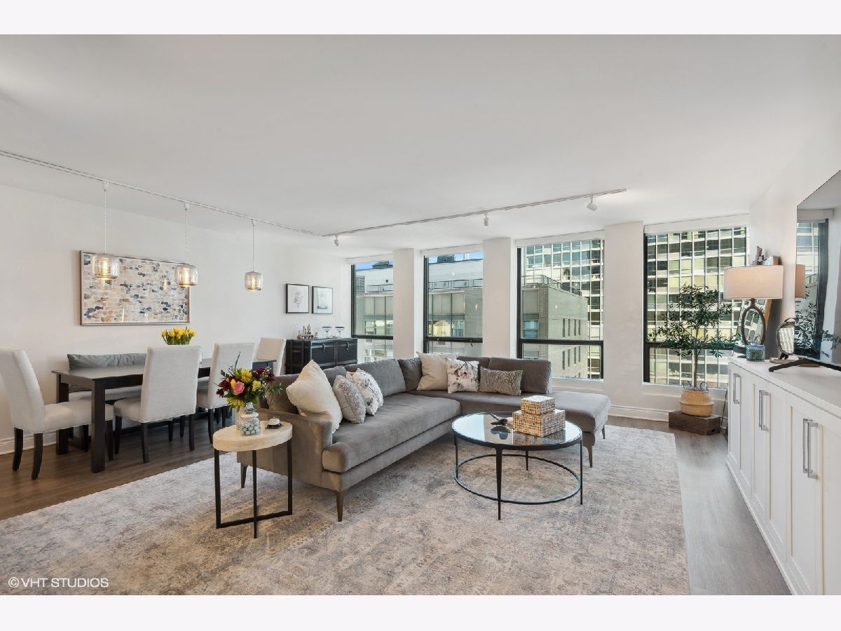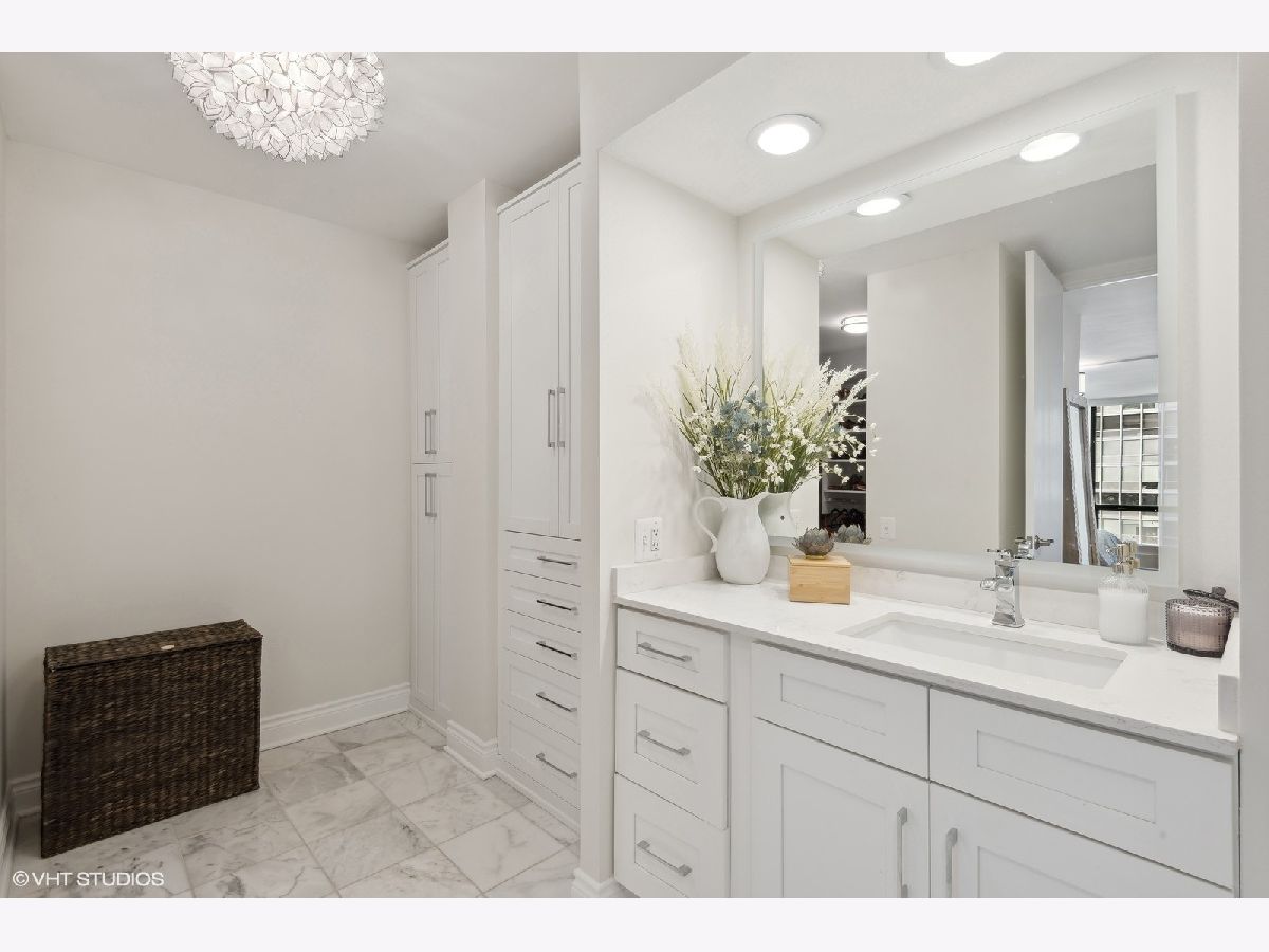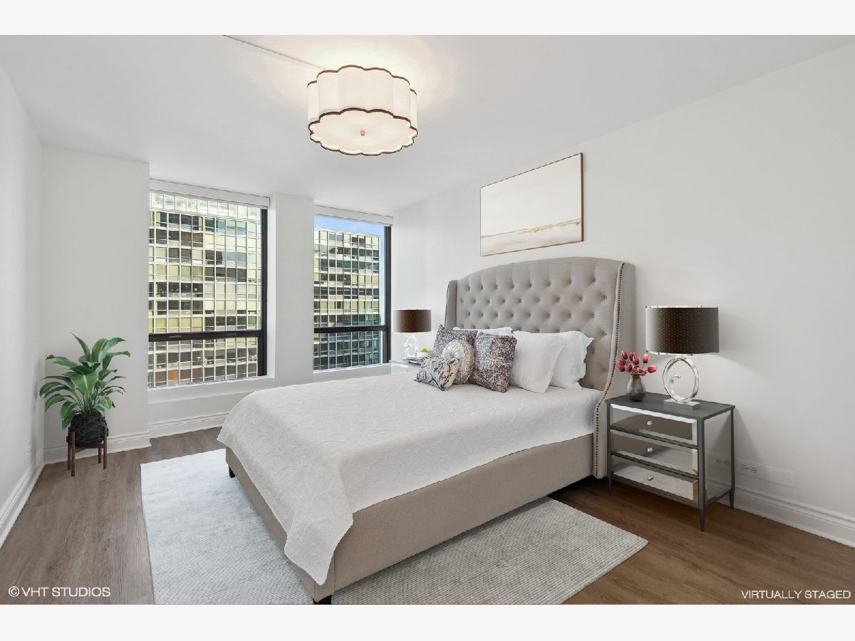 Welcome to 2504 at 260 E Chestnut, a serene retreat nestled in the heart of Streeterville. Embrace the quintessential Chicago lifestyle at its best within the vibrant community of Plaza on Dewitt, two blocks east of Michigan Avenue. Step into this thoughtfully renovated 2-bed, 2-bath condo, showcasing today's most sought-after finishes. Discover a wealth of bespoke storage solutions throughout, from the expansive walk-in pantry/coat closet to the custom dry bar in the dining area and the suite of built-in cabinets in the living room. The kitchen showcases sleek white cabinets with quiet close doors and drawers complemented by marble tile backsplash and quartz countertops. Premium appliances, including a separate wine fridge, elevate the culinary experience. Entertain in style within the expansive open-plan living and dining area. Enjoy partial lake views from every room. Floor-to-ceiling windows throughout are equipped with remote-controlled shades for ultimate privacy. Both bedrooms offer ample space and feature custom closet organization. The primary bathroom is designed for comfort and privacy. Inside the attached spacious dressing area, discover an array of drawers and shelving neatly tucked within cabinets, perfect for organizing folded clothes and essentials. The double-hanging walk-in closet provides convenient storage, adding to the functionality and sophistication of this exquisite space. This is truly a premium Streeterville condo with access to the best the city has to offer. Plaza on Dewitt is a full-amenity, smoke-free property including: 24-hour door staff, on site management and engineering, state-of-the-art fitness center, roof-top seasonal pool, separate sundeck and attached, heated rental parking.