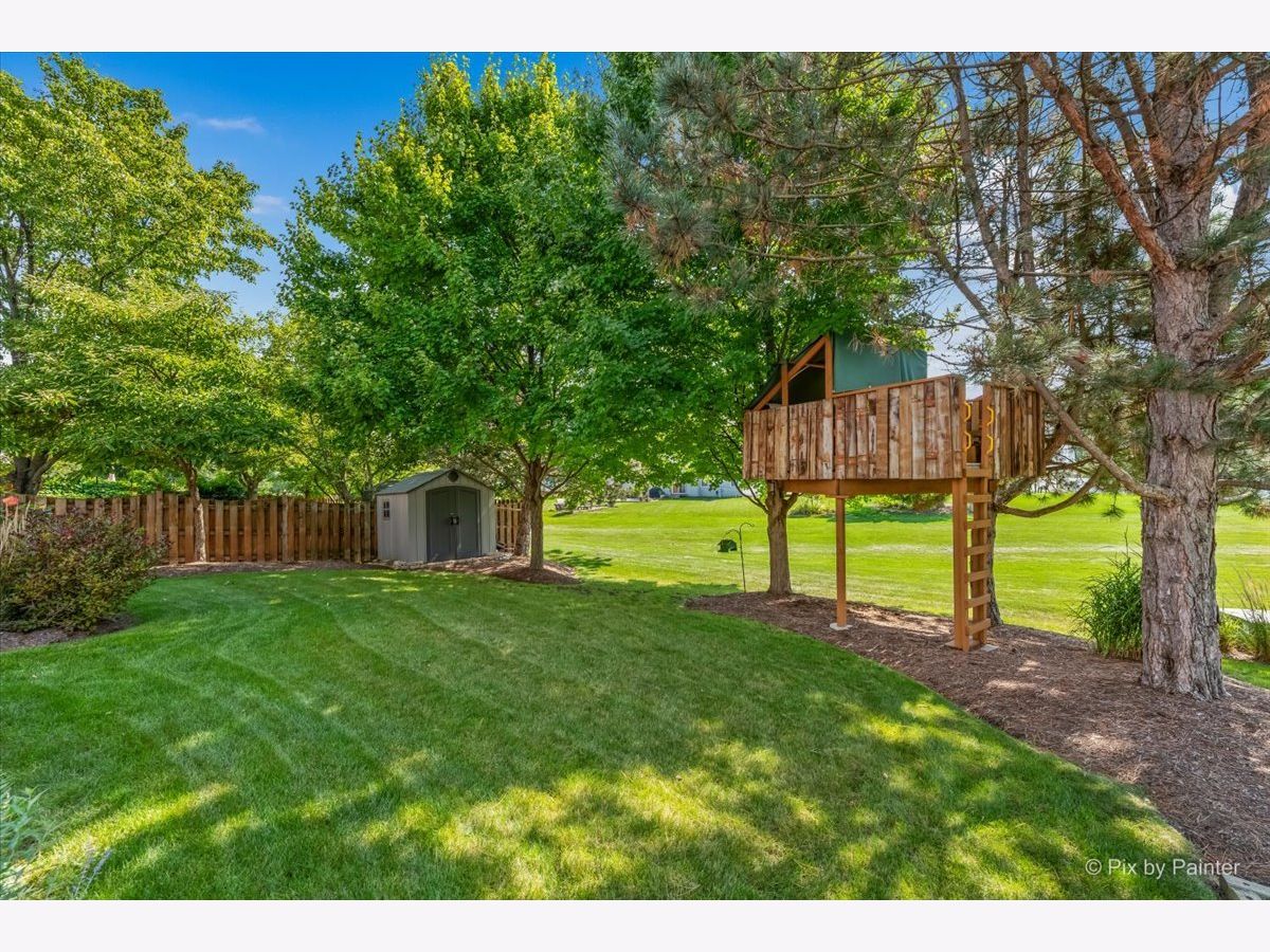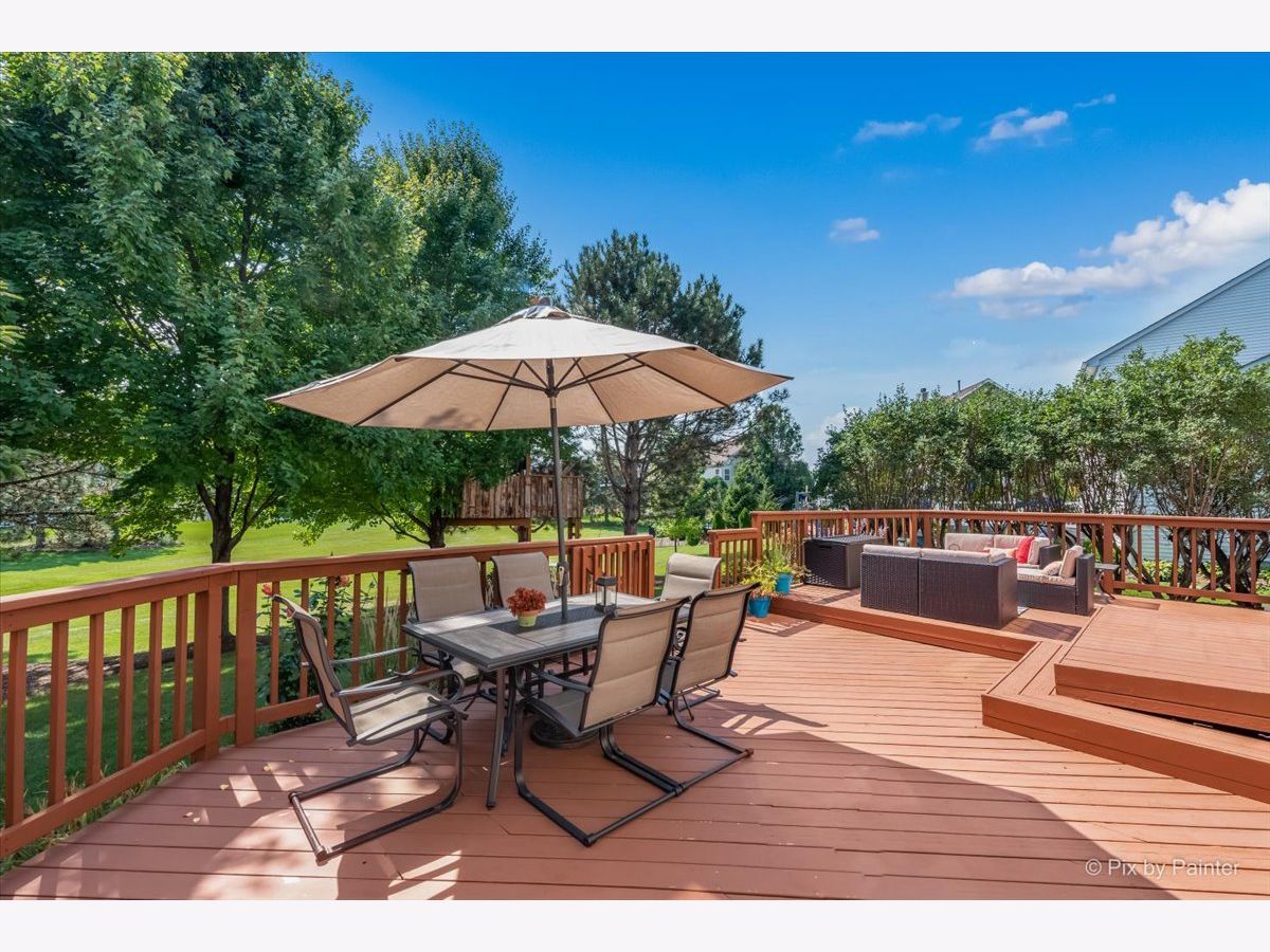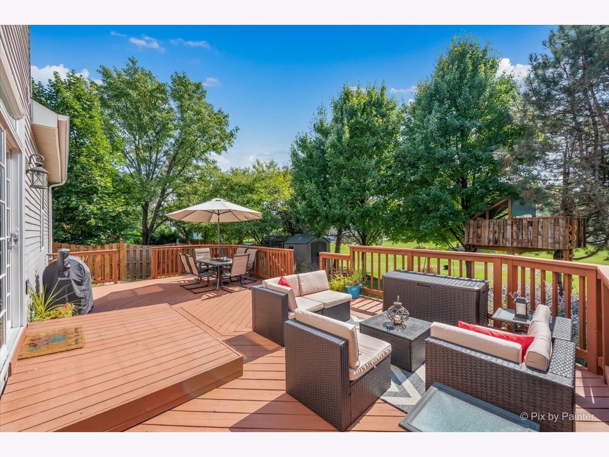 ***D#303 St. Charles Schools****On the highly coveted GREENBELT. "Castlerock" Floorplan in Cornerstone Lakes***4+1 Bedrooms + 3.5 Bathrooms + Larger 2.5 Car Garage + Full Finished Basement with bedroom and full bath+ Lots of Updates Throughout. Extend your backyard beyond your imagination on the greenbelt! SEE it to believe it. Front living and dining rooms featuring hardwood floors lead to a bright, updated eat-in kitchen with granite countertops, custom white cabinets and drawers, tile backsplash, butler's pantry, and stainless-steel appliances. Eating area opens onto the large deck through a custom Anderson Windows slider. Family room with gorgeous stone fireplace and hearth. Main level Bedroom/Office is tucked away. Rear staircase from the family room to the upper level! Enormous master suite retreat features sitting room with glass French doors, amazing luxury bath with dual vanity and 2 walk-in closets. 2 additional bedrooms and Hall Bath with dual vanity are upstairs. Full basement has a dry bar, two family room areas, a bedroom and full bathroom. Enjoy the outdoor living space of this home with mature landscaping and a greenbelt space that extends beyond the yard! Also includes a shed and tree house. The 2.5 car garage is deeper than the majority of garages in this area...large enough to store a boat! 9ft ceilings on main level, crown moulding first and second floor, lots of hardwood flooring, white doors and trim, custom window blinds and MORE! Value-Added Features: (2022) AC, Furnace, water heater; (2021) Brick pavers and retaining wall, powder room rehab, dishwasher; (2020) LR and DR hardwood, shed, treehouse, deck stained; (2019) Washer; (2018) Bar fridge, dryer.