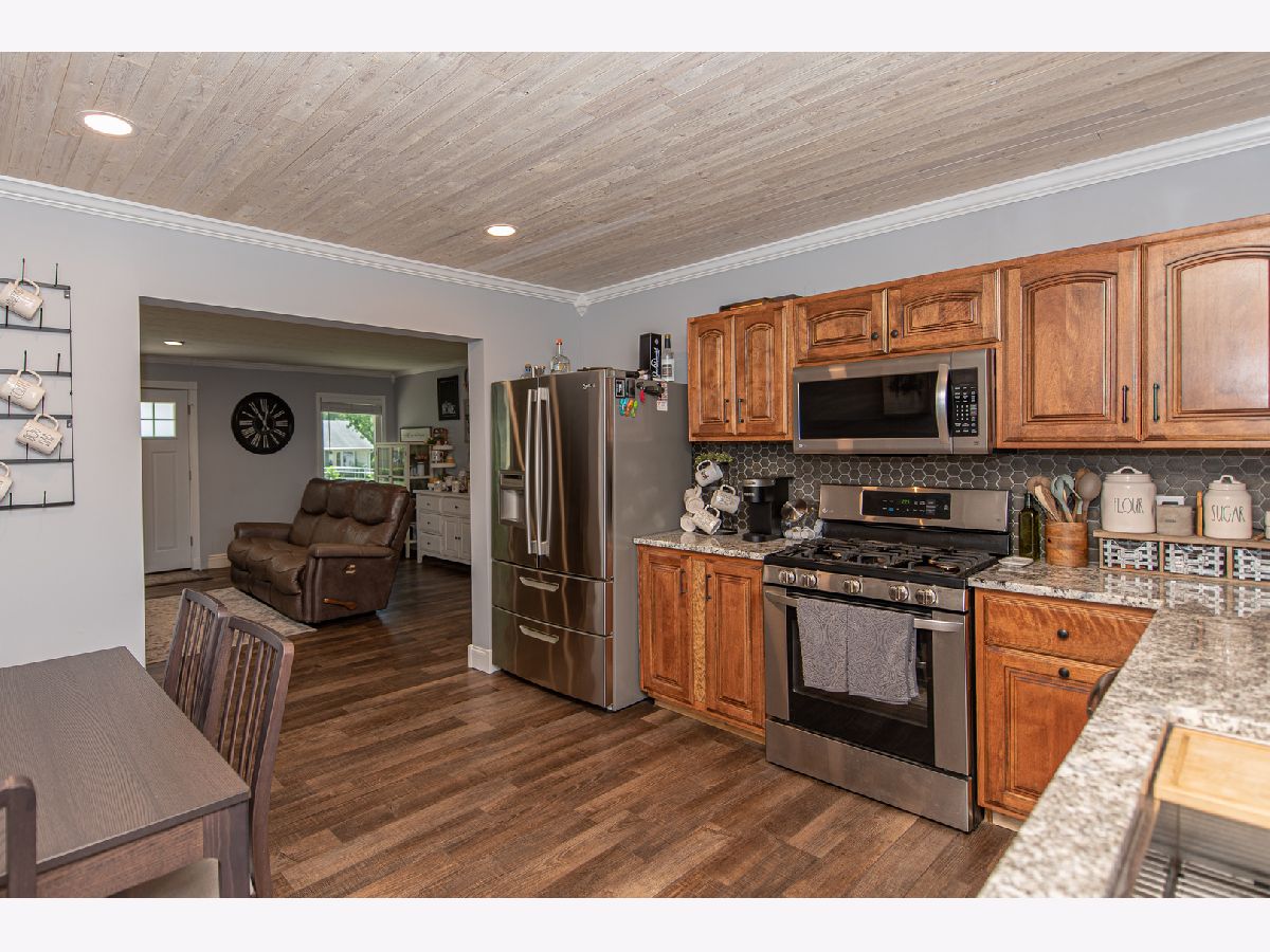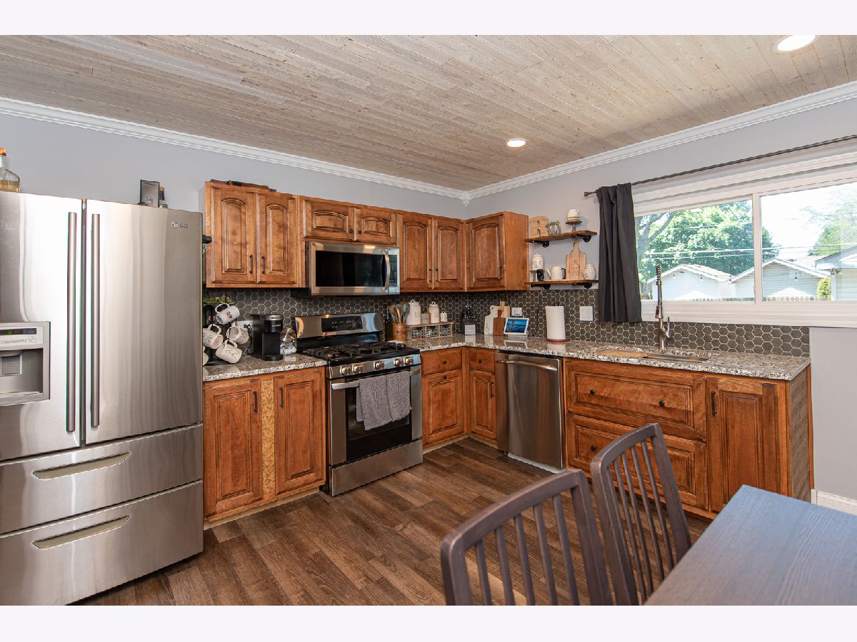 Welcome to your new home......Your new home offers you 3 bedrooms and 1 full bath. When you arrive you will see the exterior of your ALL BRICK ranch is freshly painted (2019) and you have brand new wooden shutters with a matching planter box. Your new home has GREAT curb appeal! You also have a NEW ROOF and gutters (2021)! Walk in the front door to see an open floor plan that flows perfectly for entertaining. The main level has brand new vinyl flooring, carpet, recessed lighting, base trim, crown molding through-out, exterior and interior doors, Custom cabinetry in the kitchen, granite countertops, backsplash, undermount stainless sink, ceiling fans/lighting and an all stainless steel appliance package as well as a fully renovated bathroom (2020) Your new home also provides you with NEW WINDOWS (2020), updated/upgraded electric panel (2020) sump pump on it's own breaker, HWH (2019) and FURNACE/AC (2019). Head down to the full basement that has been partially finished and waiting for your final touch! Outside you have a 6 foot privacy fence with solar lights to enclose your yard. (2019) You have a nice sized concrete patio, fire pit and a large above ground KOI pond. (The KOI fish will not stay) DID we mention you also have a 2.5 car detached garage. (PLEASE NOTE---Middle bedroom is currently being used as a dressing room. The wall that has the closet organizers will have the organizers removed and the holes will be patched) Everything has been done for you here. All you need to do is move in and enjoy. PLEASE NOTE RING DOORBELL STAYS, BATHROOM AND KITCHEN SHELVES WILL STAY. THE ALARM SYSTEM AND SHELVES IN THE FAMILY ROOM DO NOT STAY PLEASE NOTE.