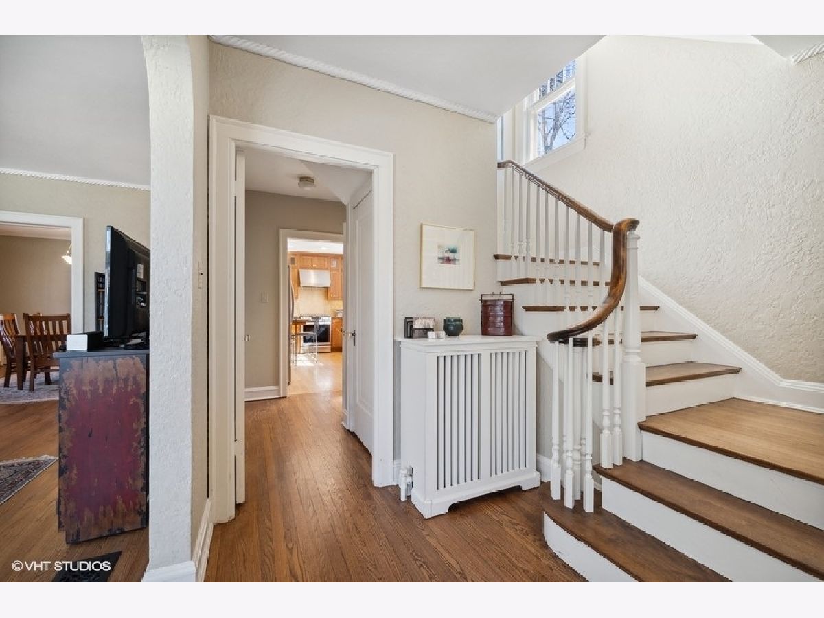 Warm, inviting and meticulously maintained describe this brick Georgian located in coveted Northwest Evanston! Enter through the foyer and gracious arches into the light filled spacious living room with wood burning fireplace, beautiful crown moldings and bay window. The formal dining room, bursting with character, is perfect for casual gatherings or elaborate large dinner parties! You are guided into the heart of the home, a remodeled eat in kitchen, with stainless, Caesar stone countertops and solid wood cabinets, a cook's delight. Adjacent to the kitchen is a cozy family room that looks out to the screened in porch overlooking the professionally landscaped lush back yard. This home has a perfect circular flow allowing for ease of movement for today's busy lifestyle. Hardwood flooring throughout the first and second floors. Upstairs you will find 4 generous sized bedrooms including the primary bedroom suite and separate bath. The basement is fully finished with a laundry room, recreation room and abundant storage. A fully fenced back yard complete with brick paver patio perfect for summer barbeques or just to kick back and relax. A one car attached garage with carriage style doors complete the home. The block has an annual block party and just a short walk to Lincolnwood school. Nothing to do but move in!