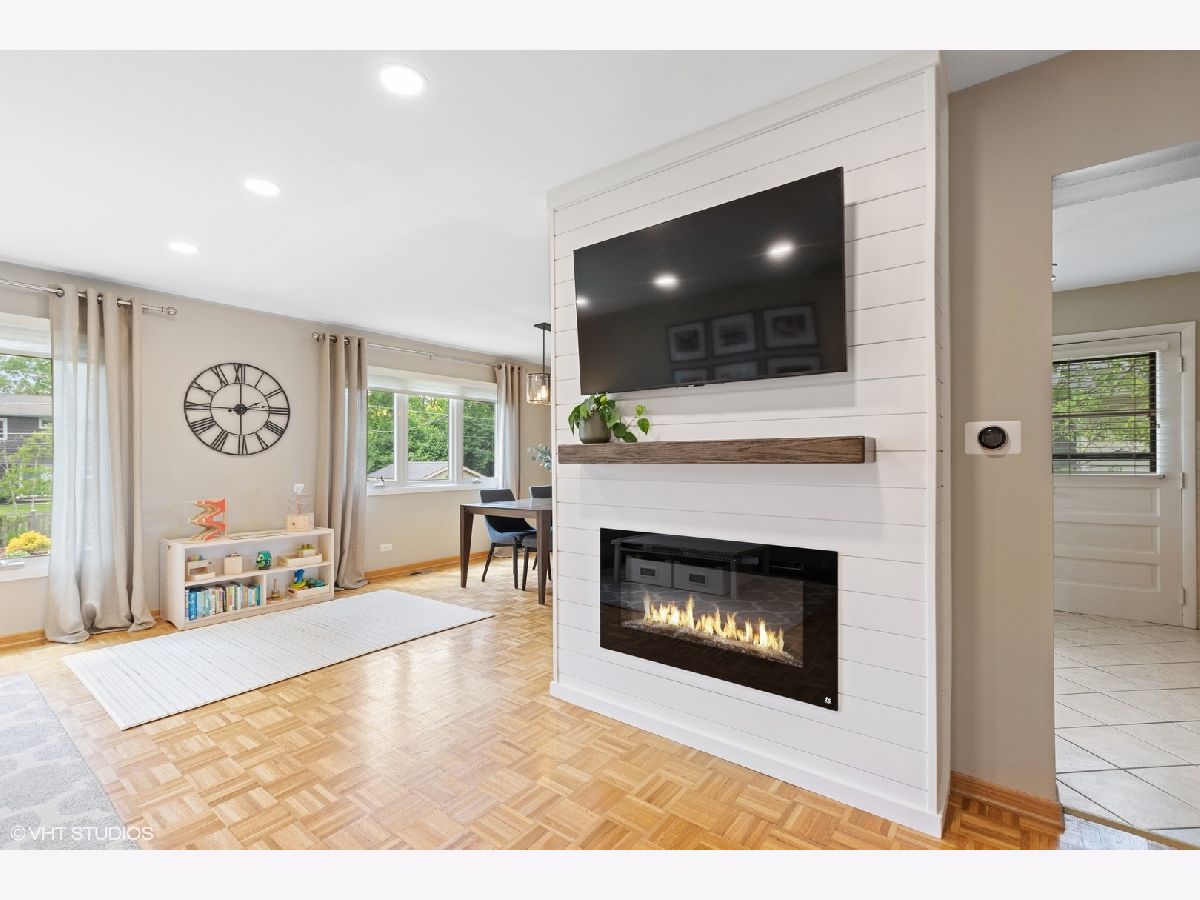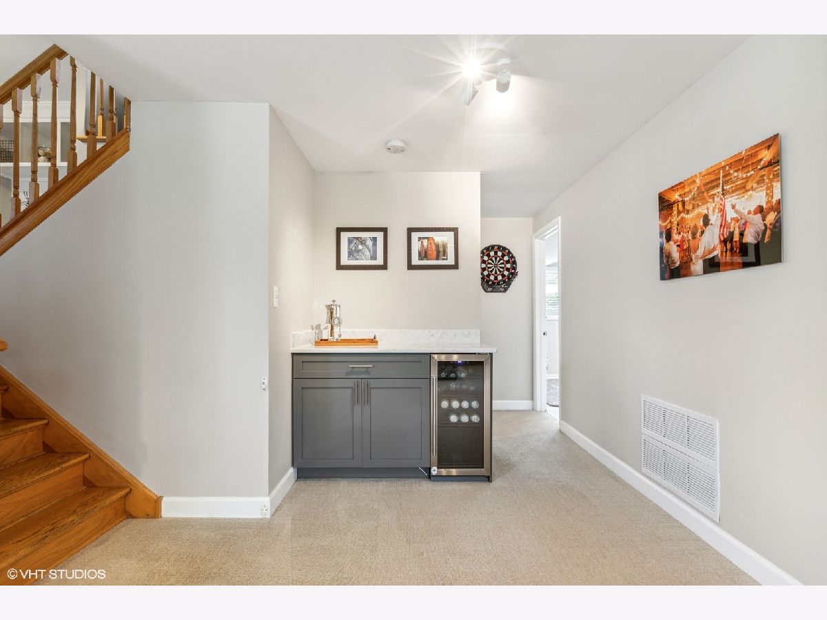 Beautifully designed raised ranch flooded with natural light and Pottery Barn feels in Districts 25/214! The welcoming foyer/mudroom is so functional for modern day living. Up a few stairs you will love the living room with new built in electric fireplace & oversized windows overlooking expansive backyard, open concept to the separate dining area with table space and breakfast bar, the well planned kitchen has newer stainless steel appliances, tons of storage and access to a deck perfect for morning coffee and grilling, lastly on this level a huge updated full bath and 3 generous sized bedrooms. Lower level is amazing, the spacious family room is highlighted with built in shelving, a living & play area, & new bar cabinet w/wine fridge. Also, a 2nd updated full bath, 4th bedroom/office ideal for work from home scenario, bonus/play room and utility. The 2 car attached garage seals he deal! Improvements include: A/C, Furnace & Hot Water Heater 2015, front porch 2022, fireplace 2023, playset 2022, basement 2017, foyer 2017, electrical panel 200 amps 2015, backyard landscaping and French drain 2021. The backyard oasis includes patio, playset, shed...like you own private park. This one is a "10"!