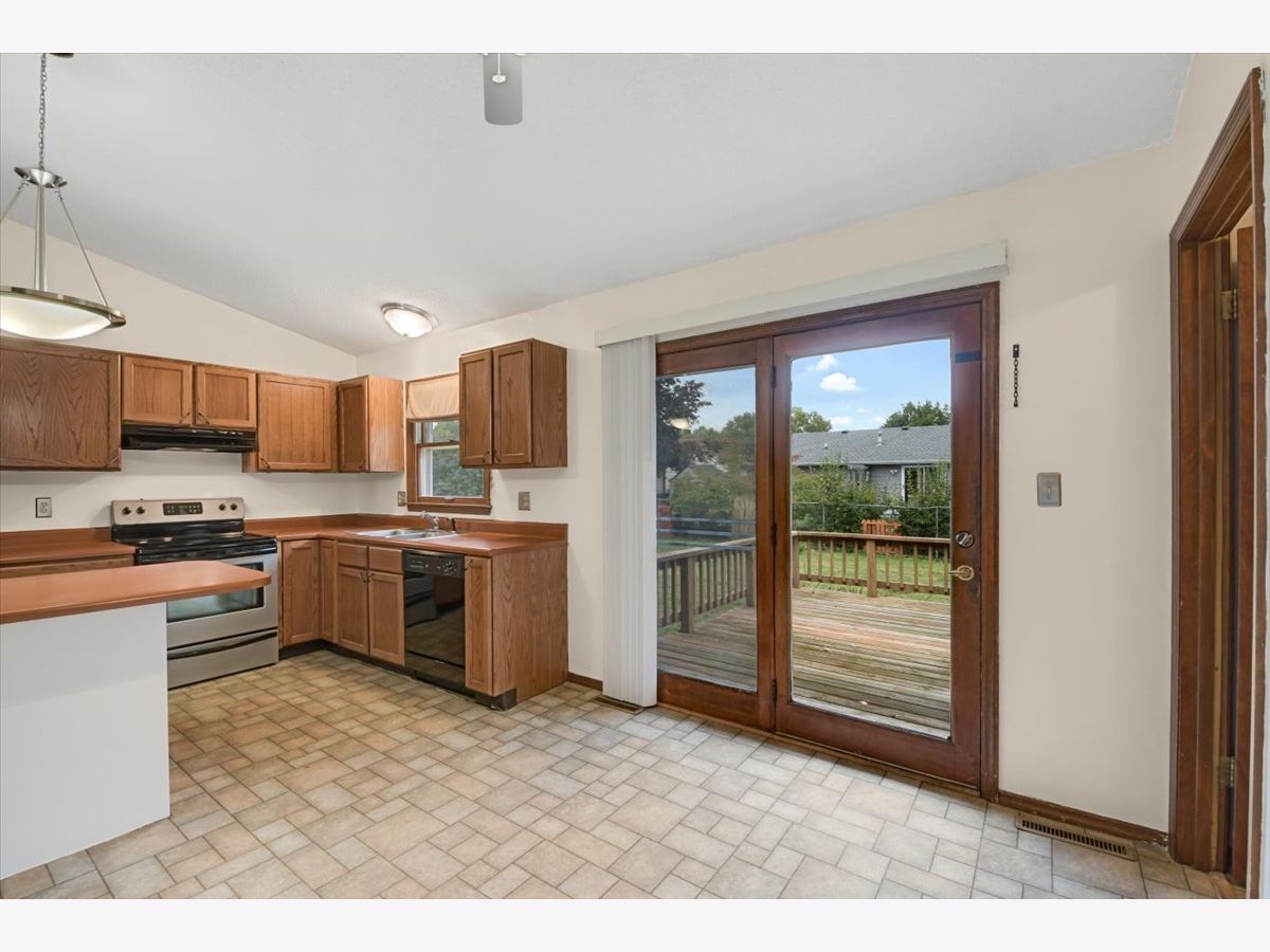 3 Bedrooms and 2 Full bathrooms in Stratford Park for under $150K?! This well maintained Ranch home features cathedral ceilings and a wood burning fireplace in the living room. The eat-in kitchen has space for a dining set and additional barstool seating at the peninsula. South facing sliding door off the kitchen brings in tons of natural light and leads to a large deck overlooking the fenced in yard. Both bathrooms have been updated and the roof is less than 10 years old. Mud room off the garage offers built in cabinets for storage and a washer & dryer new in 2019. Attached garage is large enough for 2 vehicles plus additional workshop/storage space.