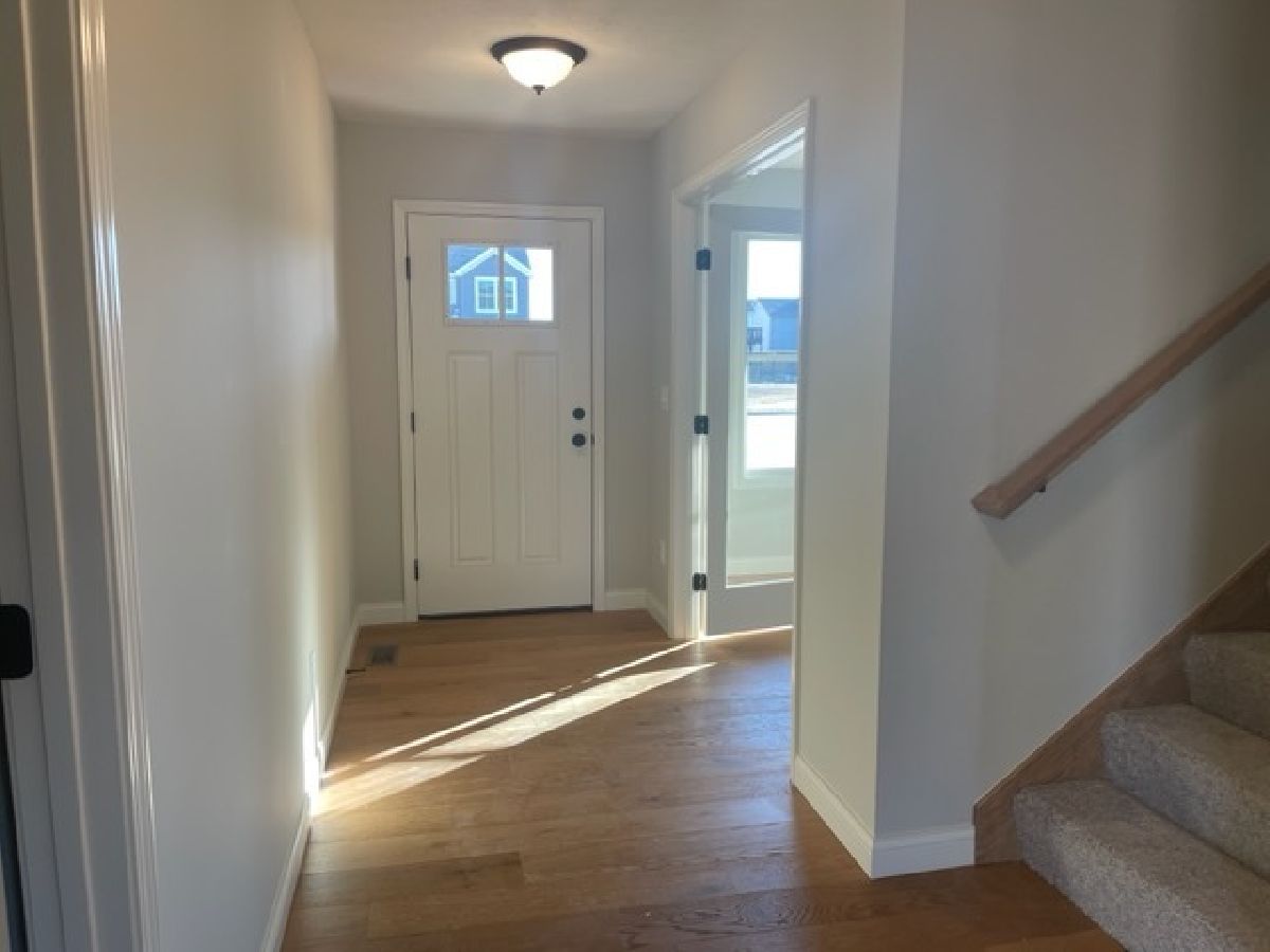 New construction 2 Story home with 4 bedrooms and 2 full bathrooms. Pearl (white) cabinets in kitchen and bathrooms, quartz kitchen countertops, stainless steel appliances and hardwood flooring throughout the main level. (Carpet in bedrooms/tile in bathrooms) Plan features vaulted ceiling in master and open kitchen to family room. Large dining area in kitchen as well as an island. Front flex room can be an office or dining room, ect. Back hall drop zone will have a locker built in as well as a walk in pantry. Lookout basement windows. Basement is unfinished. Large master closet and double vanity in the master bathroom.** Agent Interest