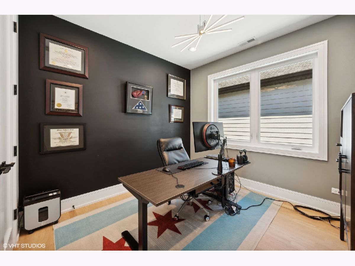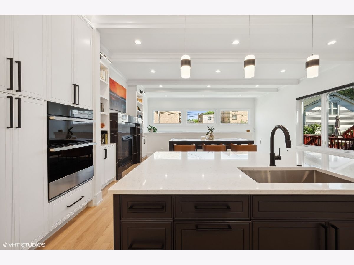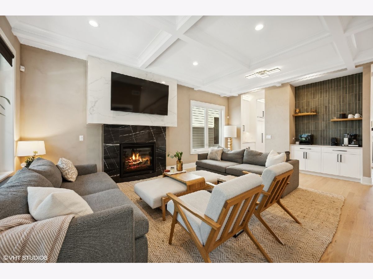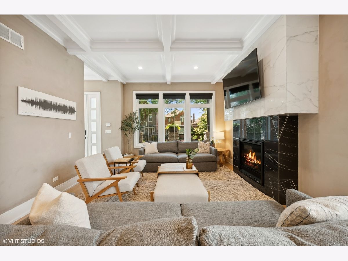 Once in a lifetime opportunity for an assumable mortgage at 3.125%! Nestled on a cozy, tree-lined, one-way street, on an oversized 30x149 lot in charming Lincoln Square, your newer construction 5 bed (4 up), 3.5 bath dream home awaits. From the moment you arrive, the inviting curb appeal and expansive covered front porch will make you feel right at home. Step inside the gracious foyer and be greeted by the warmth of oak hardwood flooring, an open floor plan flooded with natural light, and elegant coffered ceilings. The open concept living and dining area boasts a cozy gas fireplace, beautifully tiled wet bar, adjacent convenient powder room, and a flexible layout, perfect for both entertaining and everyday living. Pass through your gorgeous butler's pantry into your entertainer's kitchen, which is a chef's dream, featuring soft-close cabinetry, quartz countertops, a stainless JennAir appliance package, a spacious waterfall island with extensive bar seating and storage underneath, and a walk-in pantry. The adjoining family room with beamed ceilings and a second striking fireplace offers a comfortable space for relaxation, while the rear mudroom with built-ins adds convenience to daily life. Upstairs, you'll find an ideal floor plan with 4 bedrooms, 2 full baths, and side-by-side laundry. You'll look forward to coming home to your primary sanctuary, which features two fully built-out walk-in closets and a luxurious ensuite bathroom. Your true spa primary bath is a designer's dream and features a striking skylight, heated floors, a deep soaker tub, dual vanity, and an oversized frameless glass shower with multiple shower heads. As you make your way down to your finished lower level, you'll find cozy heated floors throughout, a large recreation room with a wet bar, the 5th bedroom, full bath, and additional laundry hookup, making it a perfect space for an in-law suite. Additionally, built-ins in nearly every closet and custom window treatments are thoughtful touches that have been added for your enjoyment. Outside, the spacious, fully enclosed backyard is the perfect setting for grilling, relaxing around the fire pit, and letting your beloved pup sunbathe. Your detached two-and-a-half-car garage also features a party door, providing ample space for outdoor enjoyment and storage. Perfectly situated in vibrant Lincoln Square, this home offers the best of both worlds - the coziness of a neighborhood and walkable proximity to an array of shops, restaurants, neighborhood festivals, farmers markets, and just up the block, Budlong Elementary. With the perfect blend of luxury, comfort, and convenience, don't wait to make this exceptional home your own.
