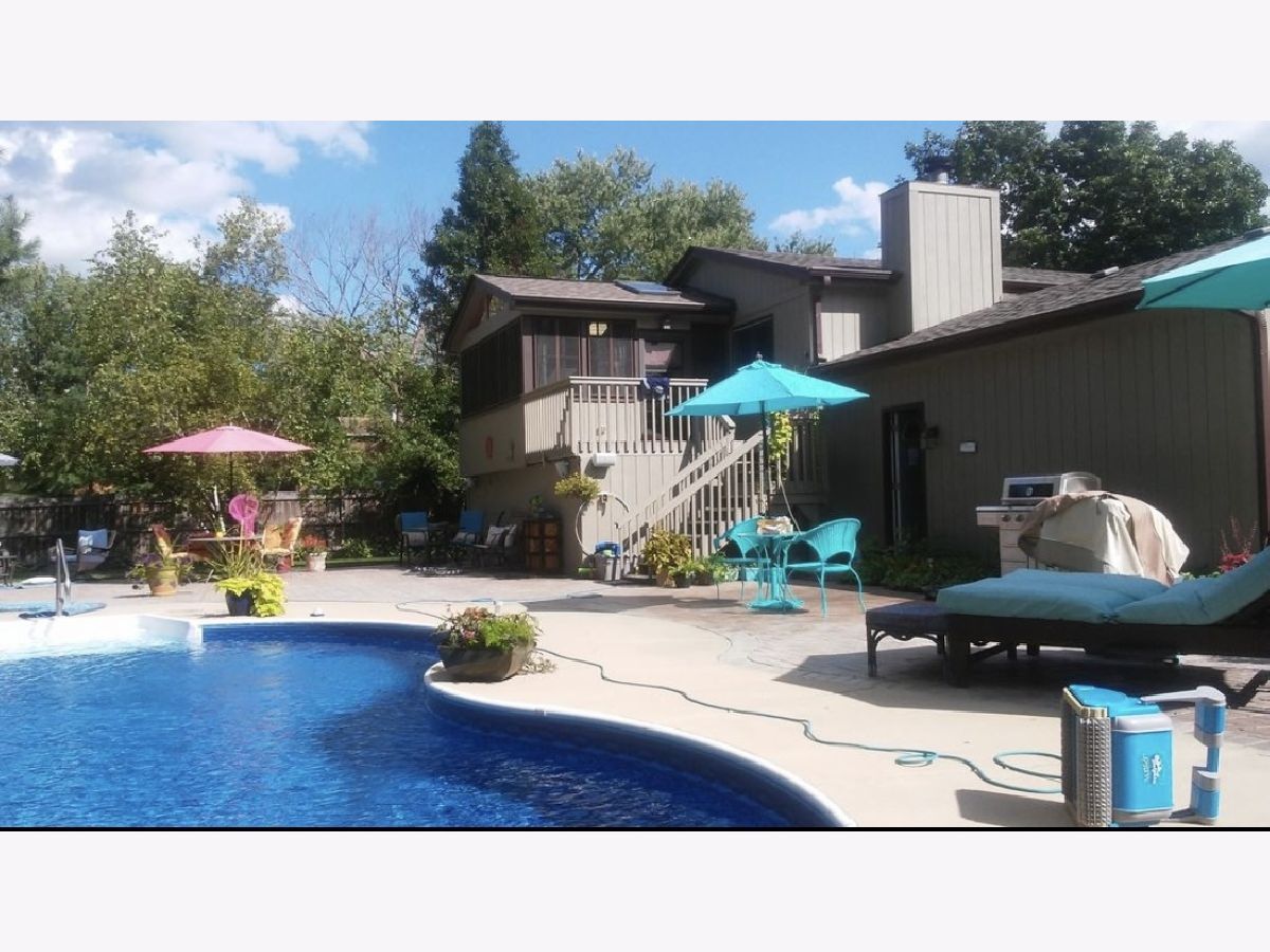 Home is located on 4 lots, between 0.50-0.99 acres total. Two-car attached garage PLUS additional single car detached garage. New furnace, new fridge, vaulted ceilings. Gorgeous family room with stone fireplace. Newer water softener, water heater and sump pump. Driveway has additional paved cut out for two extra driveway parking spaces. New roof, gutters and downspouts in 2019. Newer Pella sliding door leads to cedar sunroom addition that overlooks backyard sanctuary. Fully fenced in-ground swimming pool (new pump, new heater, new liner, new electrical in 2019, over 1,200 square feet of brick pavers around the pool deck. Large side yard in addition to the fenced in portion of the property. This house is a must-see. Abundance of light through newer windows installed approximately 6 years ago. Sellers are in the process of packing and moving, so please excuse any items out of place.
