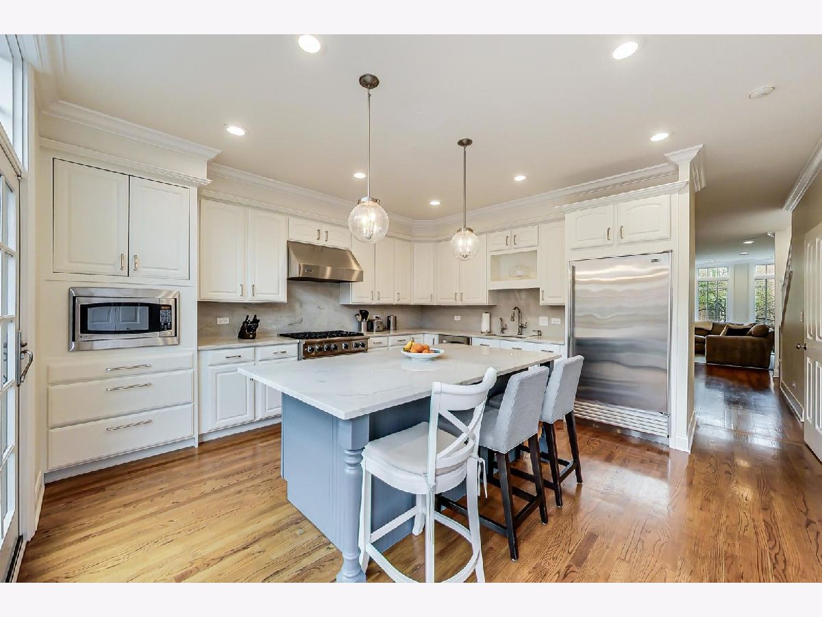 Lincoln Park's highly desirable Embassy club! European-style rowhome with attached 2 car garage-one of the largest floorplans in the complex. All new windows throughout; lives like a single-family. Tucked away within the interior cobblestone streets. All brick/masonry/limestone construction with copper gutters. Custom built-ins in the first-floor family room make for a perfect office space. Updated chef's white kitchen with Viking range, quartzite countertops and backsplash, Sub-Zero refrigerator, pantry, half bath, and side by side laundry. New French doors lead to a large private terrace (19x9) perfect for grilling, dining, gardening, and relaxation. Living and dining room with crown molding, gas fireplace and surround sound, Southern exposure with pretty treetop views. New marble spa-like primary bath with dual vanities, soaking tub with separate shower. Newer carpet throughout. Heated and cooled bonus room off garage which could be used for storage, cedar closet, exercise room, or wine cellar. Fee-simple ownership with low assessments! One block to Wrightwood Park, desirable Southport, and easy expressway access.