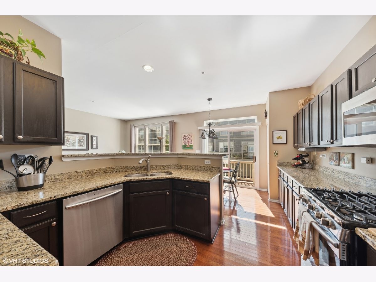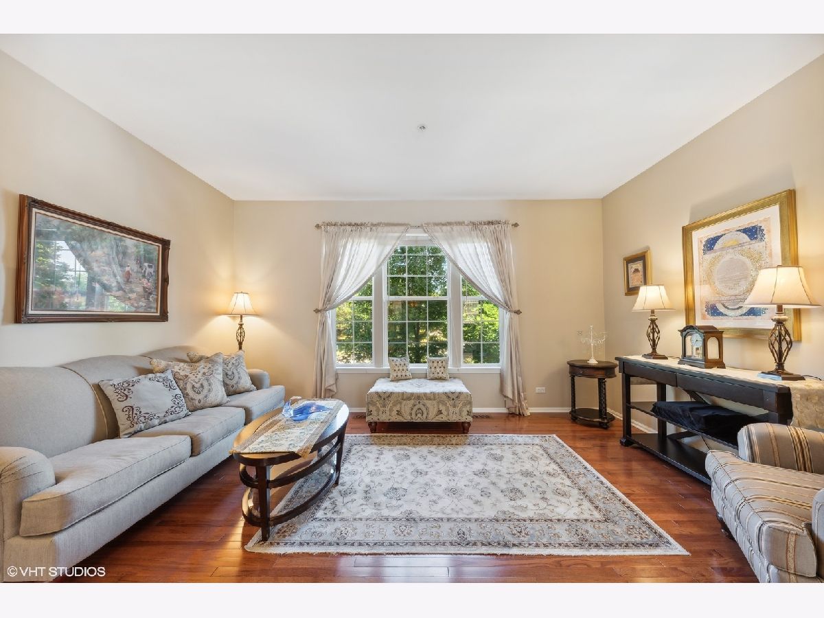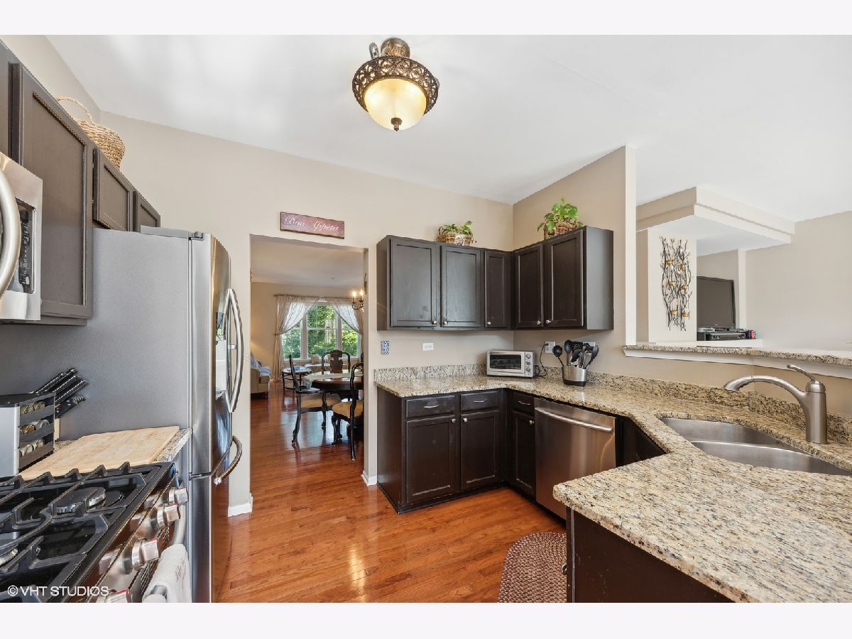 This beautiful townhome is the largest model in highly sought after Greenwood Place. With 4 beds, 2 full & 2 half baths and a 2.5 car attached garage, it lives like a single family home but without the maintenance. The bright living/dining room combo welcome you with large windows overlooking the pond. The updated kitchen has new granite counters, stainless steel appliances, an eat-in area, separate pantry, and opens to the cozy family room with fireplace. Main level features newer Brazilian mesquite hardwood floors throughout. Upstairs find the huge primary suite with vaulted ceiling, walk-in closet and attached bath with soaking tub, separate shower and dual vanity. The laundry room is conveniently located on the second floor, plus find two more large bedrooms and the second full bath. The lower level has a 4th bedroom and half bath. Off the kitchen is your private deck perfect for grilling and relaxing. Loads of storage between the oversized garage and abundance of closet space. Top rated Greenbrier/Thomas/Buffalo Grove High School. Located close to everything including downtown Arlington Heights, shopping, 53, and walking distance to elementary school!