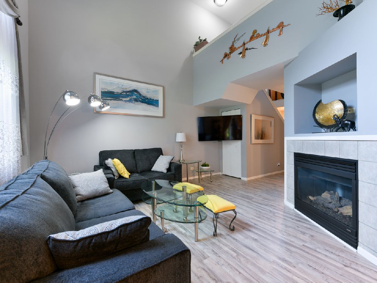 Wonderful!!! Well-kept 3 bedroom and 2.5 bathroom townhouse with a 2 car garage. Functional open layout giving a greater sense of space. Big kitchen with lots of cabinets and granite counter top. Modern, two-story living room with an elegant fireplace. Dining room with space for a large table and sliding doors leading to a private patio with beautiful views of green area and trees. Second floor: 3 spacious bedrooms and 2 bathrooms. Master bedroom suite with walk in closet and full bath. Washer and dryer in the unit. Newer floor on the main level. Newer furnace, A/C and water heater. Newer roof. Low assessment. Quiet cul-de-sac location, convenient to all amenities: shopping, restaurants, expressway. A great place to call home!