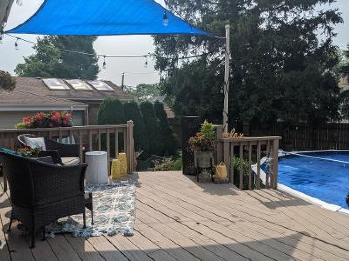 This home has it all! 4 bedrooms, 2.5 baths, with hardwood floors throughout. Bright kitchen with prep island, bench seating with storage. Family room with gas fireplace (gas capped off) has French doors leading to backyard patio. Basement rec room has 22ft of storage along with additional storage under the stairs. Deck off kitchen leads to 24' above ground pool. All pool equipment stays including heater and chemicals. Beautifully landscaped both front and back with lots pf perennials. Excellent location. Bring your pickiest buyers, they won't be disappointed.