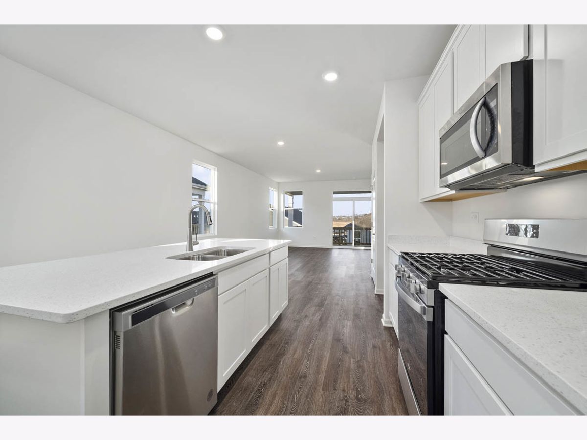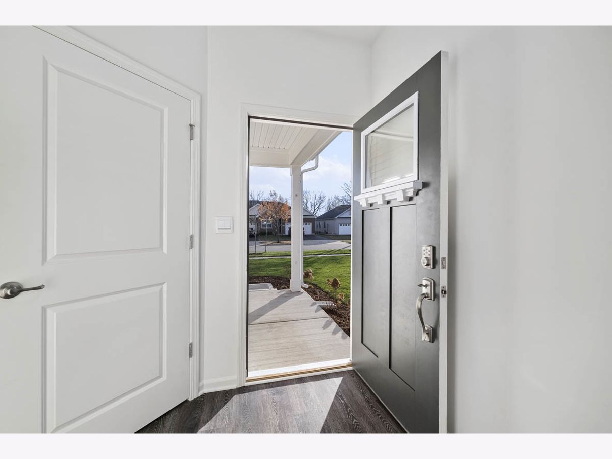 Envision yourself at 2611 Lenore Lane in Algonquin, Illinois, a beautiful new home in the Grand Reserve community. This ranch home will be ready for an end of year move-in! Scenic homesite includes fully sodded yard with a front porch and covered back patio. This Logan plan offers 1,288 square feet of living space with 2 bedrooms, 2 baths, and 9-foot ceilings. When you first enter the home, you are welcomed into the foyer with a coat closet and laundry room. Down the hall, you will walk into the open concept kitchen and great room. The kitchen layout includes a large island with an overhang for stools, 42-inch designer white cabinetry with crown molding and soft close drawers. Tucked away behind the kitchen, is the secondary bedroom and secondary bath. Additionally, the kitchen features a walk-in pantry, modern stainless-steel appliances, quartz countertops, and easy-to-maintain luxury vinyl plank flooring. Enjoy your private get away with your spacious primary bedroom and en suite bathroom with a raised height dual sink, quartz top vanity, and walk-in seated shower with ceramic tile walls and clear glass shower doors. The location can't be beat, within proximity to all of the everyday conveniences that Randall Road has to offer! Shopping, dining, and entertainment are all within minutes. If you enjoy walking, take a stroll over to the Algonquin Public Library or enjoy a scenic walk on the stunning nature preserve walking trails! All Chicago homes include our America's Smart Home Technology which allows you to monitor and control your home from the comfort of your sofa or from 500 miles away and connects to your home with your smartphone, tablet or computer. Home life can be hands-free. It's never been easier to settle into new routine. Set the scene with your voice, from your phone, through the Qolsys panel which you can schedule it and forget it. Your home will always await you with your personalized settings. Our priority is to make sure you have the right smart home system to grow with you. Our homes speak to Bluetooth, Wi-Fi, Z-Wave and cellular devices so you can sync with almost any smart device. Builder Warranty 1-2-10. Exterior/interior photos of similar home, actual home as built may vary.