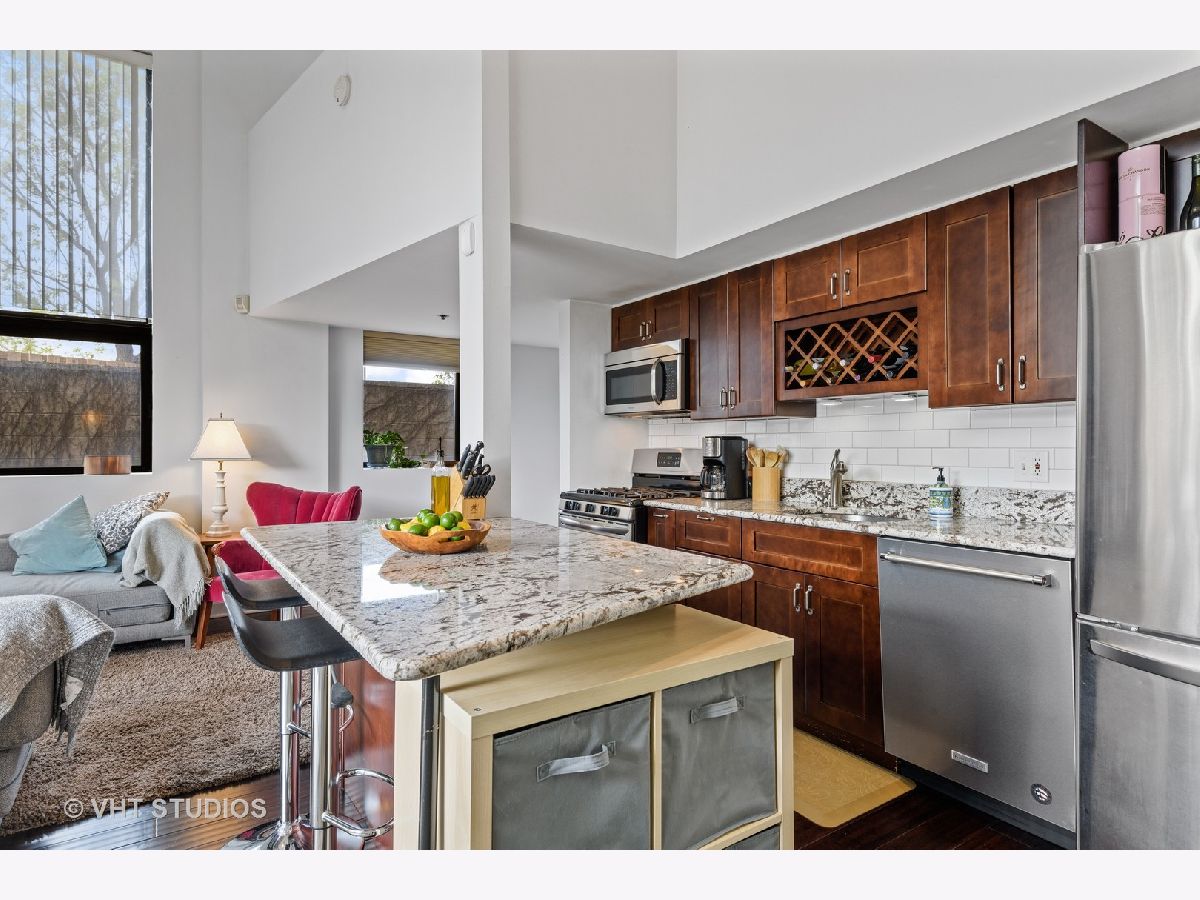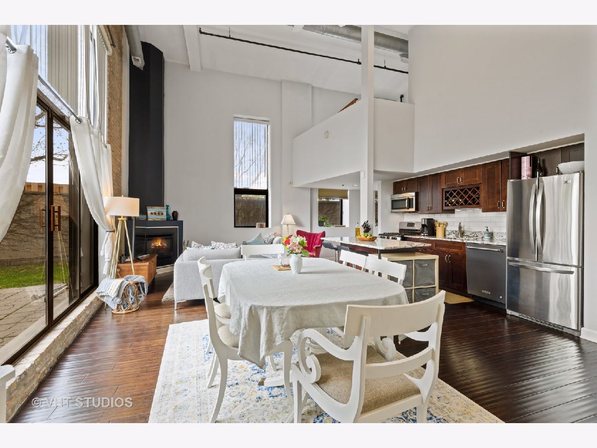 Are you looking for some substantial outdoor space for your next home? Then come take a look at this one-of-a-kind duplex-up loft with a giant patio AND an enclosed side yard that's perfect as a dog run, garden or a game of bags! This incredible Lincoln Park 1BR/1.5BA home boasts exposed brick, dramatic 18 foot ceilings with 14 foot high west facing windows along with multiple north facing windows that gives this home an extremely bright and airy feel. The expansive open floorplan easily offers space for a generous living & dining area. The nicely appointed granite & stainless steel kitchen features an eat-in island, soft-close cabinetry and a subway tiled backsplash. As you walk upstairs, you'll be greeted with a large bedroom suite that can accommodate a king-sized bed with multiple organized closets and a nicely appointed bathroom with granite and subway tile. Kiss your storage unit goodbye with the insane amount of storage that includes a coat closet, a hall closet, a laundry room and an additional utility closet. With the gas fireplace, in-unit washer & dryer, gas forced heat/central air, an all-important built-in office desk, and a gated parking space, this home will stop you in your tracks as you've finally found THE ONE! The ideal location that's at the midpoint of Lincoln Park, Bucktown & Logan Square puts you close to many big box shopping, grocery stores, Target, Costco, Midtown Athletic Club, etc. Extremely easy highway access gets you where you need to go quickly!