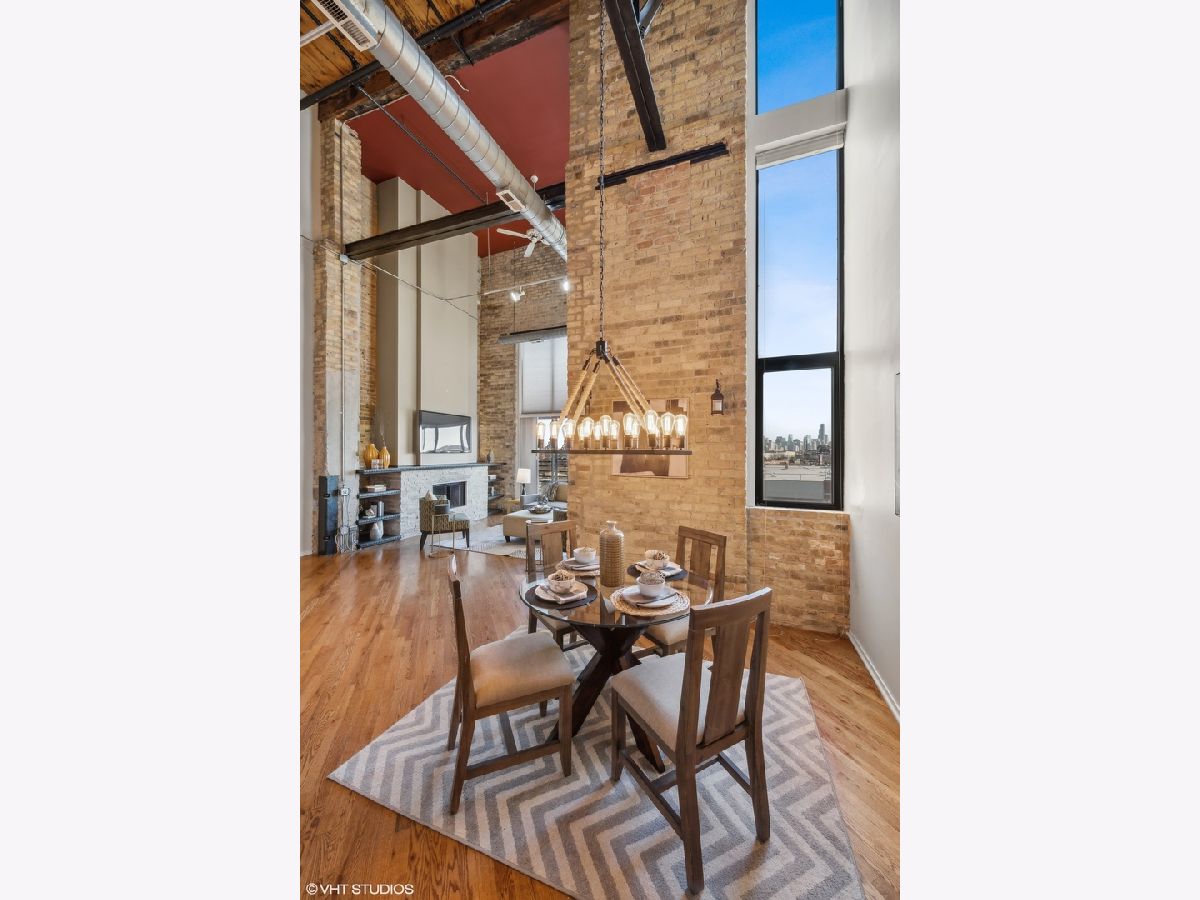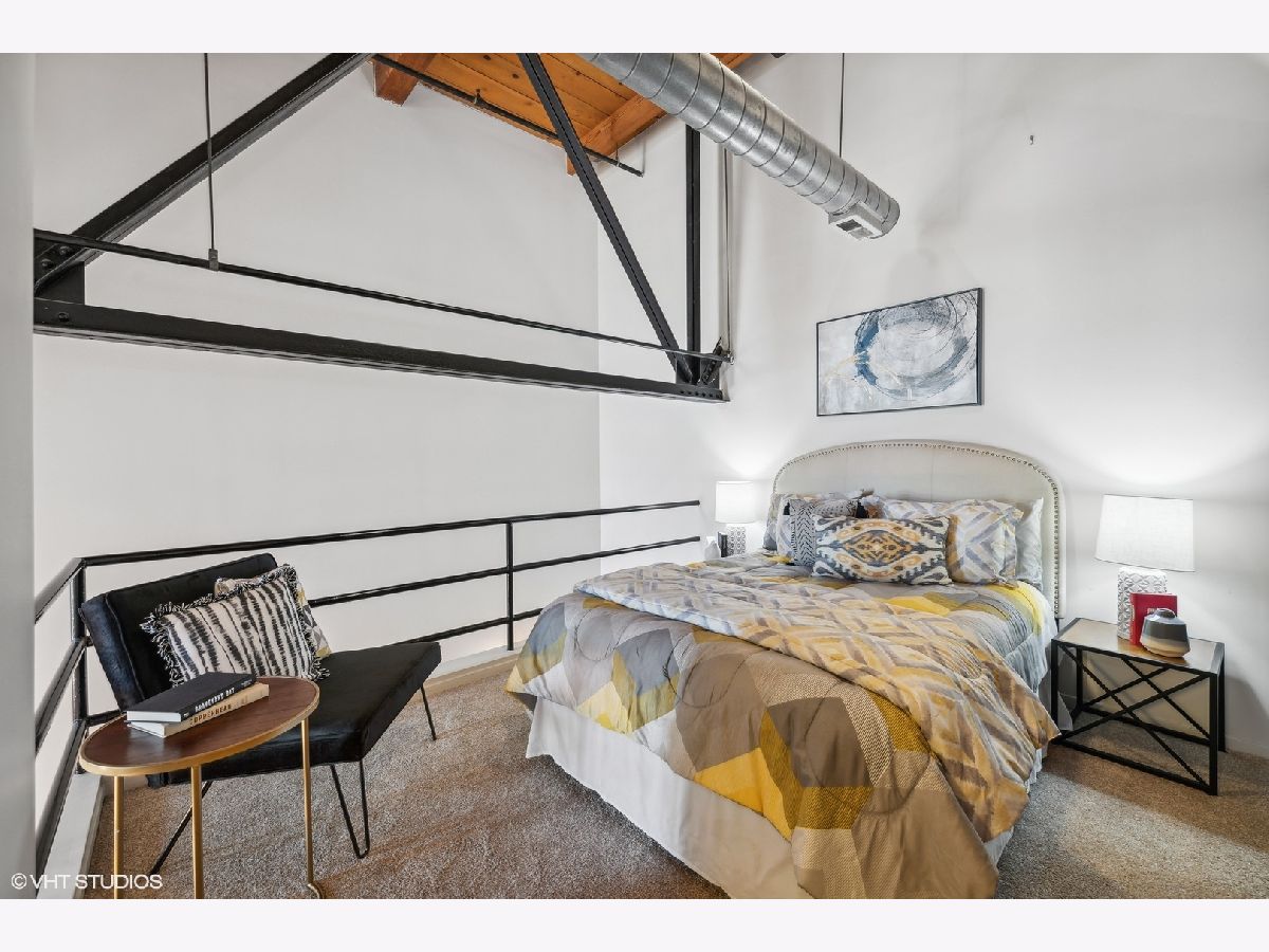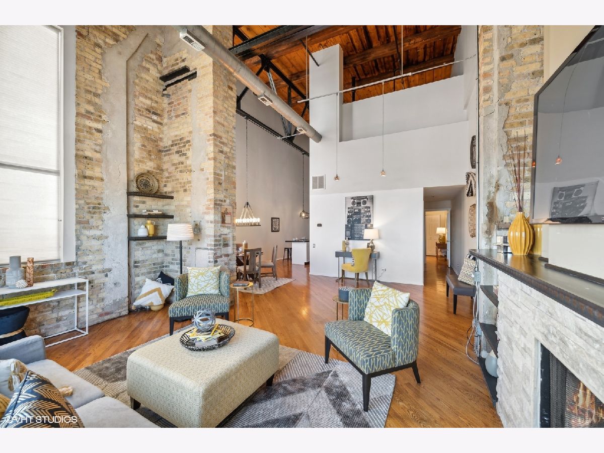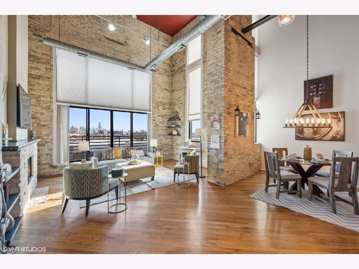 TRUE TIMBER LOFT at Riverbend Lofts in Lincoln Park's Clybourn Corridor. This 2 BR 2 BA duplex-up PENTHOUSE unit has one of the largest layouts in the building and boasts soaring, dramatic 24' ceilings, and floor to ceiling South facing Living Room windows! Surrounding the unit are exposed brick walls, exposed duct work, trusses and wood beams. Open kitchen with separate dining area/living room with wood burning fireplace. One Bed and full remodeled Bathroom on main level, and Primary Suite with 2nd full Bathroom and new carpeting on upper level. Floors refinished and freshly painted within last few years. Private deck with amazing South facing views of the Chicago skyline. Outdoor Parking included(Parking assessment is $13.59/month). Set back 300' off of Clybourn (Rear Building) it's a super convenient location walkable to many amenities including Riverpoint Center, Costco, Sephora, Menards + and close proximity to bus, train, and expressway.