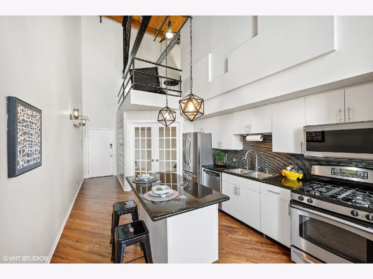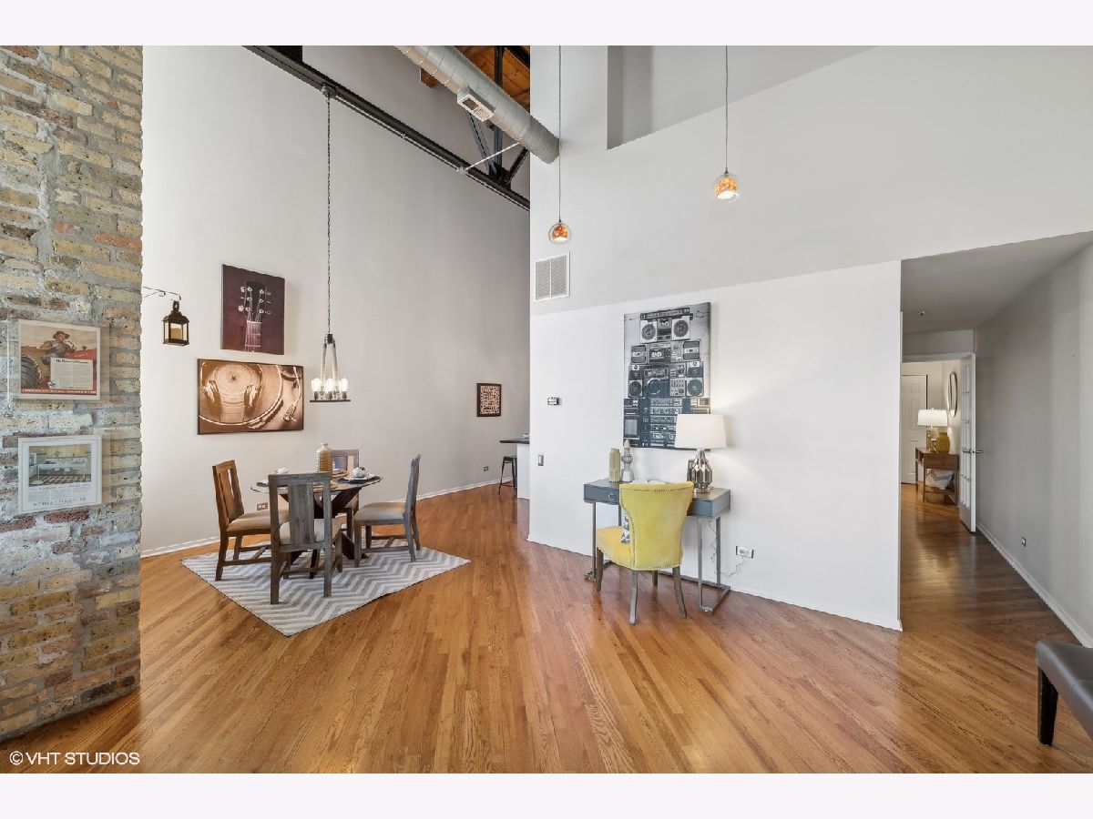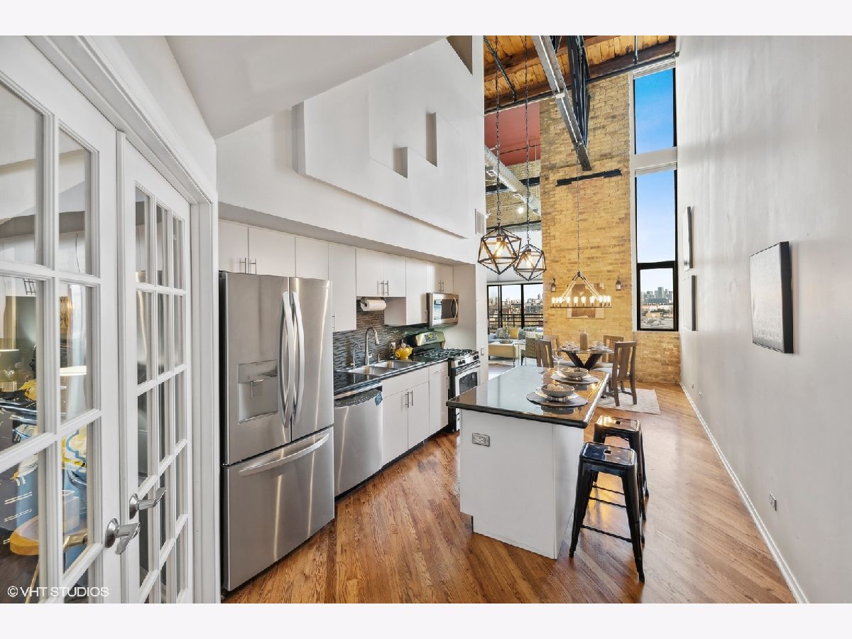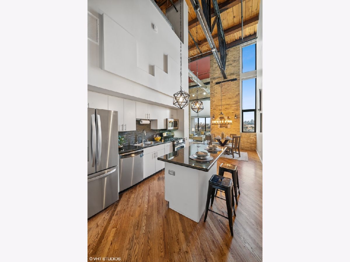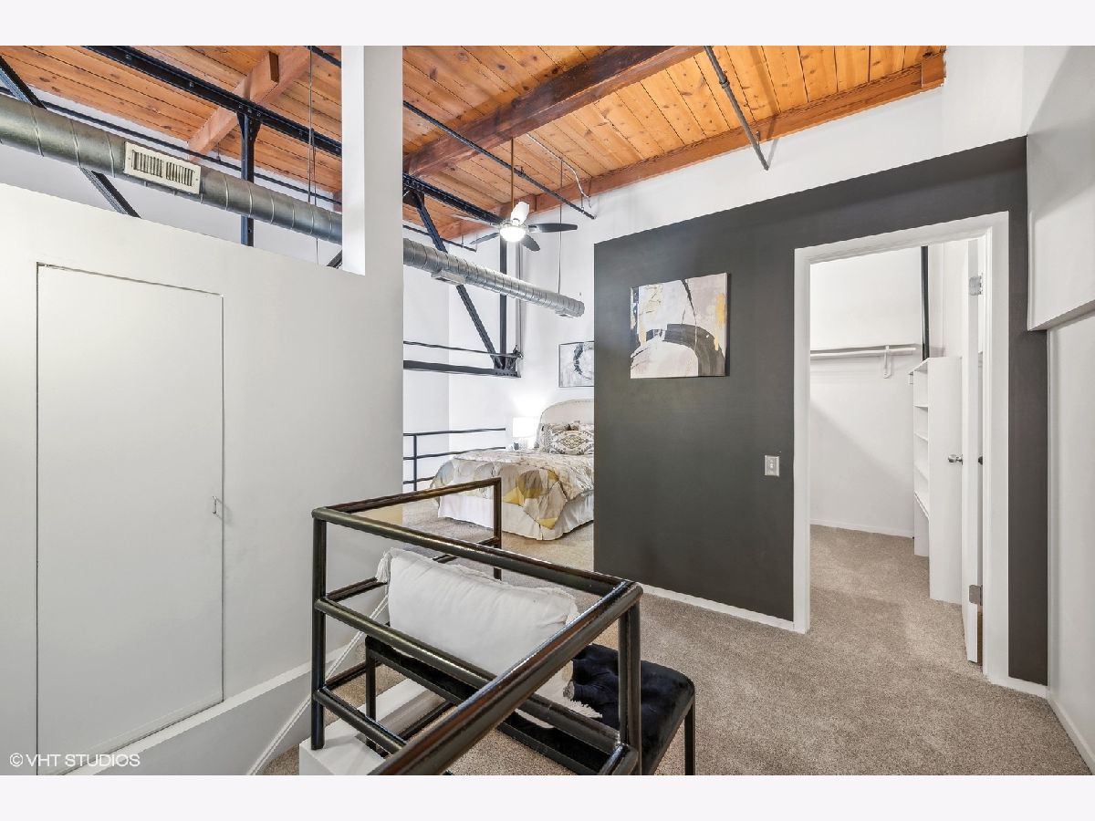 TRUE TIMBER LOFT at Riverbend Lofts in Lincoln Park's Clybourn Corridor. This 2 BR 2 BA duplex-up PENTHOUSE unit has one of the largest layouts in the building and boasts soaring, dramatic 24' ceilings, and floor to ceiling South facing Living Room windows! Surrounding the unit are exposed brick walls, exposed duct work, trusses and wood beams. Open kitchen with separate dining area/living room with wood burning fireplace. One Bed and full remodeled Bathroom on main level, and Primary Suite with 2nd full Bathroom and new carpeting on upper level. Floors refinished and freshly painted within last few years. Private deck with amazing South facing views of the Chicago skyline. Outdoor Parking included(Parking assessment is $13.59/month). Set back 300' off of Clybourn (Rear Building) it's a super convenient location walkable to many amenities including Riverpoint Center, Costco, Sephora, Menards + and close proximity to bus, train, and expressway.