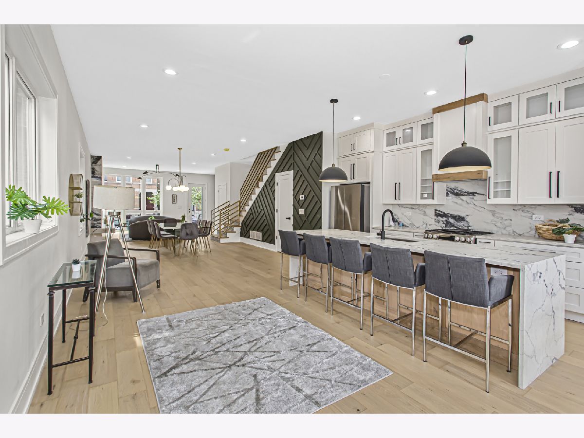 Swanky Brand-New Construction! Come take a look at our Brand-New Single-Family Home with its Awsomazing Open-Concept Floorplan. The house is nestled on this beautiful tree line street in East Humboldt Park situated just a couple blocks West of Wicker Park WITH AN ENTIRE FULL ROOF TOP! The Custom house features Designer finishes throughout including Beautiful White Oak flooring throughout 1st and 2nd floors. A Massive Custom Kitchen with Floor To Ceiling Cabinetry, Samsung Stainless Steel Appliances. The Open-Concept Floorplan combines Everything on the Main Floor and has a Huge 7 Foot Wide Gas Fireplace and Oversized Windows Drenching the 1st floor with tons of Southern Exposed natural sunlight. The Primary Bedroom on the 2nd level features 2 massive Hers & His Walk-In Closets and a Large Bathroom with an absolutely stunning Blue and Gold Dual Vanity, Soaking Tub, & a Walk-In Shower. The 2nd level also has 2 more Larger Sized Bedrooms with Very Large Walk in Closets, a Jack and Jill bathroom, and side by side laundry room all on the 2nd Floor. The Lower-Level features a Generous Sized Rec-room/Family Room with a Nice Wet Bar, A Guest Bathroom, and 2 Additional Bedrooms. And to finish, a Gorgeous Backyard with a 2.5 Car Garage. Fyi: The Entire Lower level has all been prepped for Radiant floors and does not convey with the boiler for the radiant floors. Do NOT let this house Slip by without taking a look. The house is situated super close to Wicker Park and all of the great restaurants, bars and awesome shopping close by!