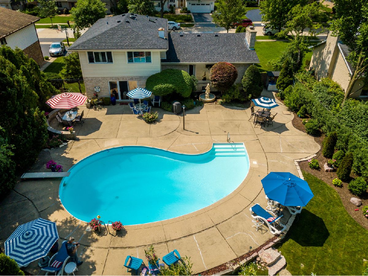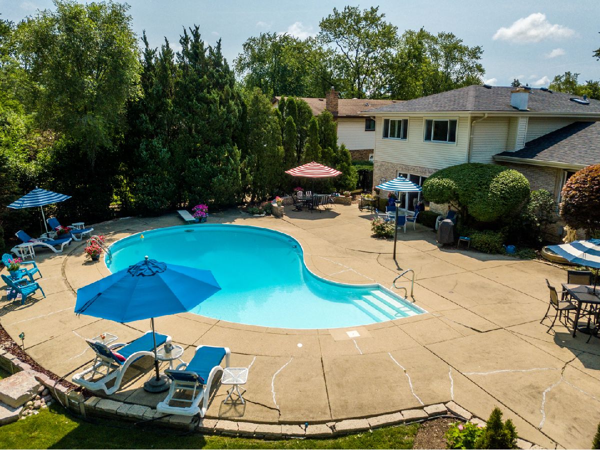 This is the one! Move in ready, professionally decorated home in District 30, with many updates throughout this attractive home. Pretty foyer leads to an open staircase up to an expansive living room with vaulted ceilings overlooking a serene fenced in yard with an award winning hotel sized swimming pool! Mature evergreen trees and colorful perennial flowers and colored night lights accent this visually stunning resort like retreat. An oversized main floor family room includes a separate bar area with sparkling black granite counters and a bright white cabinet combo, making this gathering room an entertainer's delight! Solid oak hardwood throughout the main level and gorgeous cherry hardwood floors in the three spacious upstairs bedrooms with very generous closet space. Recent total renovations using the finest quality, in both upstairs bathrooms, will impress the most discriminating buyer. Updated kitchen with island seating and newer stainless steel appliances and brand new lighting, make for a bright and open cooking area. Newly remodeled partially finished basement with a refrigerator that stays, make this an ideal man cave or additional play area. Main floor 4th bedroom with parquet flooring and all of the phone and cable lines already in place, can be used as an office or in-law retreat. Partial bathroom is across the hall. Walk to Wescott and a 5 minute drive to Maple School and Glenbrook North H.S Easy access to Edens expressway & 294" . Priced to sell and won't last long! NO SIGN
