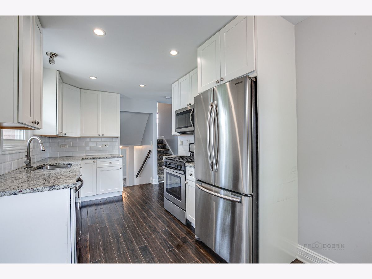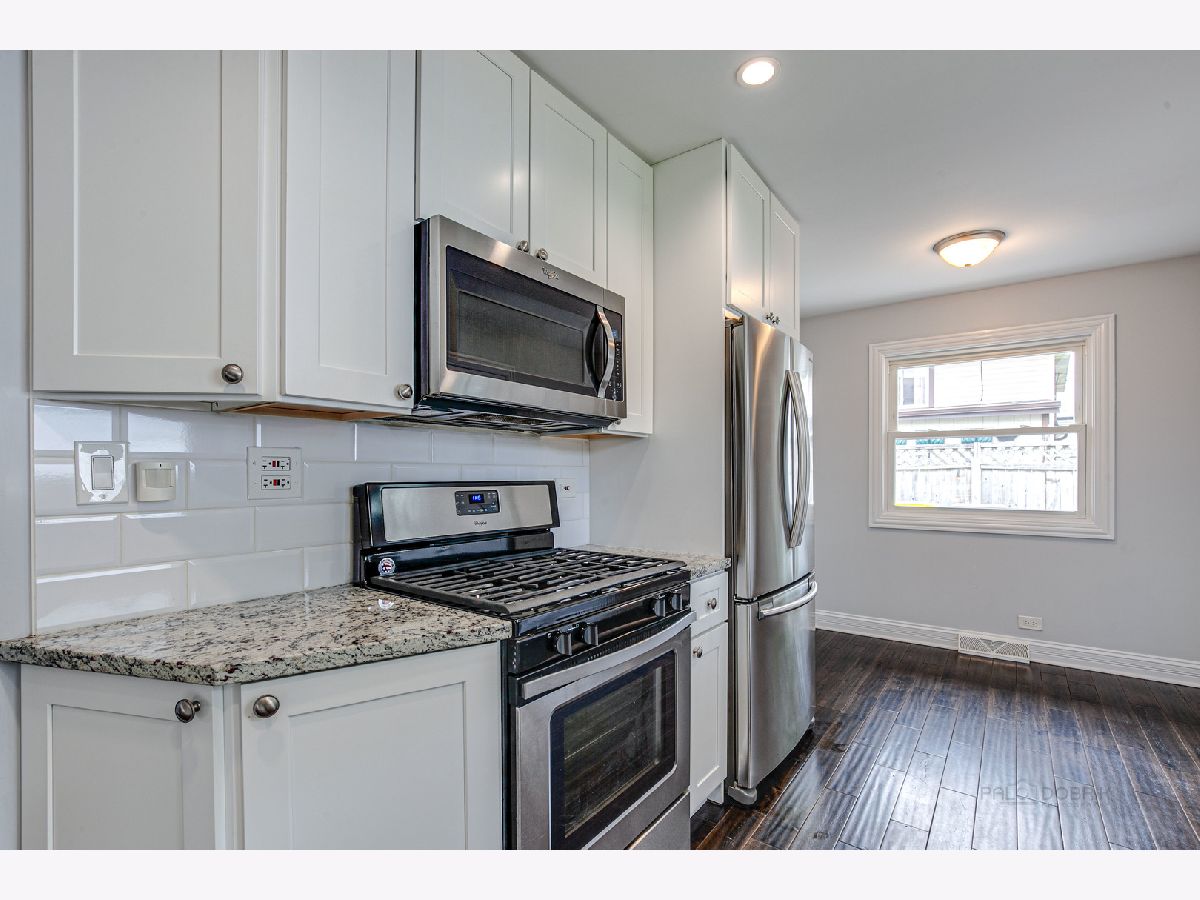 Spacious, completely renovated home with high end finishes. It features sun filled rooms, gorgeous kitchen with 42" white cabinets, granite counters, stainless appliances, subway tile backsplash and hardwood floors. Living room with a large bay window, hardwood floors and new window treatment. Spacious bedrooms and beautiful baths with custom tile work and vanities. Lower level family room with windows above grade, additional bedroom or private office, large laundry room and brand new carpeting. Easy maintenance brick and siding exterior. Oversized, heated garage with custom flooring currently used as a workout studio. Fenced back yard. Convenient location close to transportation, shopping and schools. Freshly painted and move-in ready!