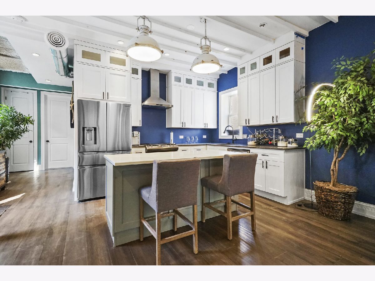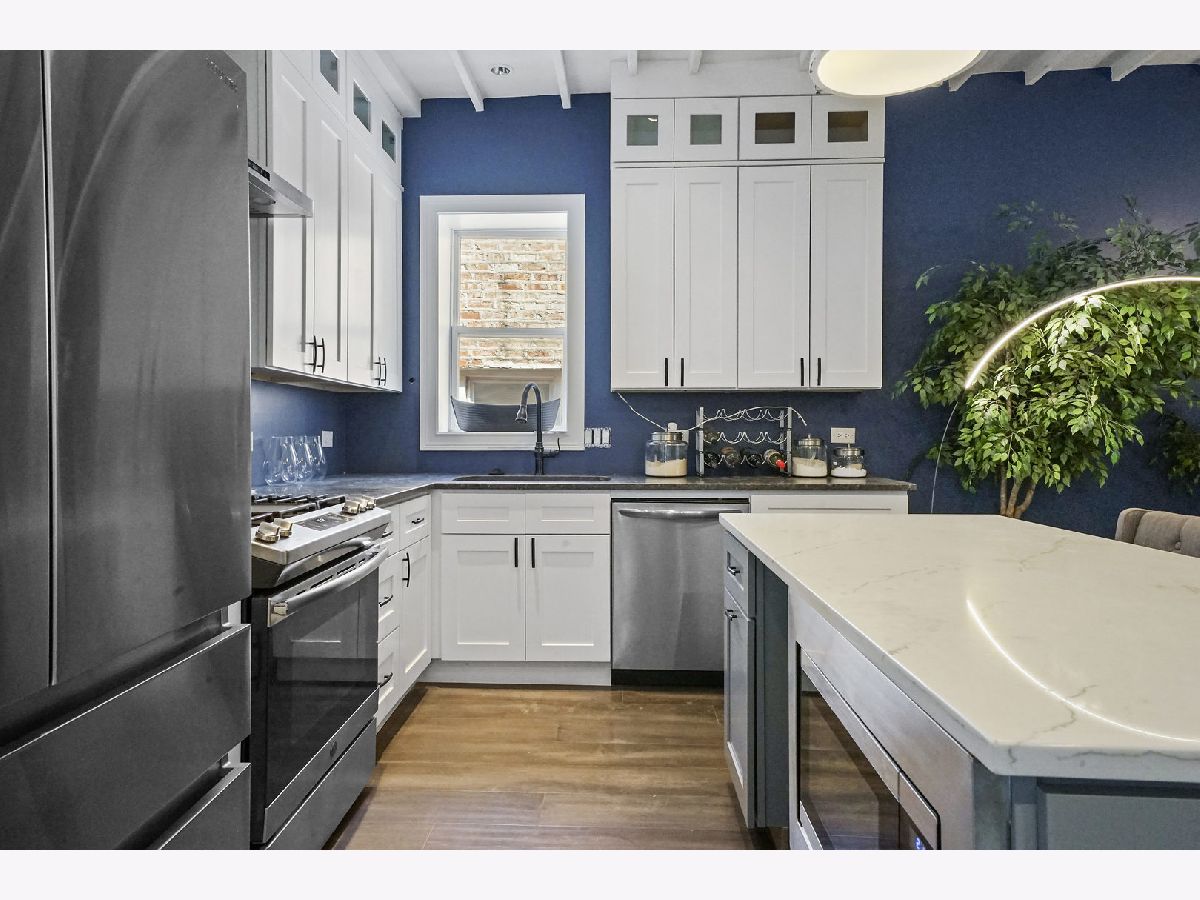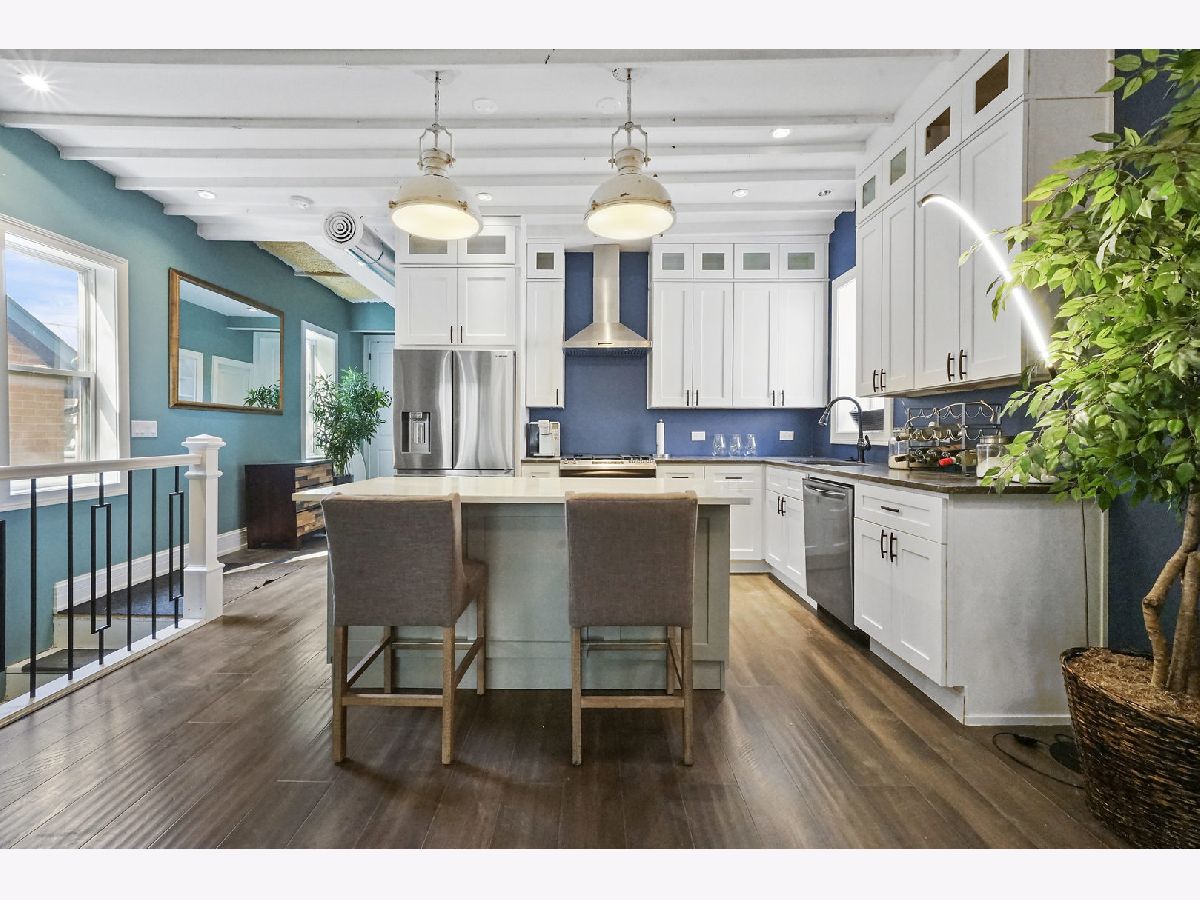 Take a 3D Tour, CLICK on the 3D BUTTON & Walk Around. Watch a Custom Drone Video Tour, Click on Video Button! Beautifully designed 2 flat home that looks like it was torn straight out of a magazine! Hardwood floors, soaring ceilings, and designer finishes flow throughout. The spacious chef's kitchen is fitted with white cabinetry, granite countertops, top-of-the-line stainless steel appliances, wine fridge, and island with breakfast bar. Entertain in the generous living/dining room with tons of natural light designer light fixtures. Expansive master bedroom suite with room for seating area, custom walk in closet, and en-suite spa like bath. The generous 2nd bedroom is the perfect spot for an office, nursery, guest room, or den! Fabulous outdoor space great for year round enjoyment! Great location steps from Humboldt Park, transportation, shopping, and more!
