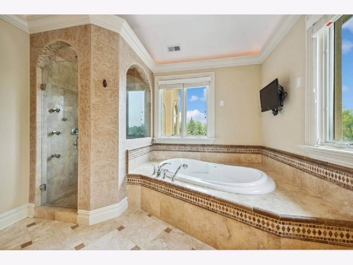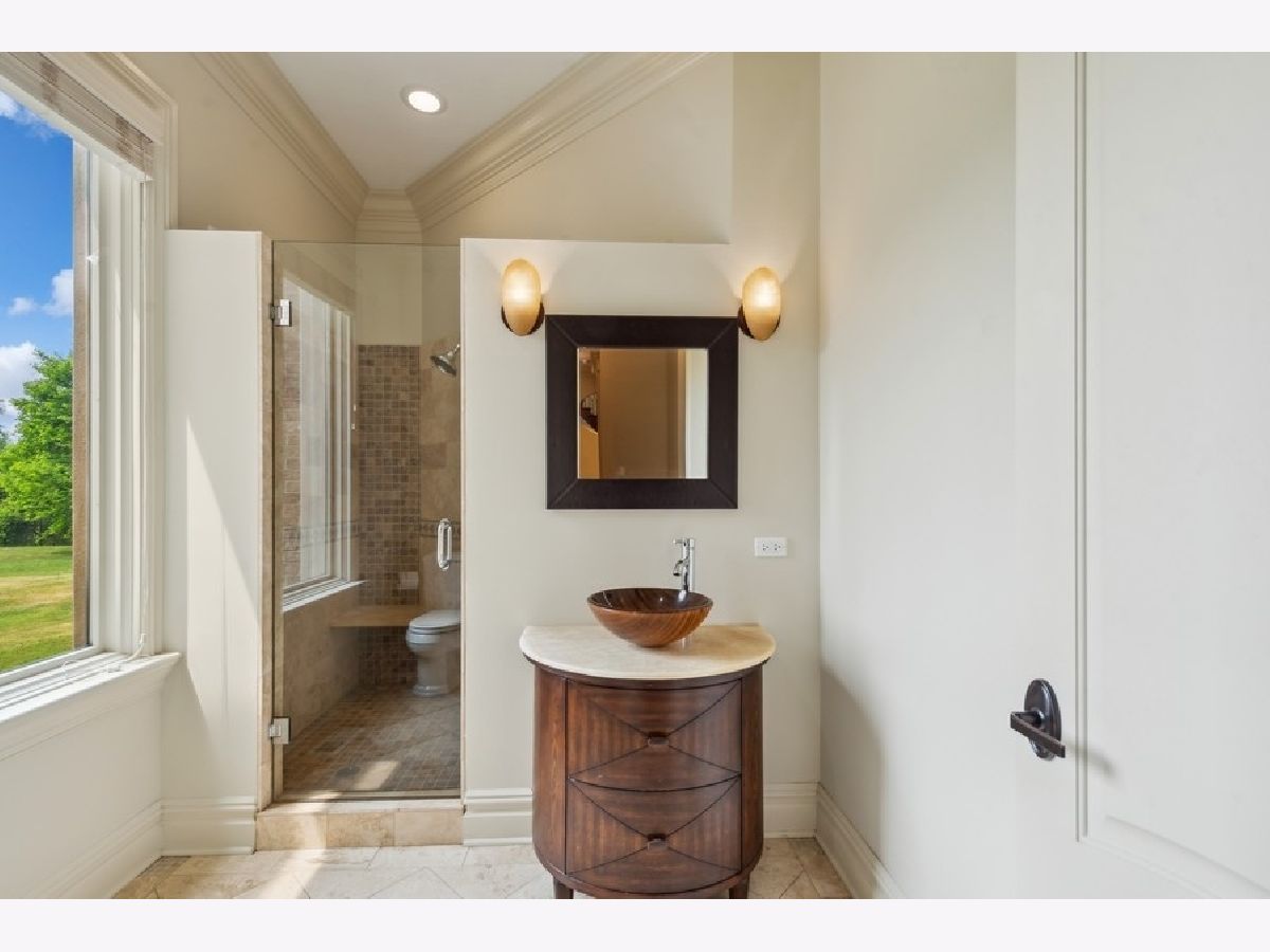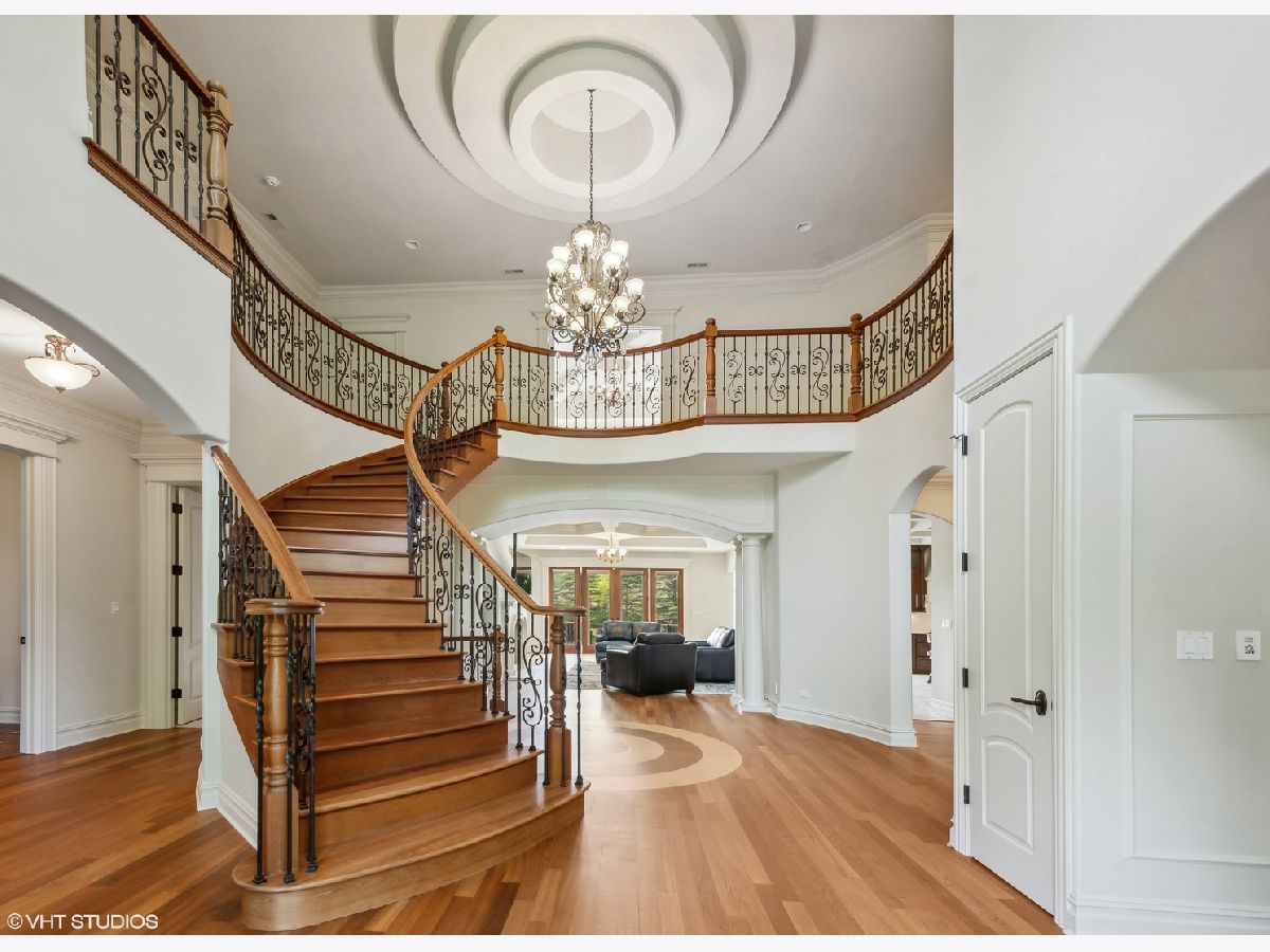 Looking for the best of both worlds? That is what describes this 3+ acre gated estate nestled right in the heart of Barrington. Beyond the gated entrance, a circular drive greets you to a custom built french provincial style home with 7 bedrooms and 8.5 baths. The mature trees lining the property's perimeter provide a sense of seclusion while you remain just minutes away from all the conveniences needed to support a busy lifestyle. This well designed home has a 2 story foyer in all its grandeur to welcome guests. The resurfaced Brazilian cherry hardwood floor along with two winding open staircases to the upper and lower levels are quite stunning. Right off the foyer is a cozy but sizable living room overlooking the front yard while the dining room on the opposite side is close to the kitchen and ready for entertaining. Both rooms include crown molding, tray ceilings with in-let lighting and floor in-lays to match the ceiling. The nearby kitchen is suited for any chef, engulfed with custom cabinetry, granite counters, top of line stainless steel appliances (Wolf Range, Sub-Zero refrigerator, 2 Bosch warming drawers) and a substantial island hosting a vegetable sink, built-in microwave, warming drawer and wine fridge. Flowing off the kitchen through thoughtfully designed archways is the impressive family room. It is the perfect place for gathering while showcasing the first of 5 fireplaces, a coffered ceiling, floor to ceiling french doors allowing plenty of natural light and access to the composite deck. The main level offers an abundance of space including a first floor master suite, an office, a study with cherry built-in bookshelves and fireplace, large laundry/mud room, full bathroom off the garage and an elevator to access all three levels. The main level master suite is quite the retreat and perfect for any in-law living arrangement. It offers a private fireplace, separate sitting room with access to the sunroom, spacious walk-in closet with custom cherry organizers and a master bathroom that includes a jetted tub, multi-headed shower, double vanity and heated floors. The 2nd level of this remarkable home will not disappoint presenting 5 private suites including another master suite. A set of french doors open to the 2nd master suite as it boasts pure serenity showcasing the architectural design of the ceiling, a private balcony overlooking the backyard and a turret sitting room full of natural light and a fireplace to curl up with a good book. Custom cherry organizers line the his and her walk-in closets with separate door locks. The master ensuite is like an oasis with a jetted tub, double vanities, heated floor and multi-headed shower. Bedroom #6 and or bonus room can be multi-functional as a magnificent playroom or subdivided into two separate bedrooms with a full bath and 2nd floor laundry closet. But wait, that is not all! The fully finished lower level with 10' ceilings is an extension to this already exceptional home with a recreational area and stone fireplace, a custom bar with tons of seating space, a game room, wine cellar, media room ready for any design and the 7th suite or possible exercise room with a full bathroom and steam shower. The tranquil backyard is equipped with a large composite deck, dog run, shed, extensive fully owned solar panel system and awaits the next homeowner's imagination! The newly heated 4-car attached garage is over 1000sf, has vaulted ceilings for any type of lift system and oversized garage doors. Location is everything! Just minutes from downtown Barrington, schools, shopping, restaurants and the Metra station. Unfortunately, the homeowner never got to move in to enjoy this one of a kind property but made over $200K in upgrades since last October. A full list of featured updates is available. This unique home is definitely worth a look!