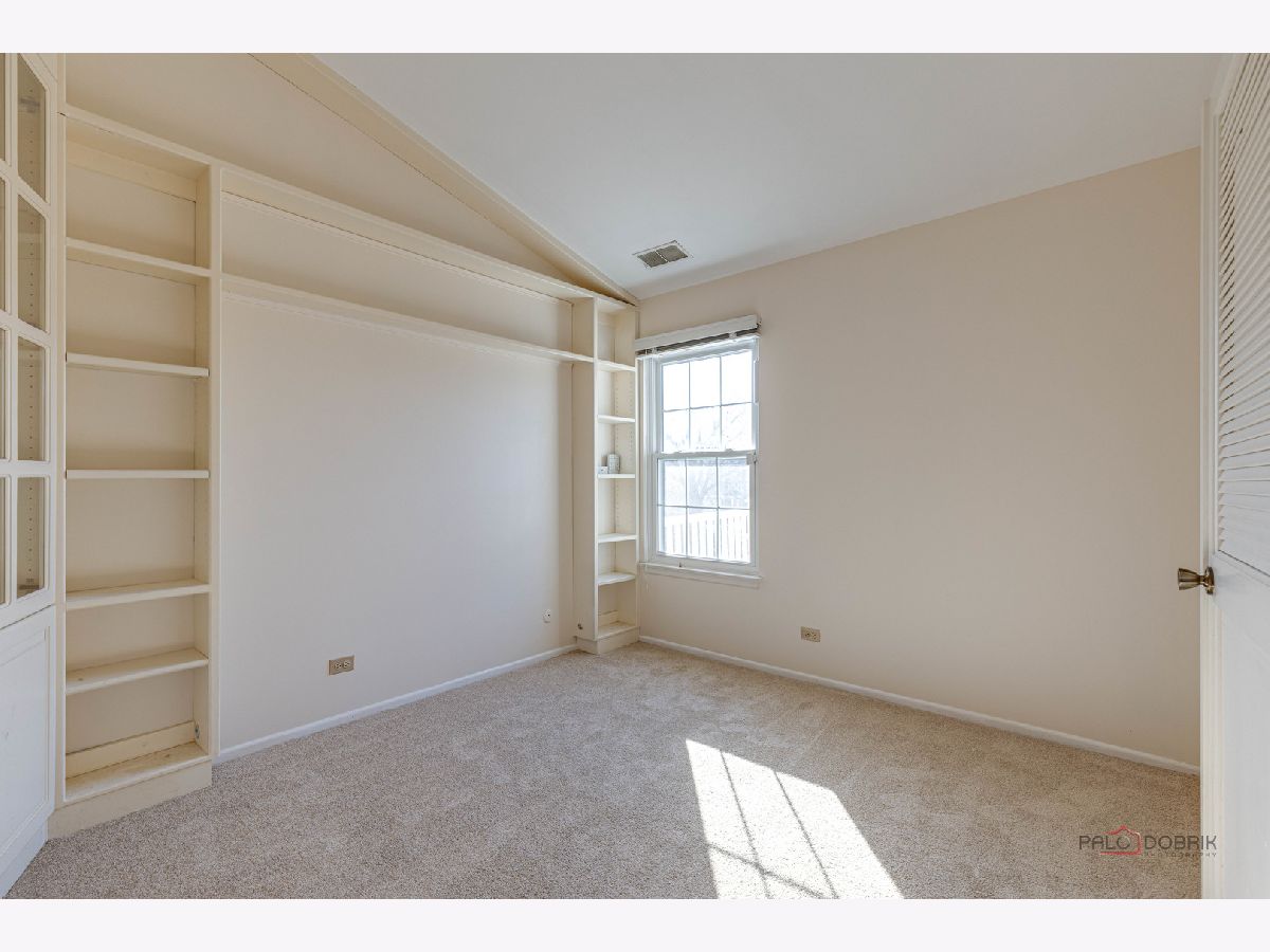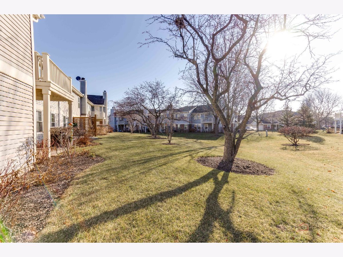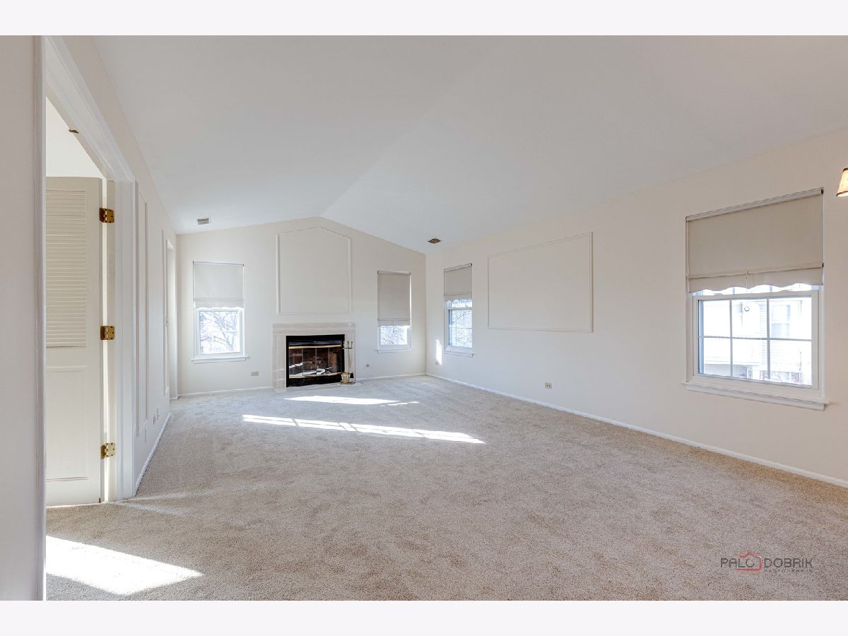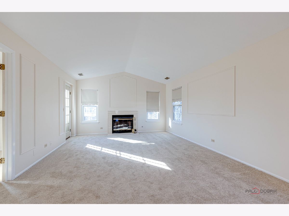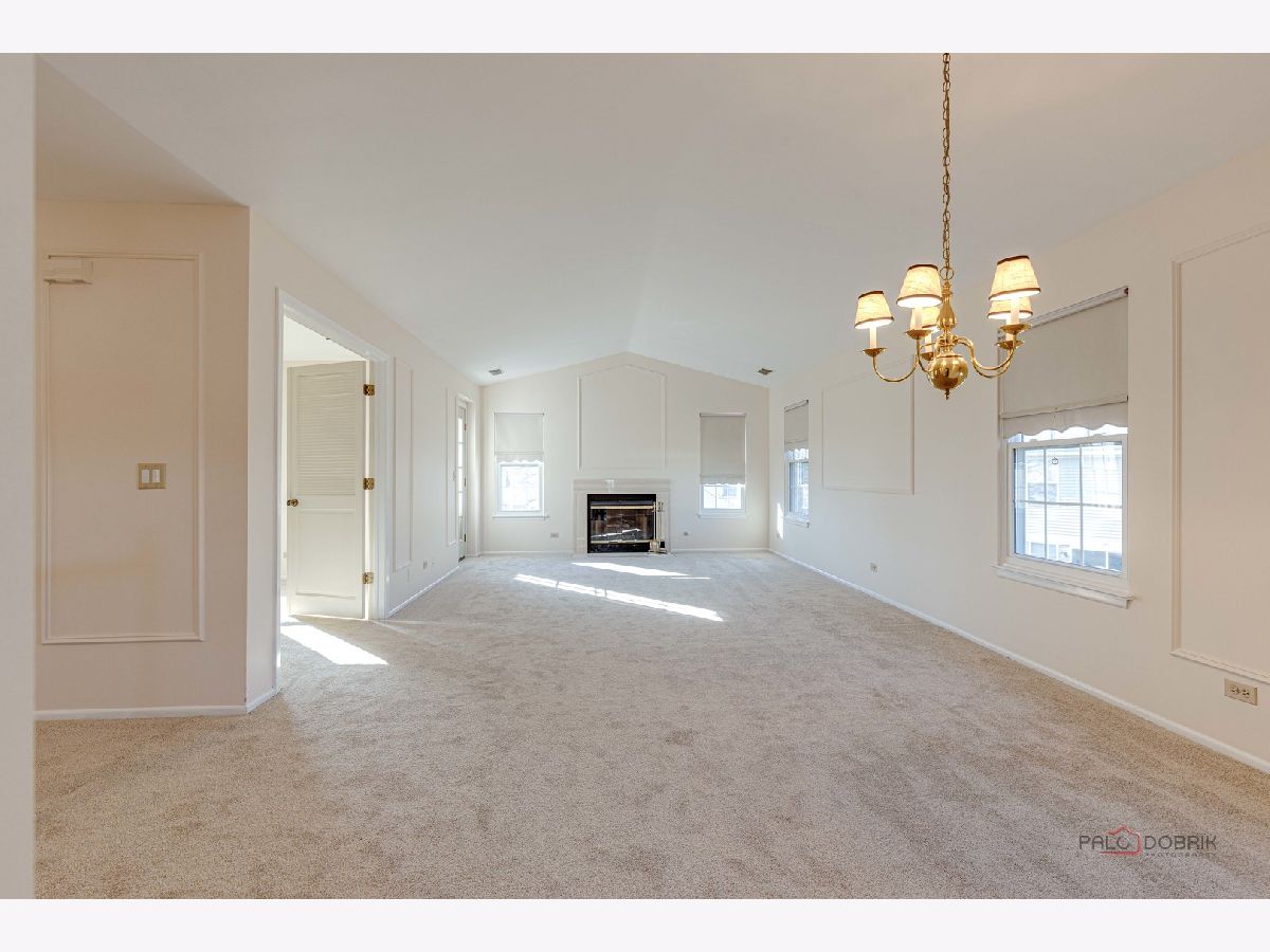 Second-floor end unit ranch is fabulous with vaulted ceilings, an open floor plan, and a fireplace! A spacious primary ensuite has a walk-in closet and a luxury bath with a separate shower and soaking tub. The second bedroom has easy access to the hall bath. The den has built-in shelving and doors and is easily the third bedroom. The kitchen is updated with stainless appliances and cabinets painted. HVAC @ 6 years old and serviced every year, water heater @ 5 years, Windows installed with a lifetime warranty over 3 years from 2016 -2018. The association fee is $336/month including pool and clubhouse. New flooring and fresh paint are currently highlights! Close to schools, shopping, Metra Train, ice rink, restaurants, and parks. Lots of guest parking is available. Bus service to all award-winning schools