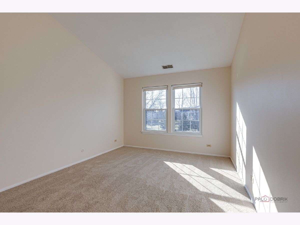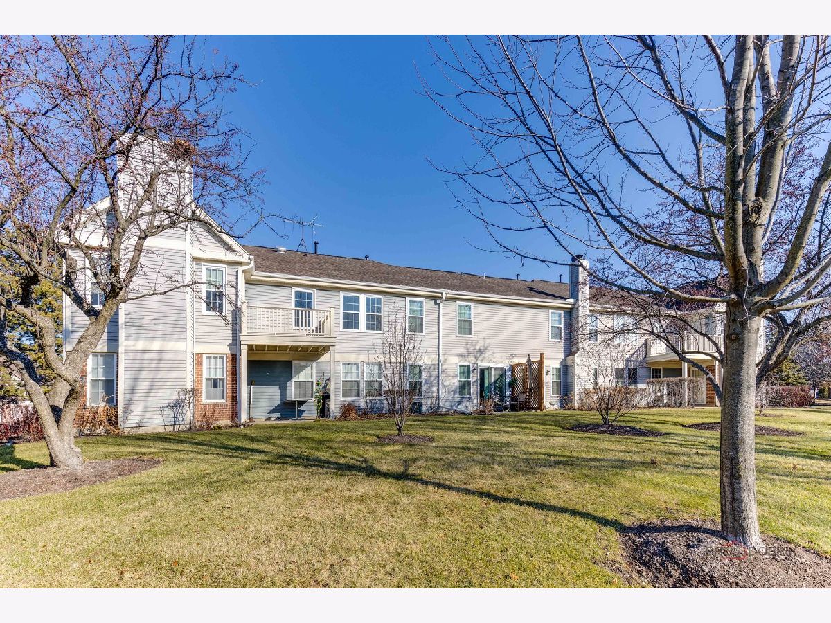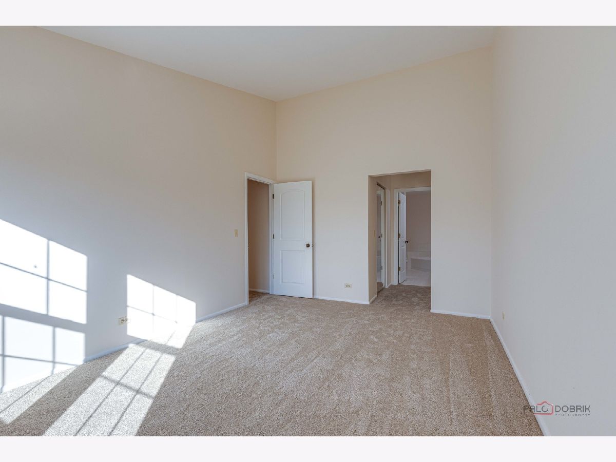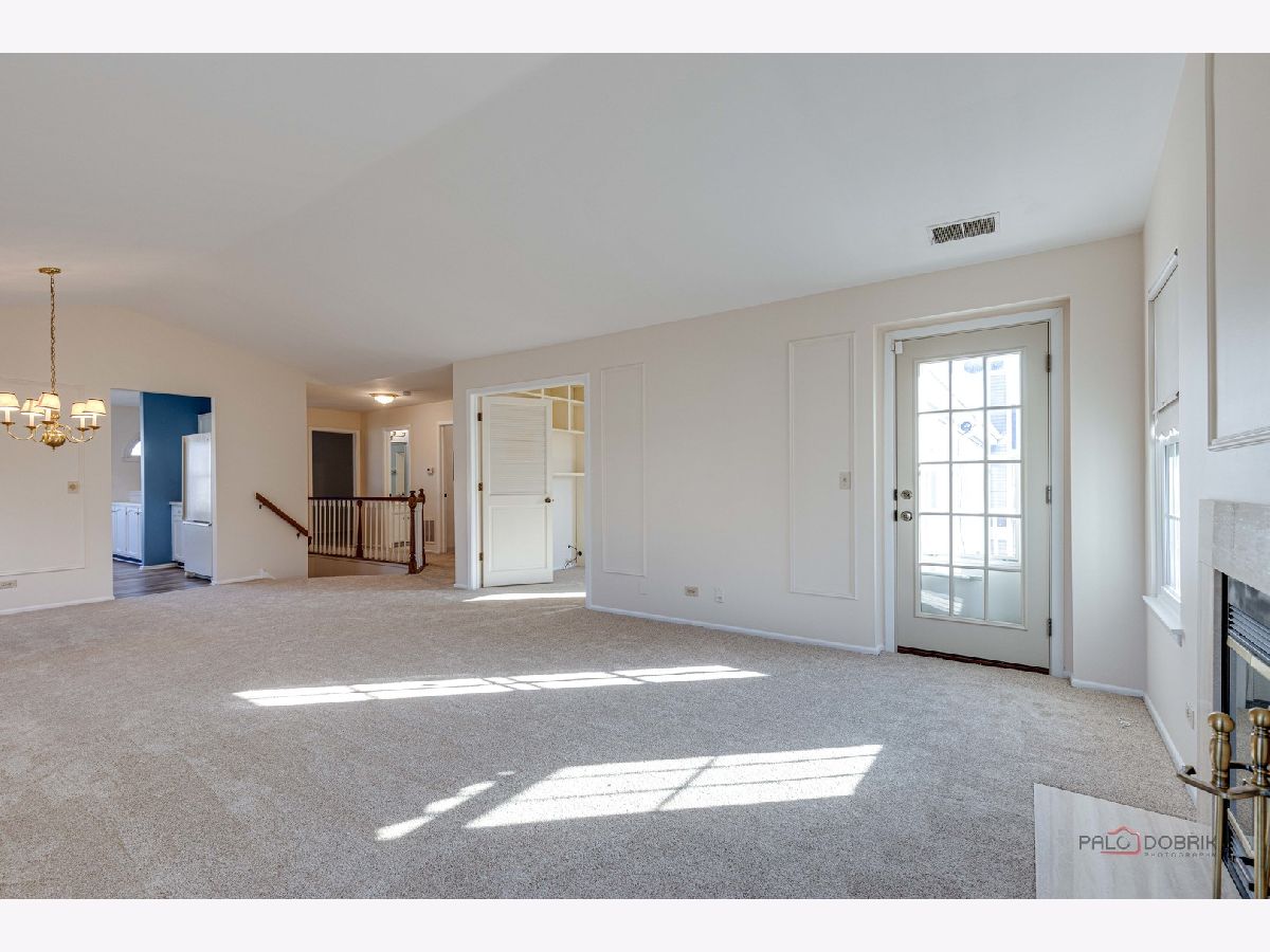 Second-floor end unit ranch is fabulous with vaulted ceilings, an open floor plan, and a fireplace! A spacious primary ensuite has a walk-in closet and a luxury bath with a separate shower and soaking tub. The second bedroom has easy access to the hall bath. The den has built-in shelving and doors and is easily the third bedroom. The kitchen is updated with stainless appliances and cabinets painted. HVAC @ 6 years old and serviced every year, water heater @ 5 years, Windows installed with a lifetime warranty over 3 years from 2016 -2018. The association fee is $336/month including pool and clubhouse. New flooring and fresh paint are currently highlights! Close to schools, shopping, Metra Train, ice rink, restaurants, and parks. Lots of guest parking is available. Bus service to all award-winning schools