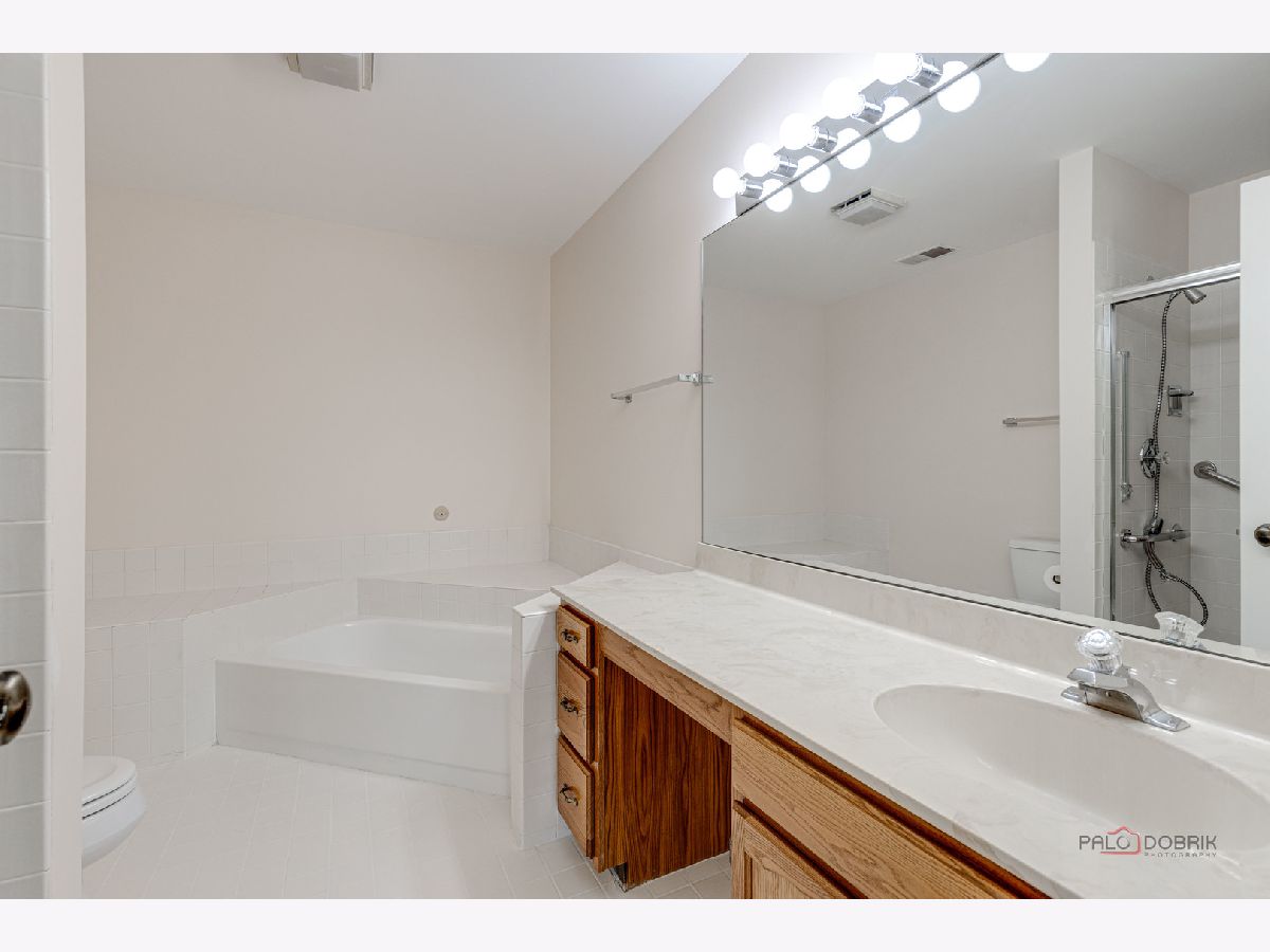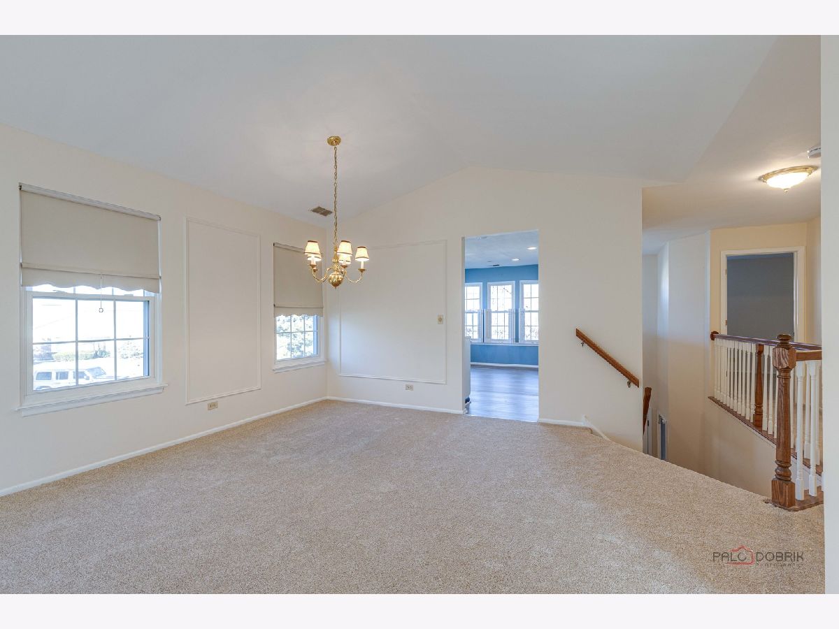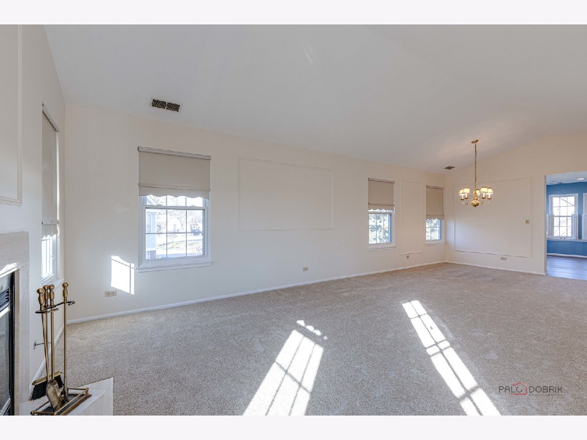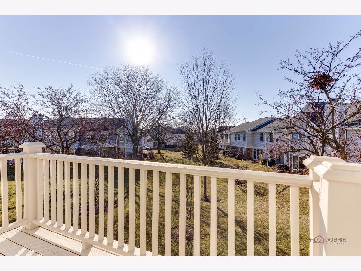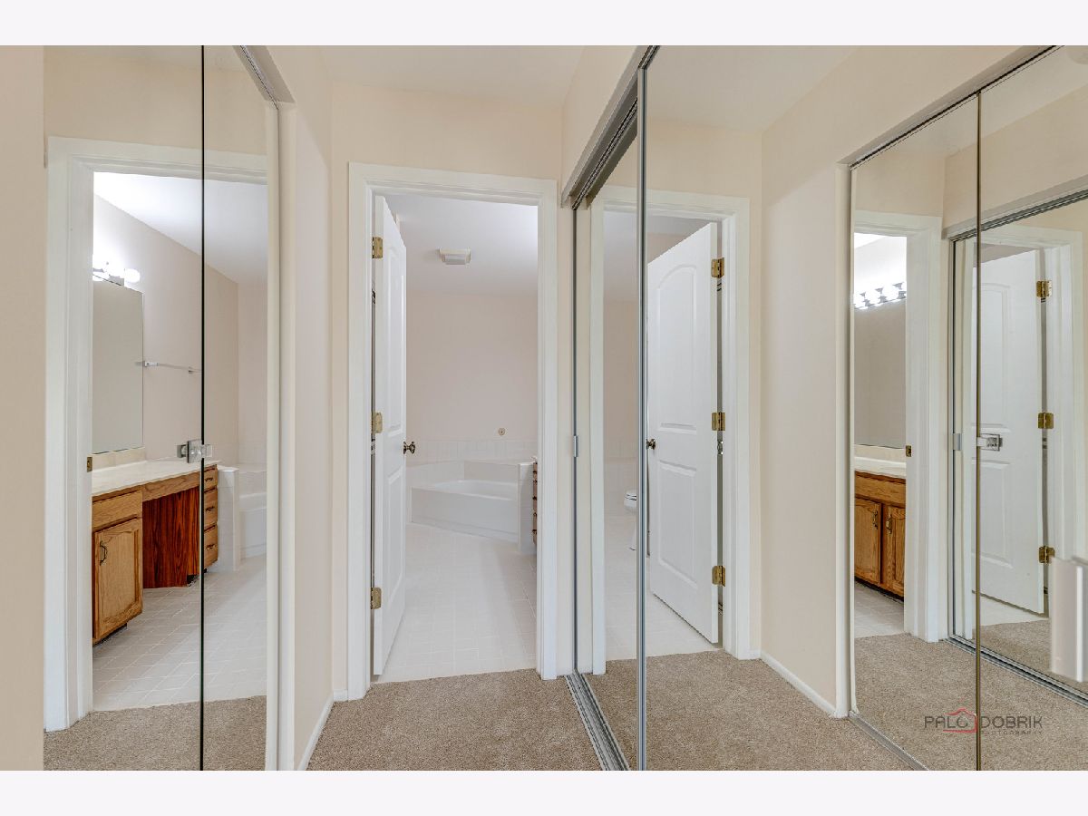 Second-floor end unit ranch is fabulous with vaulted ceilings, an open floor plan, and a fireplace! A spacious primary ensuite has a walk-in closet and a luxury bath with a separate shower and soaking tub. The second bedroom has easy access to the hall bath. The den has built-in shelving and doors and is easily the third bedroom. The kitchen is updated with stainless appliances and cabinets painted. HVAC @ 6 years old and serviced every year, water heater @ 5 years, Windows installed with a lifetime warranty over 3 years from 2016 -2018. The association fee is $336/month including pool and clubhouse. New flooring and fresh paint are currently highlights! Close to schools, shopping, Metra Train, ice rink, restaurants, and parks. Lots of guest parking is available. Bus service to all award-winning schools